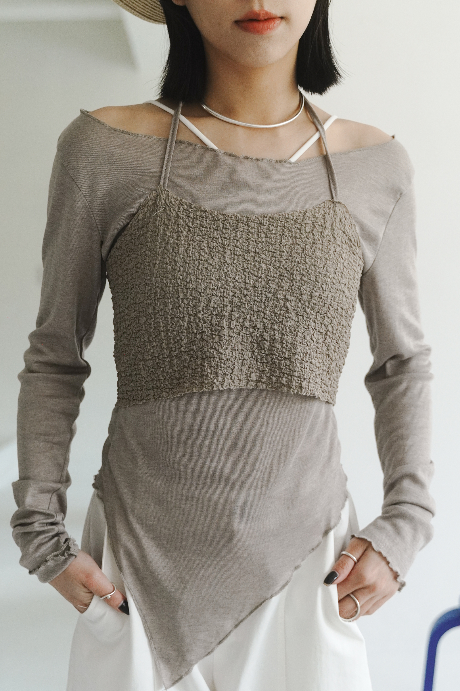 一字領斜襬繞脖背心SET 黑/卡 總分: 0 - 0 評價