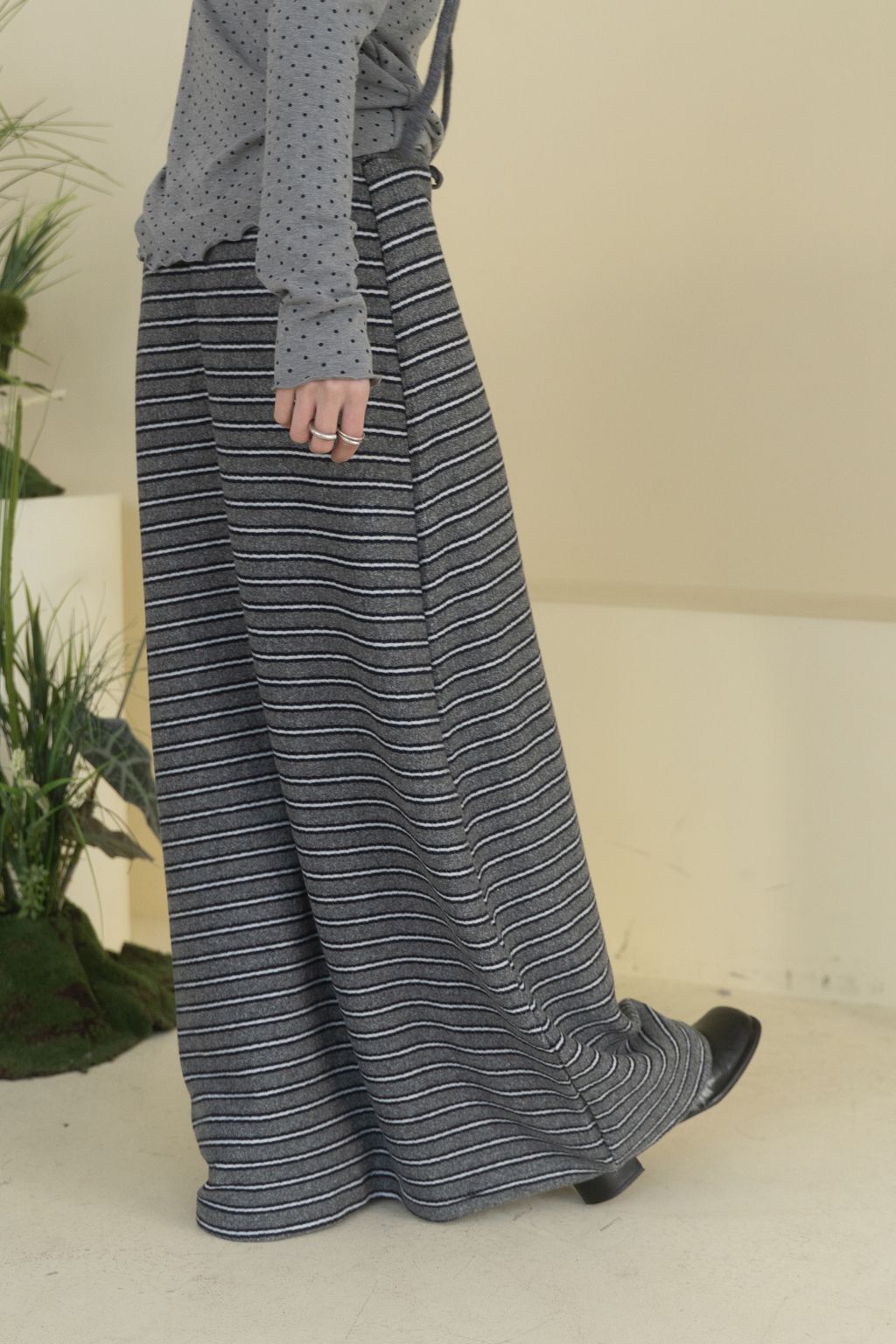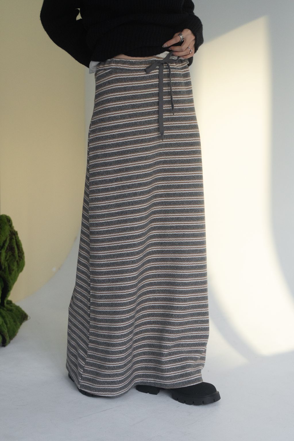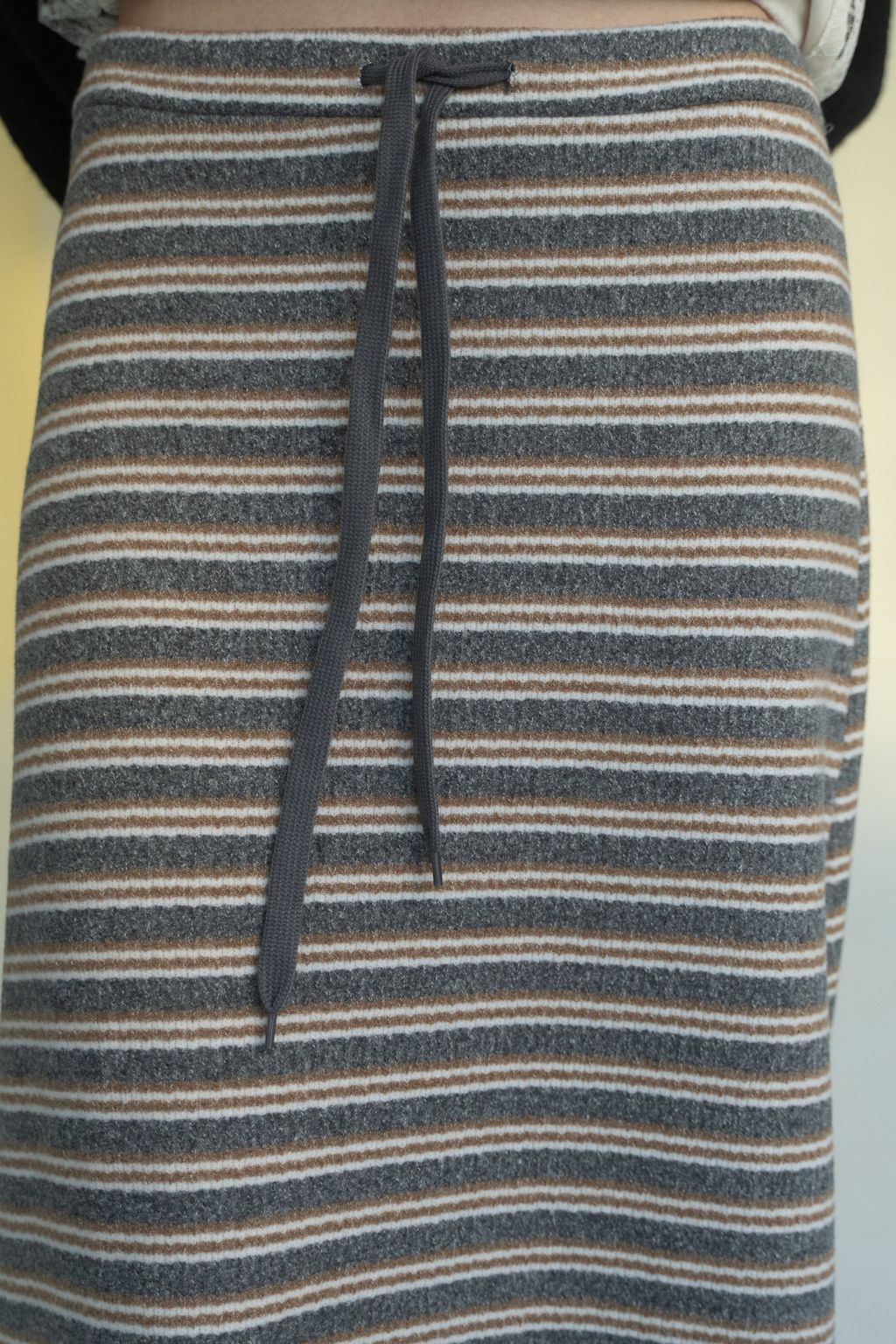 寬版磨毛抽繩線條裙 黑灰/咖灰