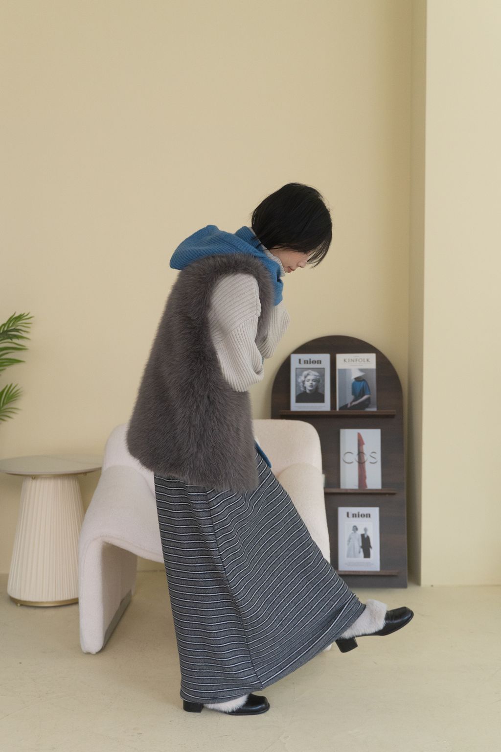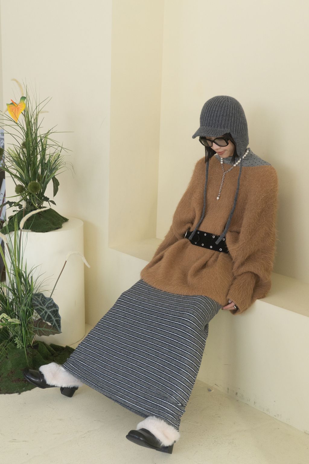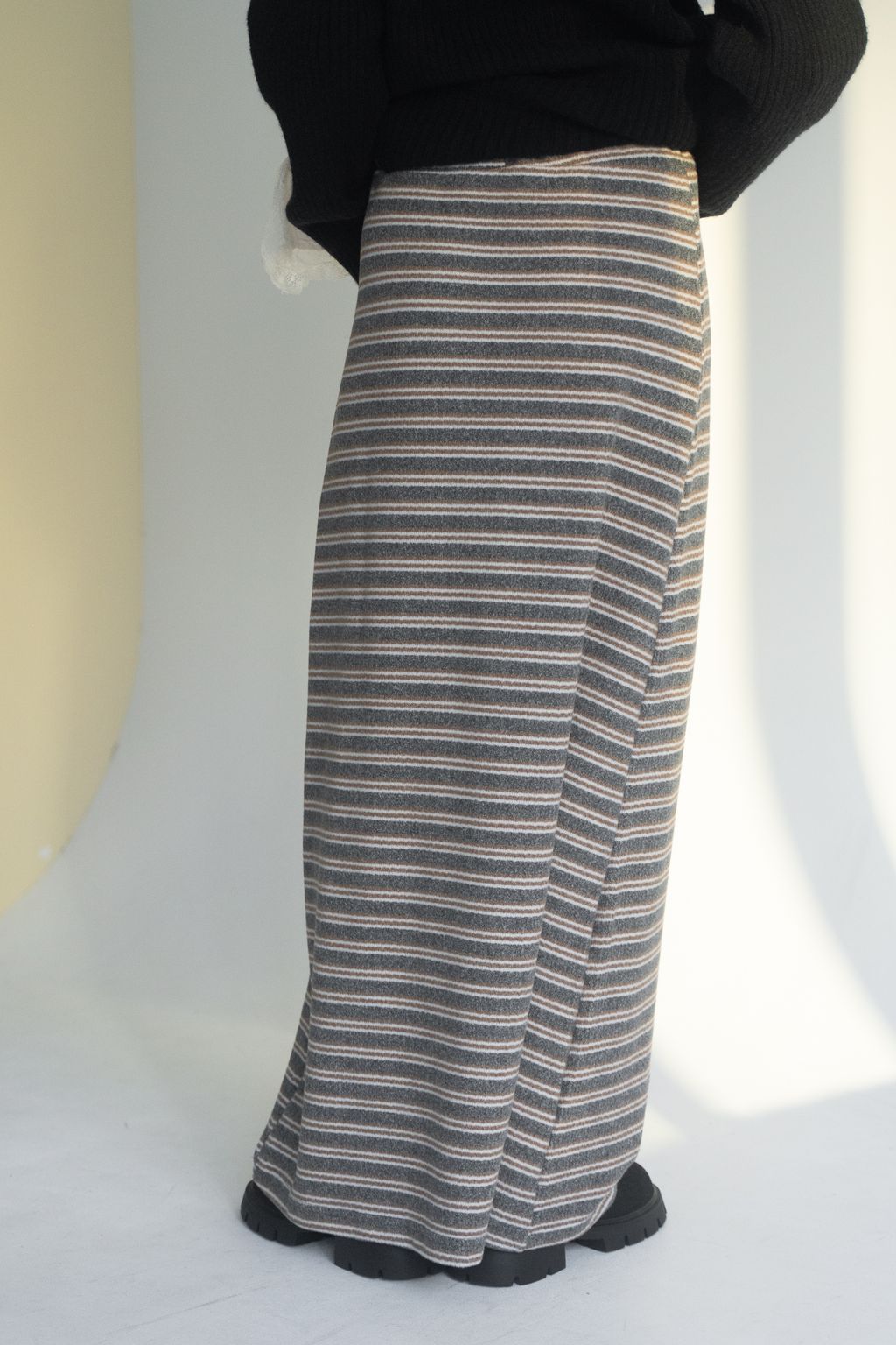 寬版磨毛抽繩線條裙 黑灰/咖灰