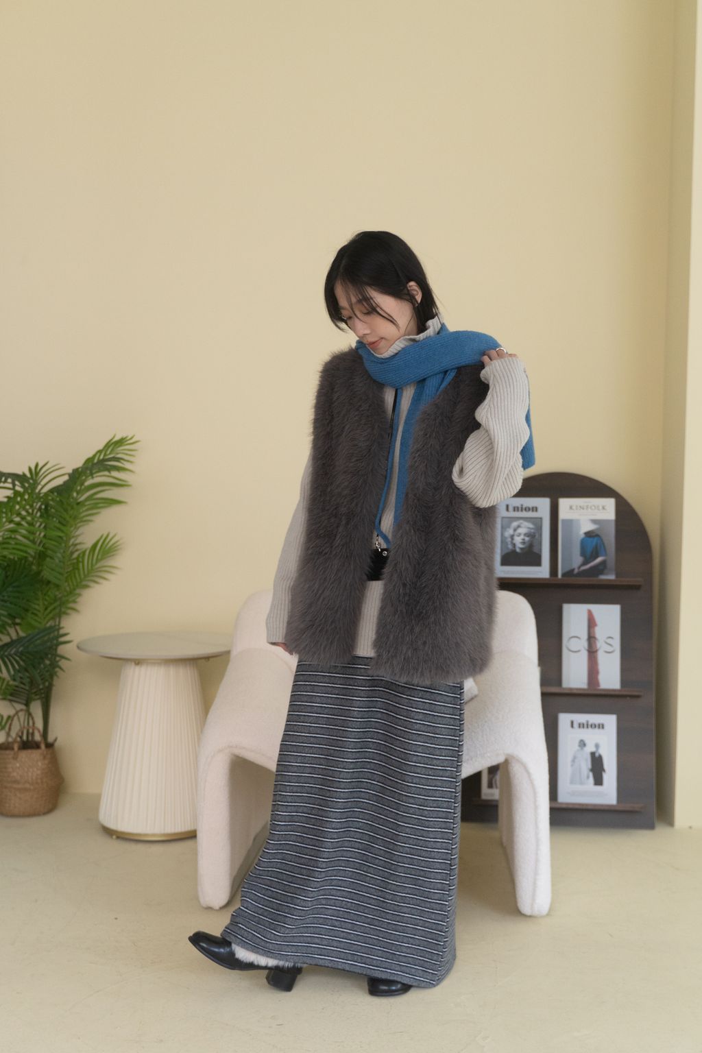 寬版磨毛抽繩線條裙 黑灰/咖灰 總分: 0 - 0 評價
