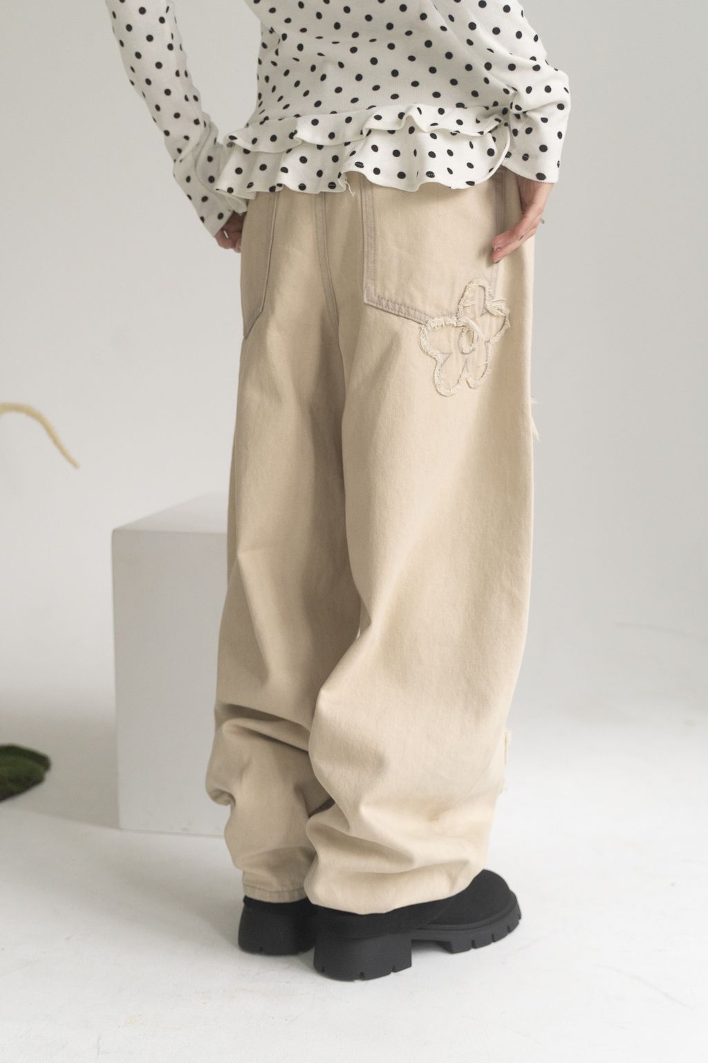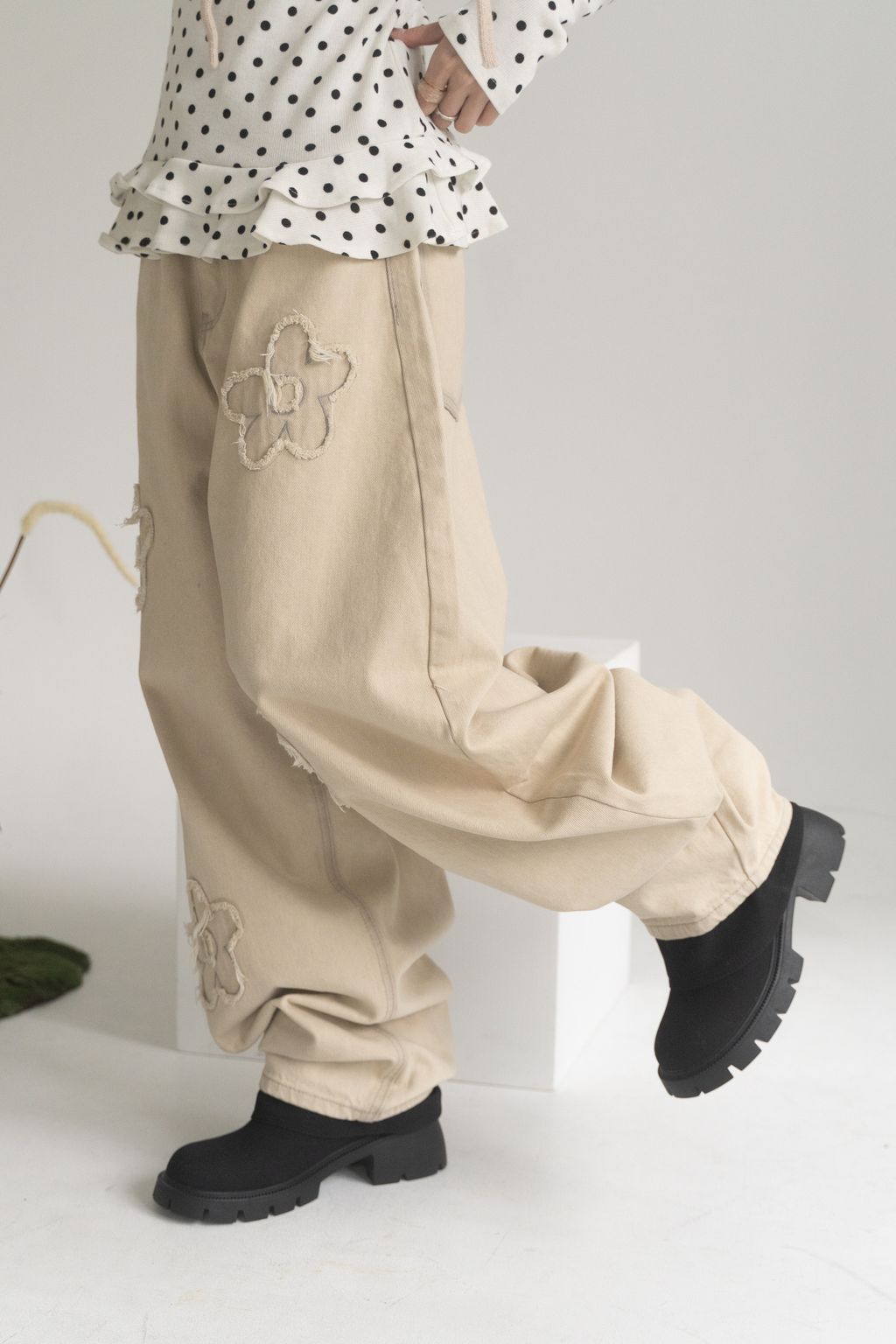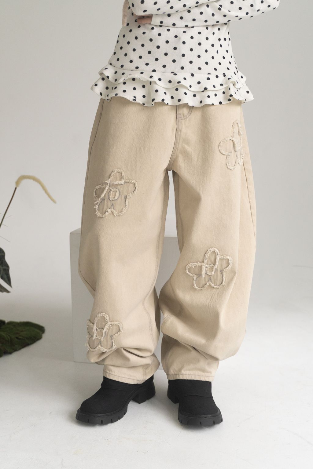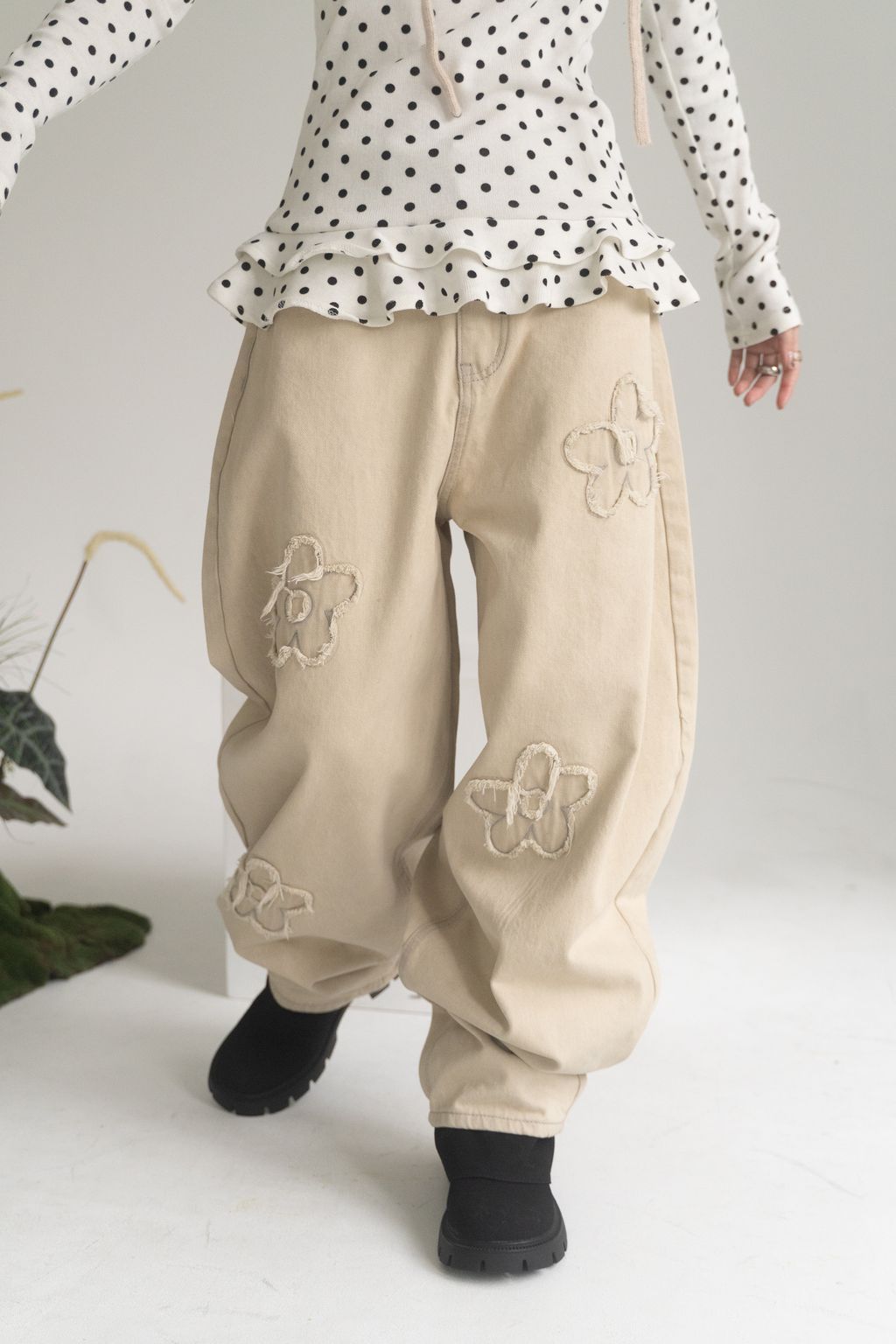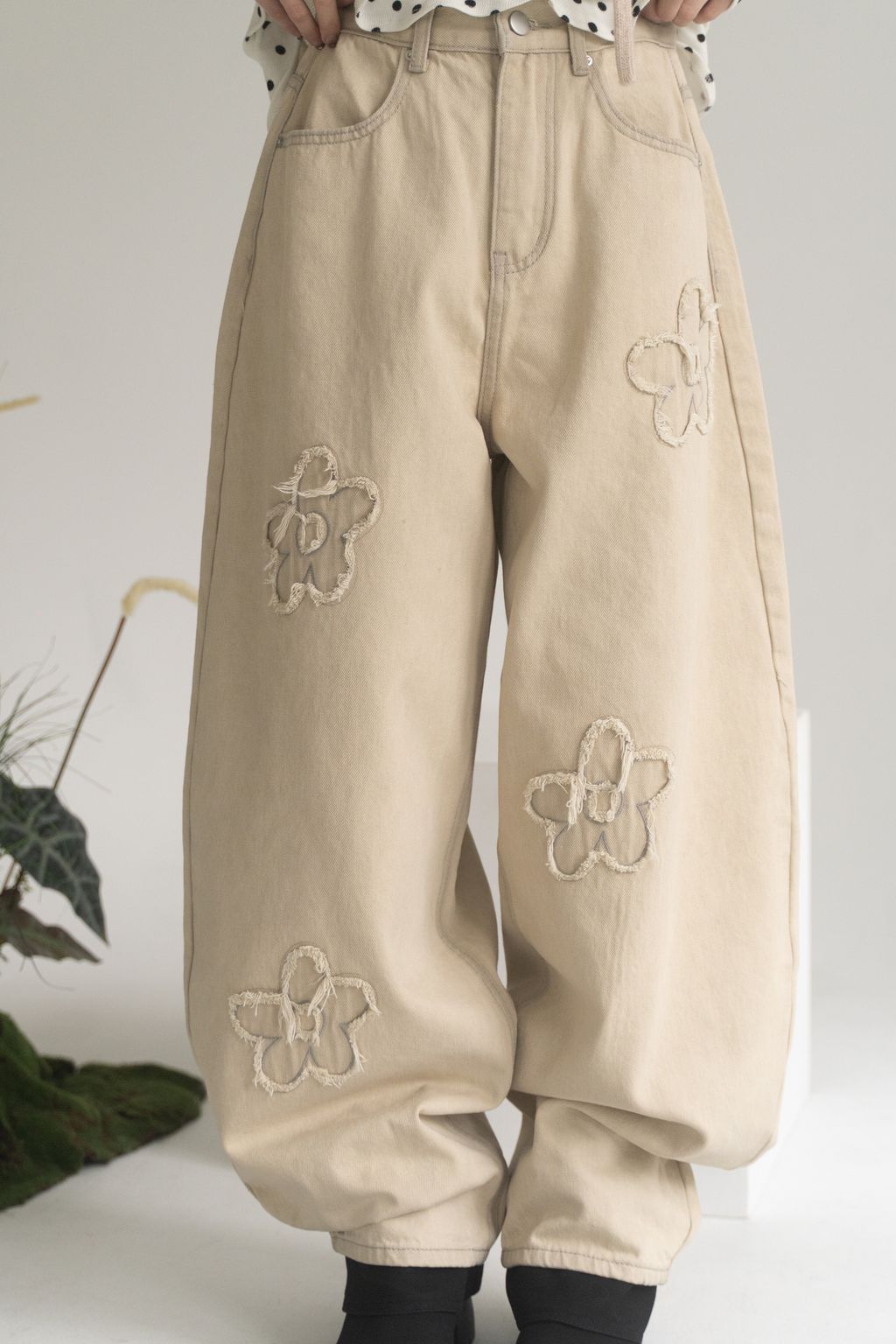 舊時光小花貼布繭型褲/杏 S/M/L