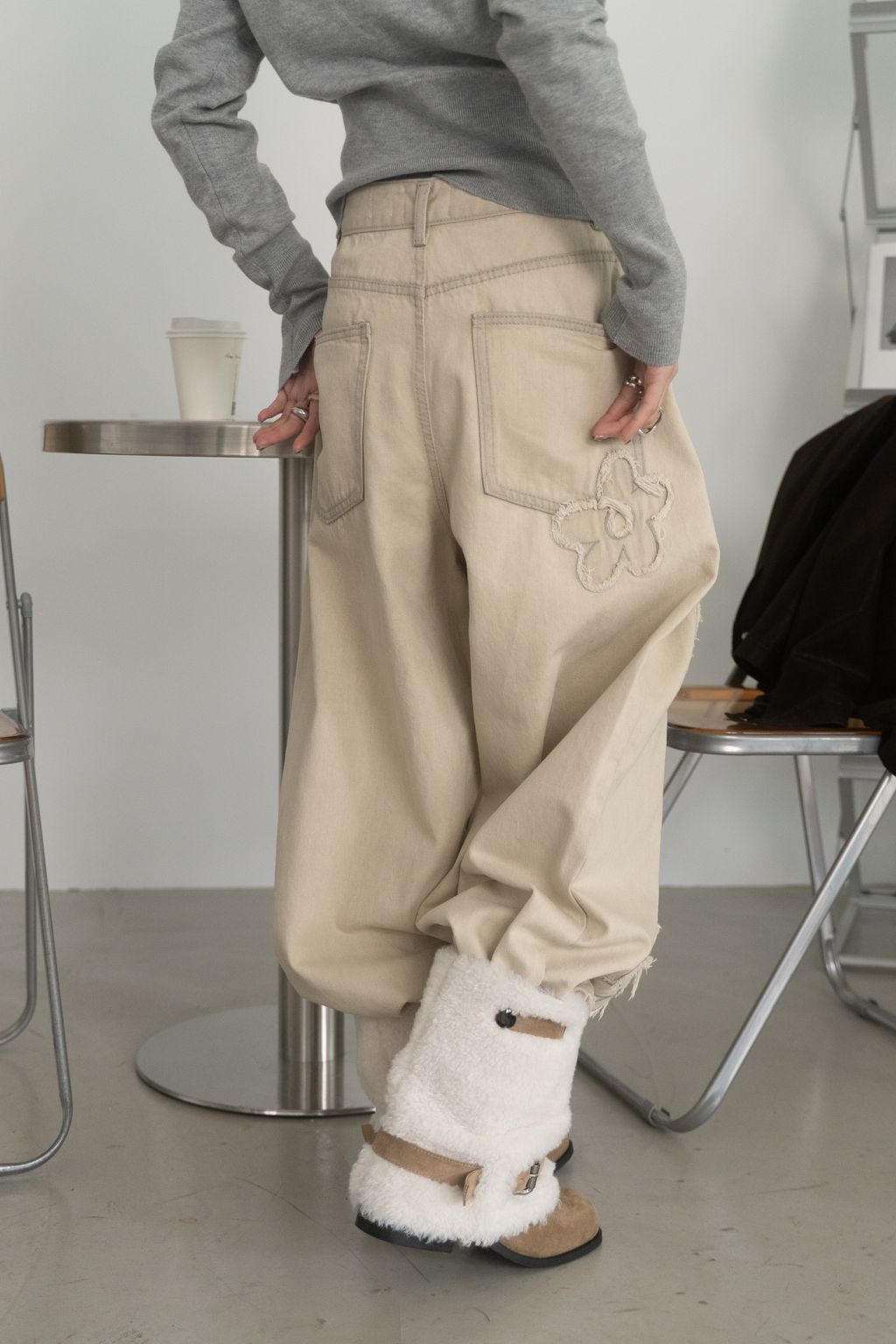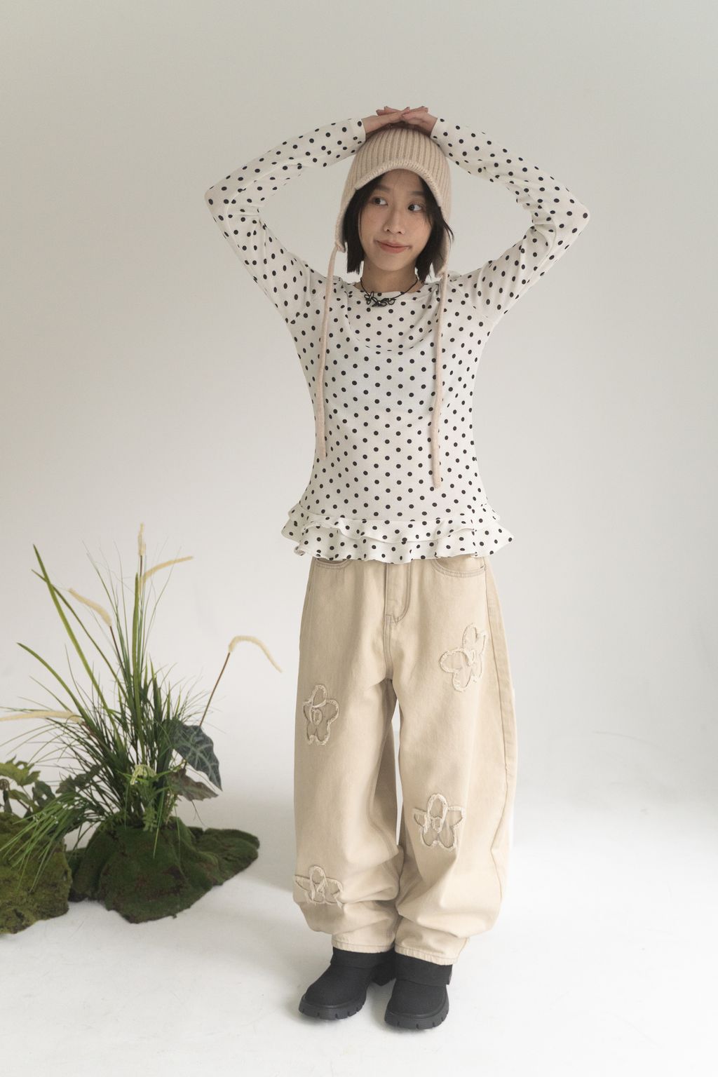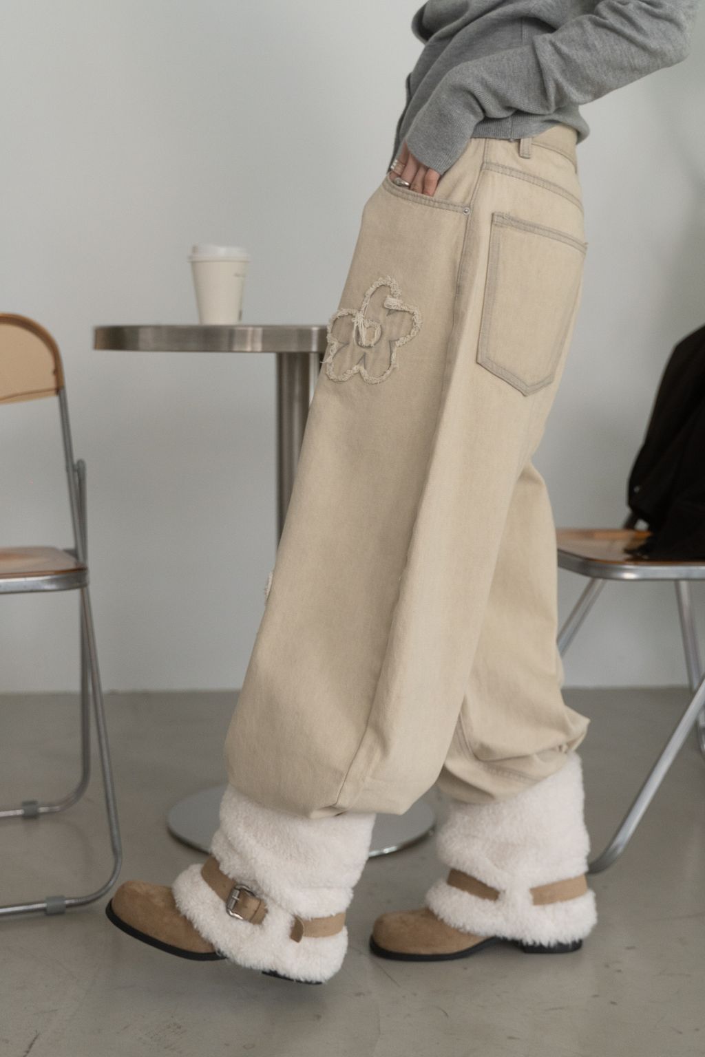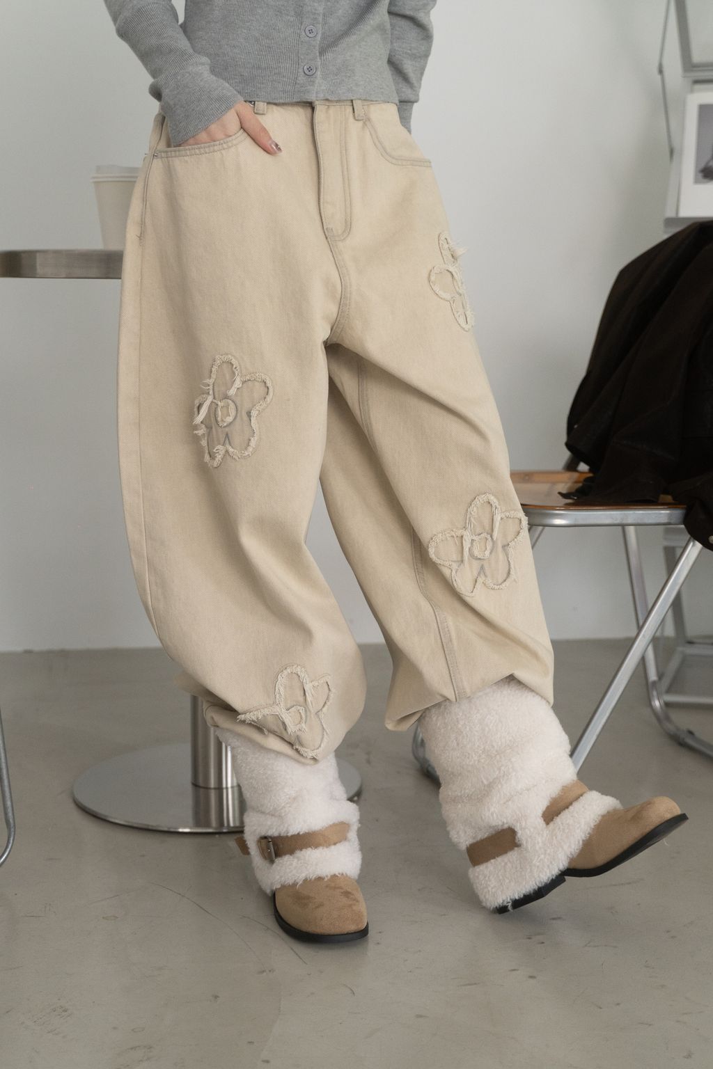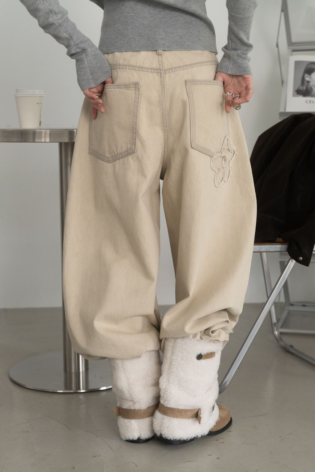 舊時光小花貼布繭型褲/杏 S/M/L