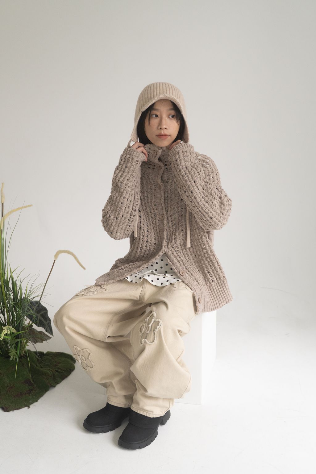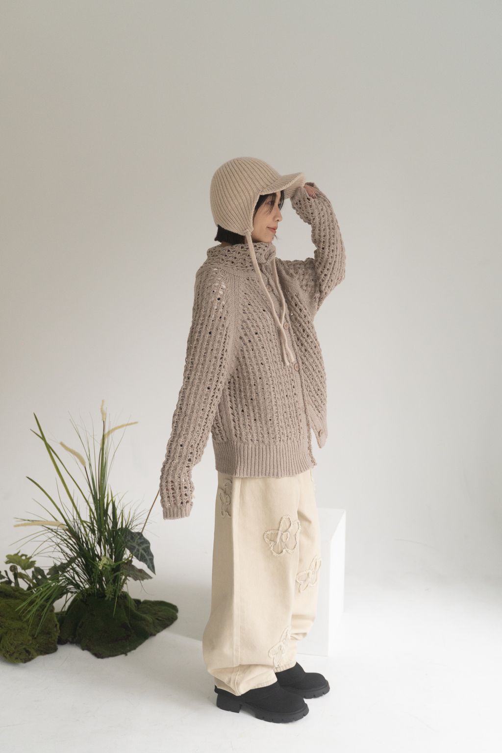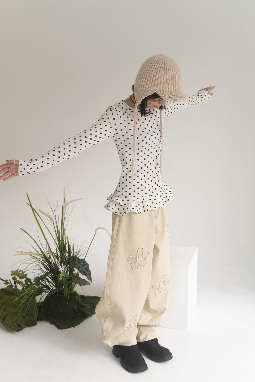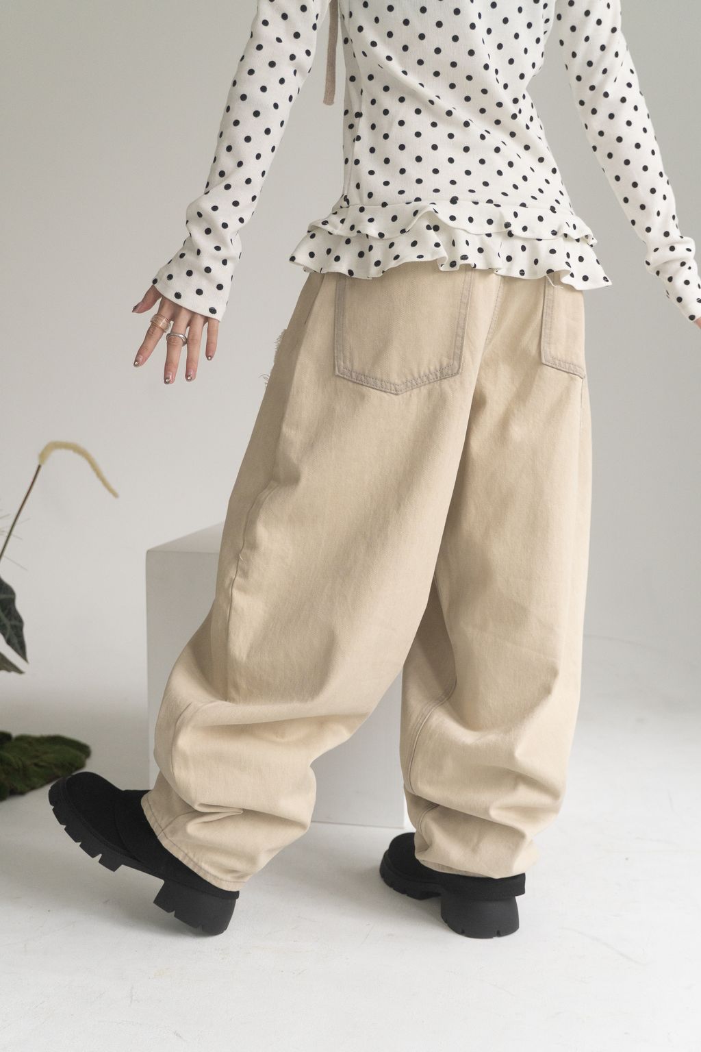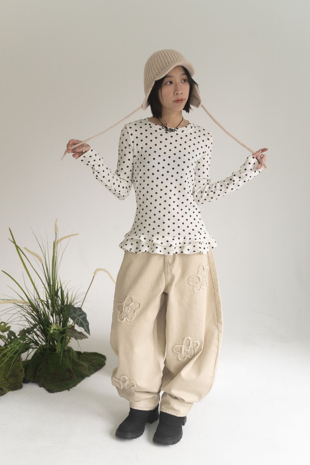舊時光小花貼布繭型褲/杏 S/M/L