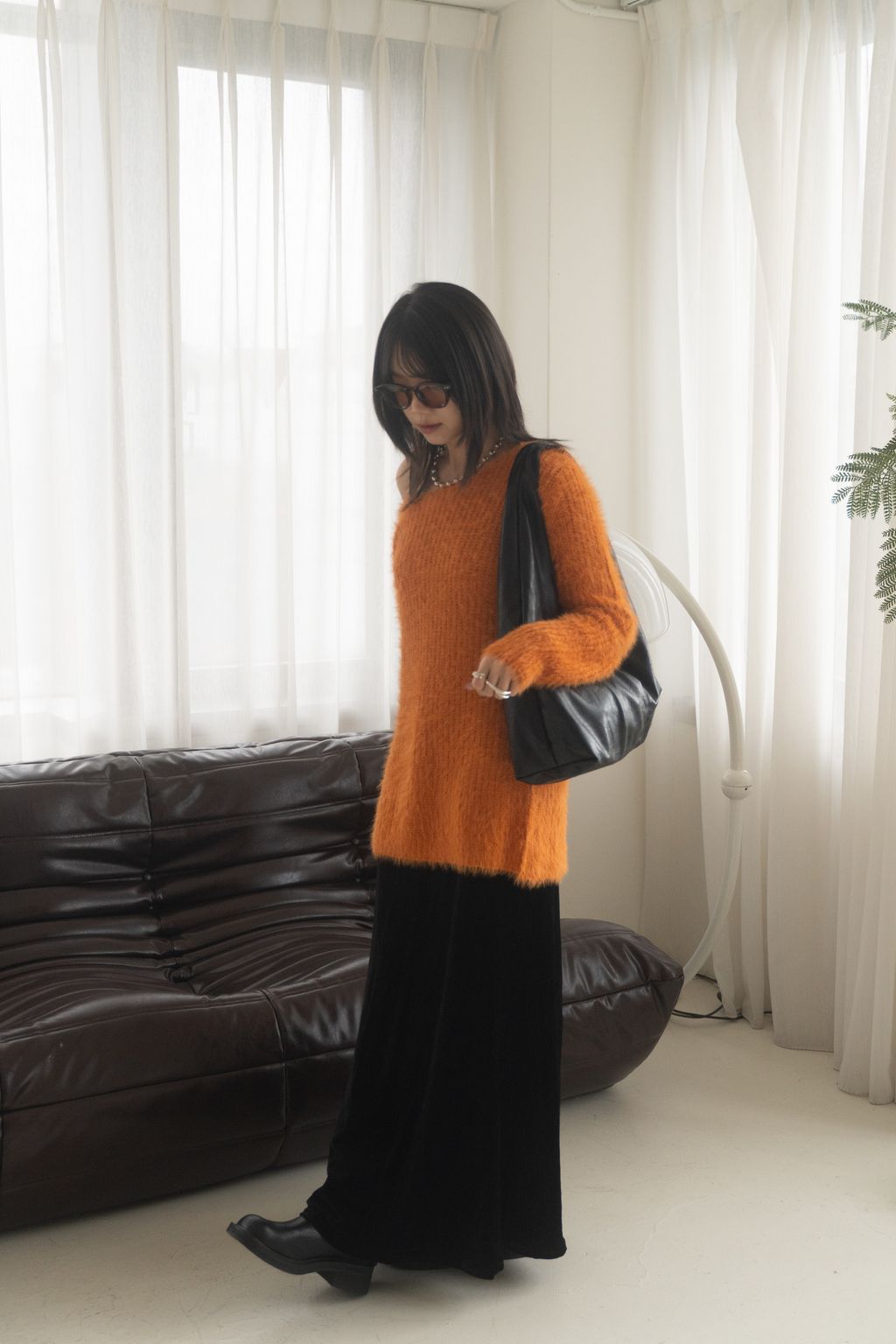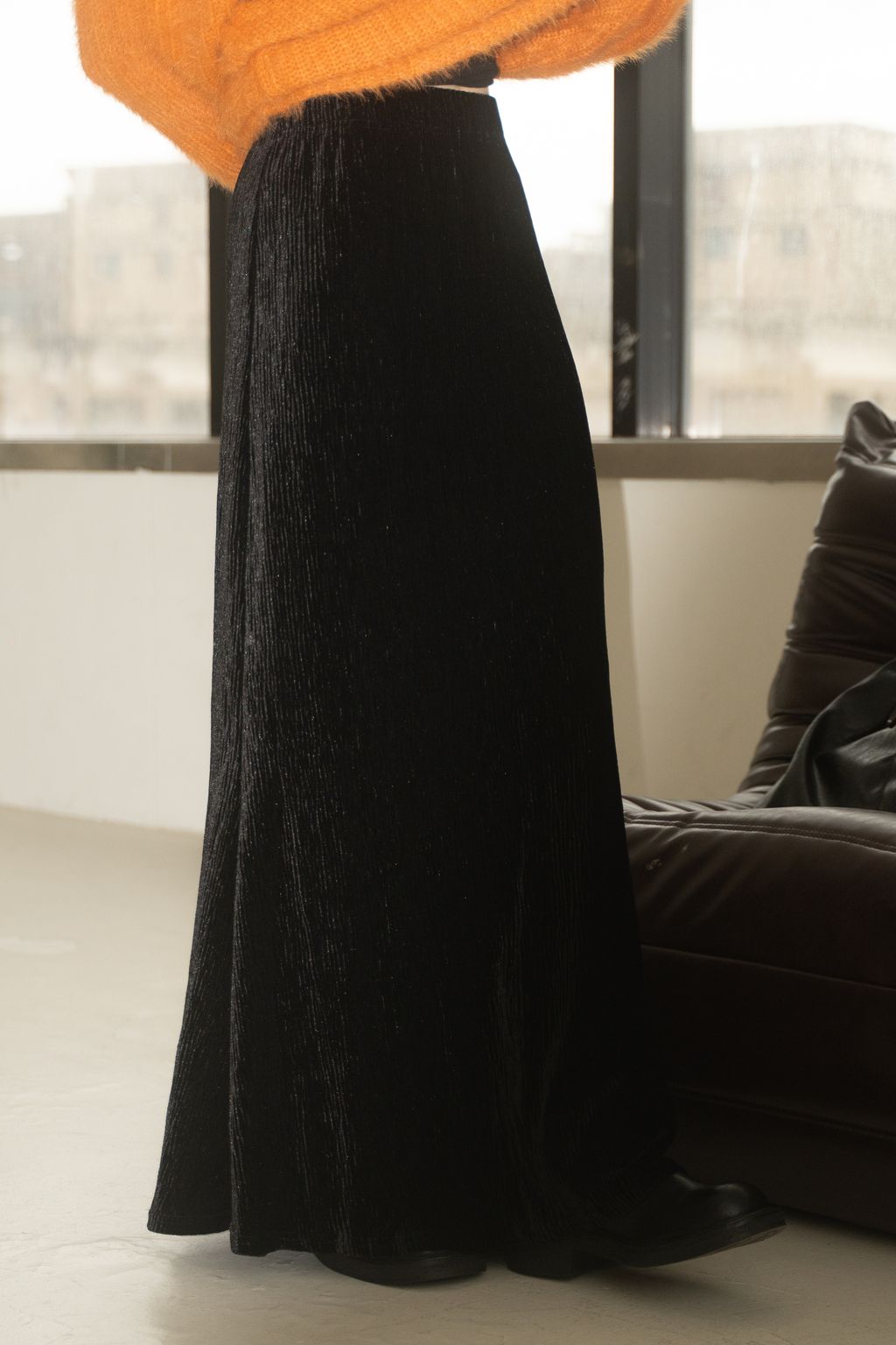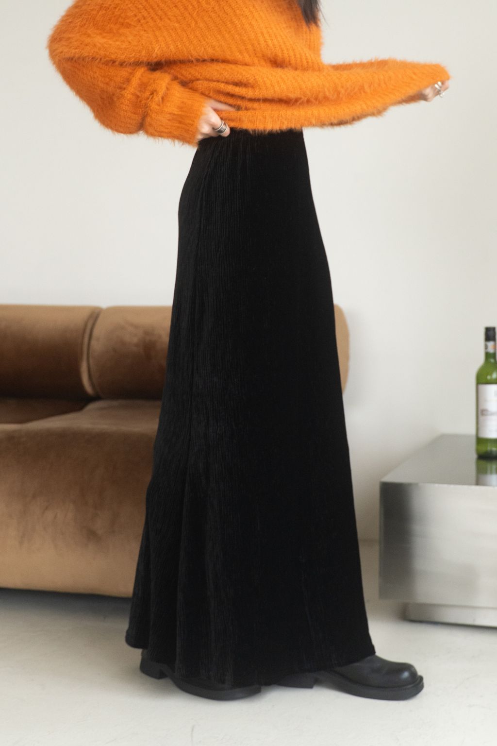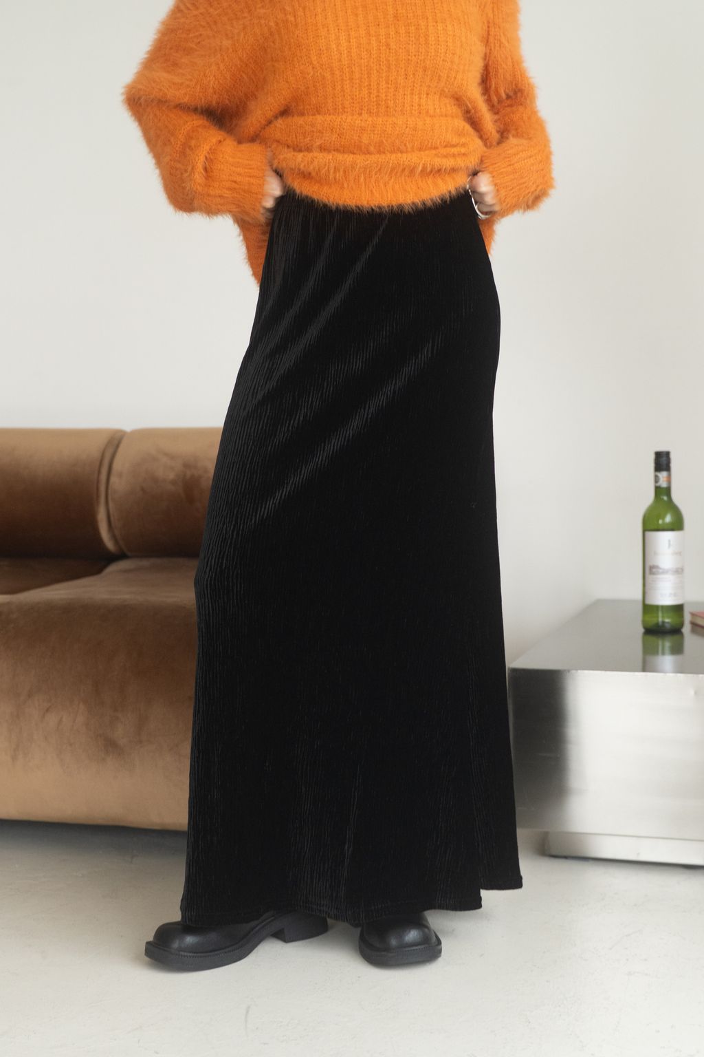 光澤絨面彈性魚尾裙 黑/杏/粉