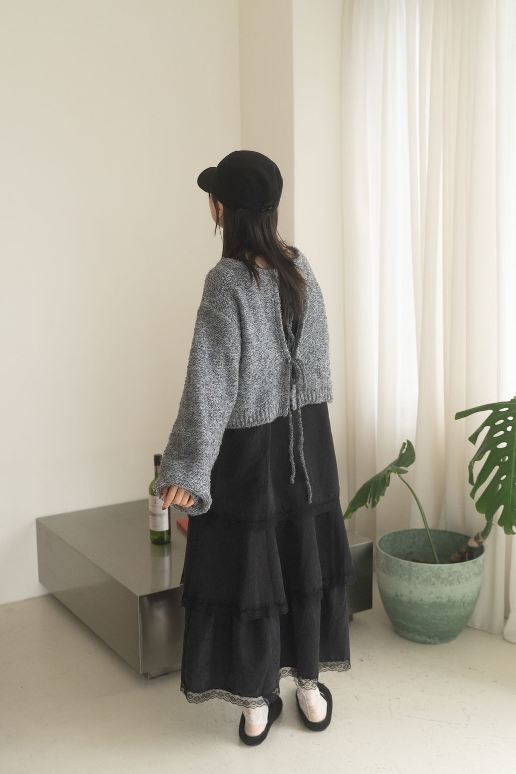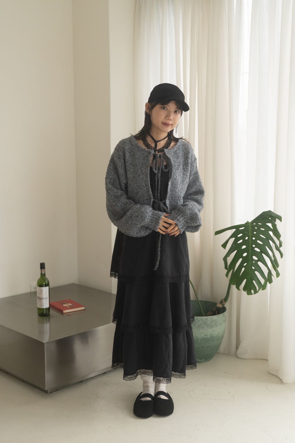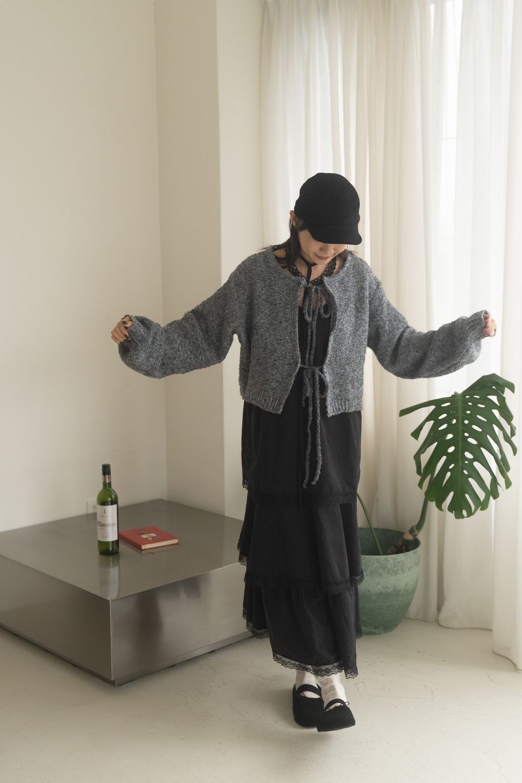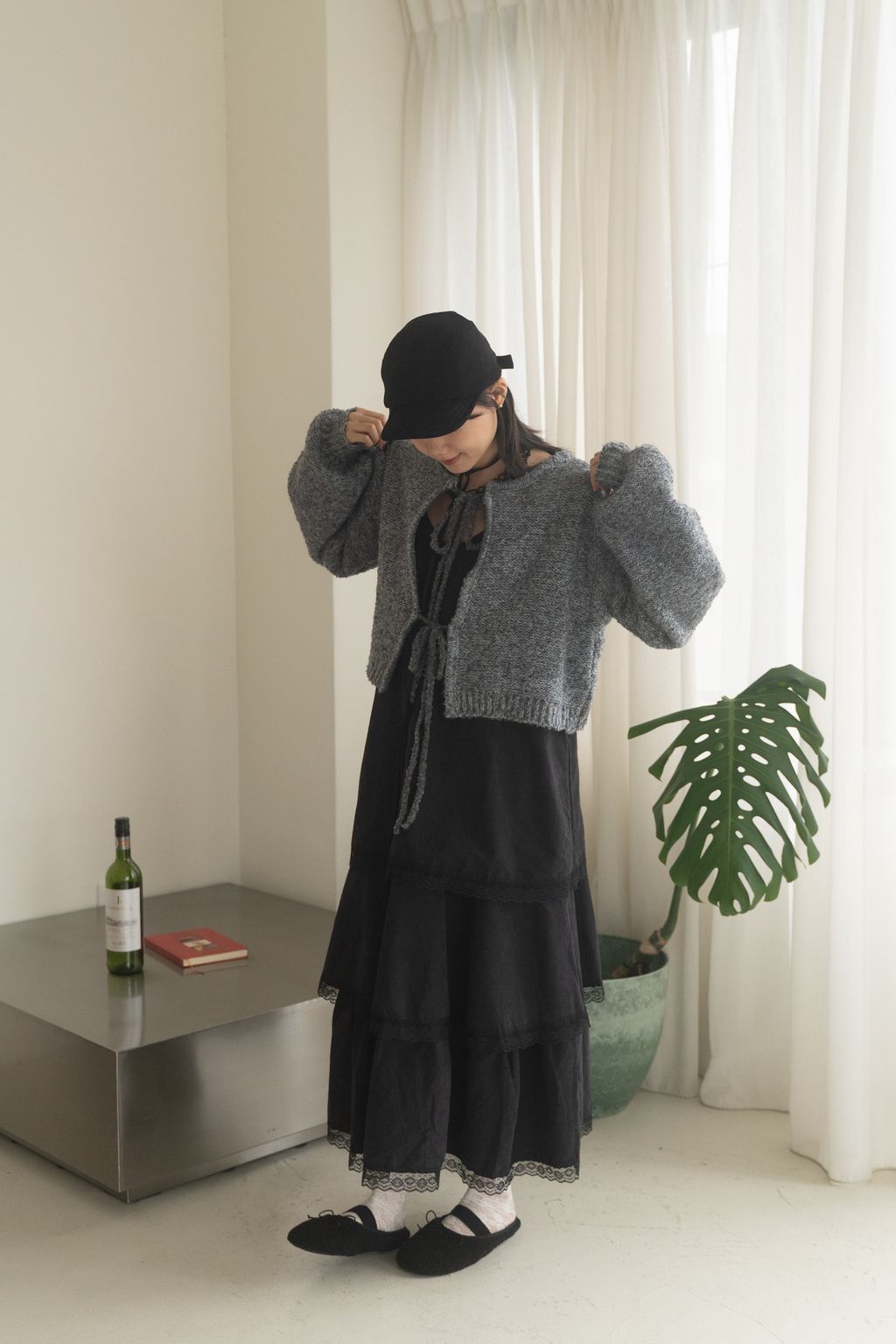 兩穿綁帶澎澎袖罩衫 灰藍/橘紅