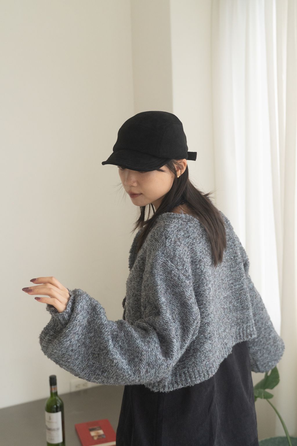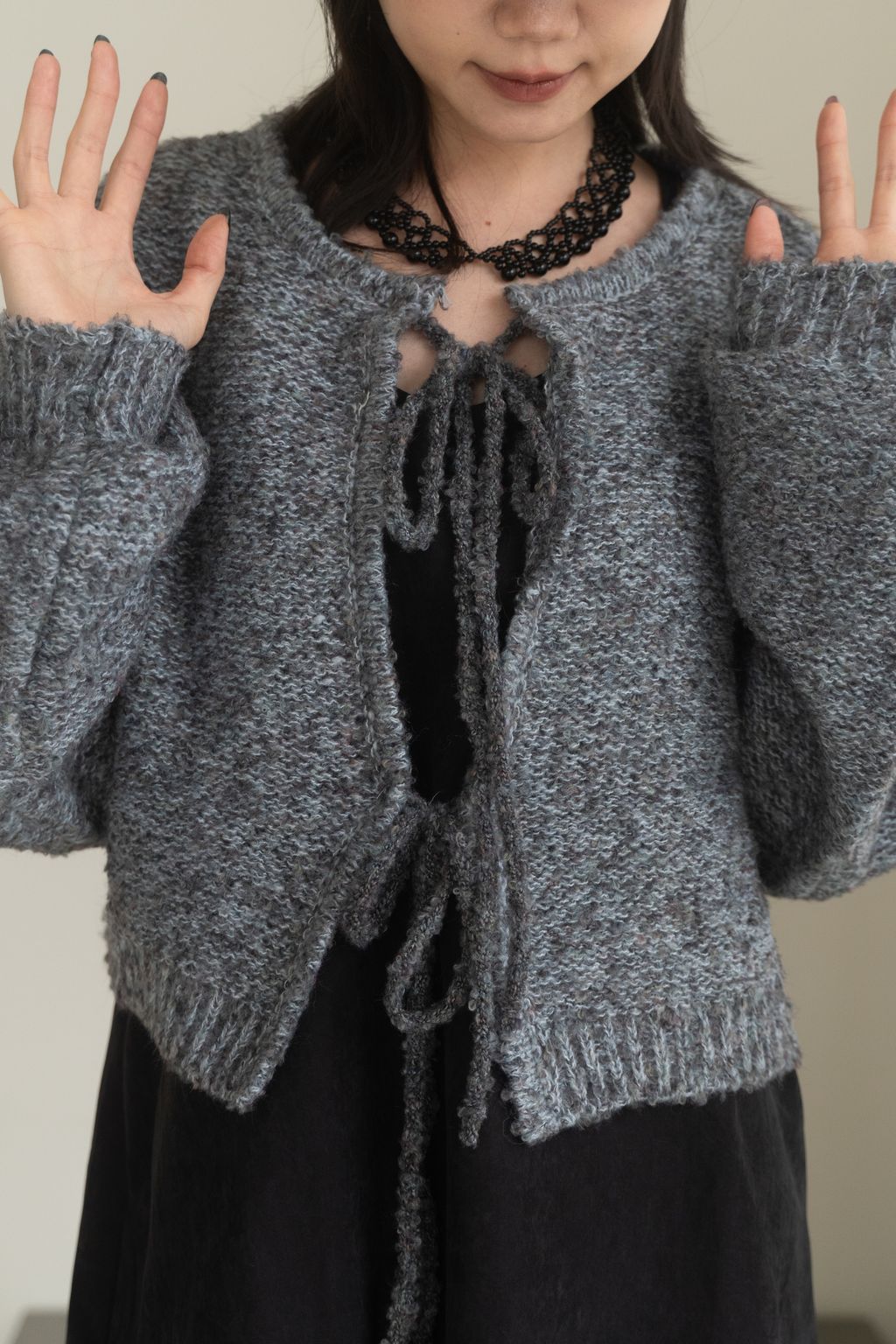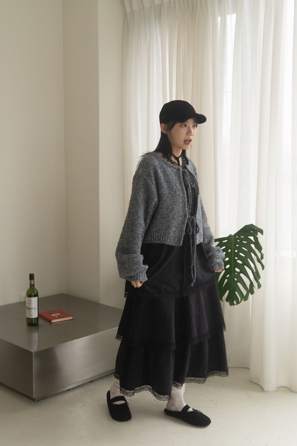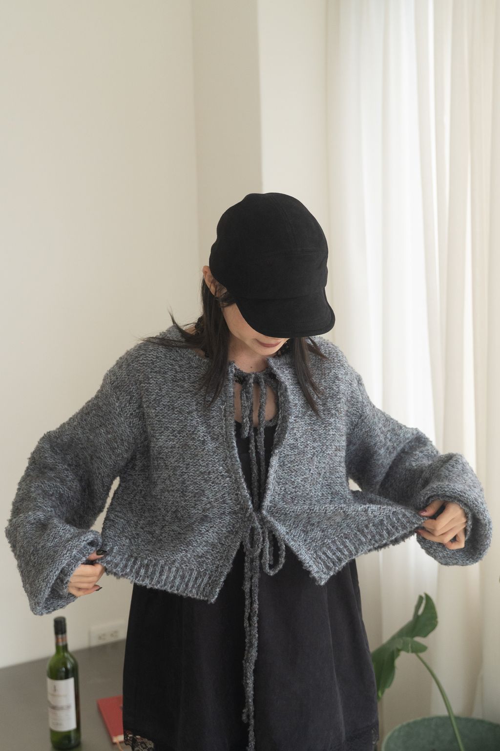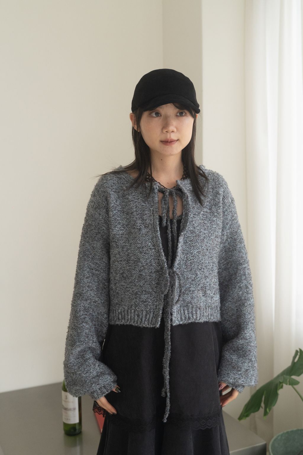 兩穿綁帶澎澎袖罩衫 灰藍/橘紅