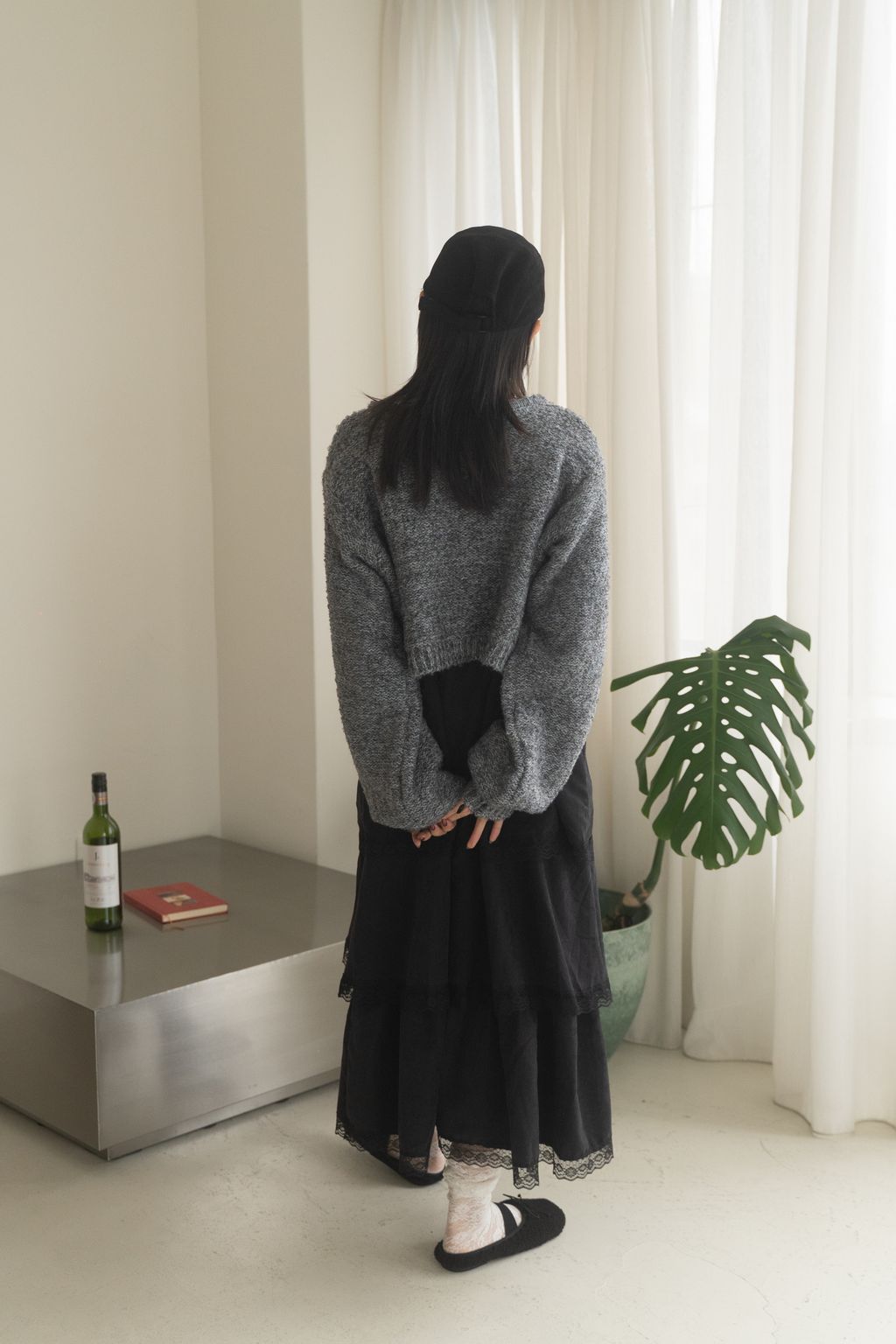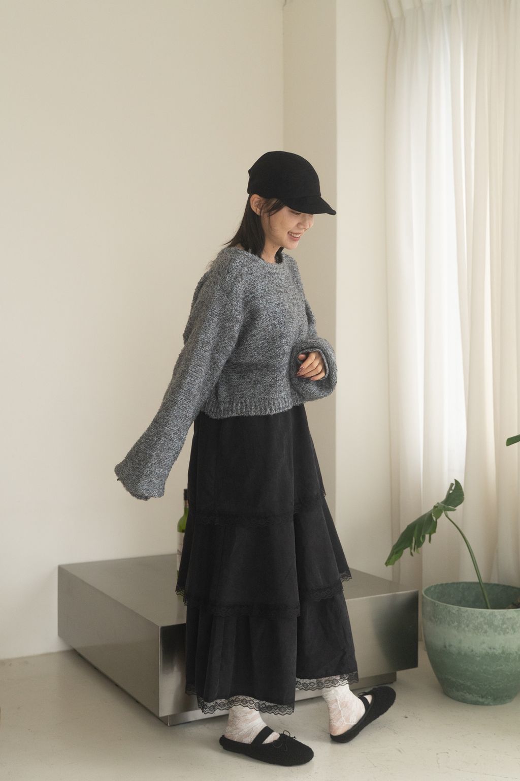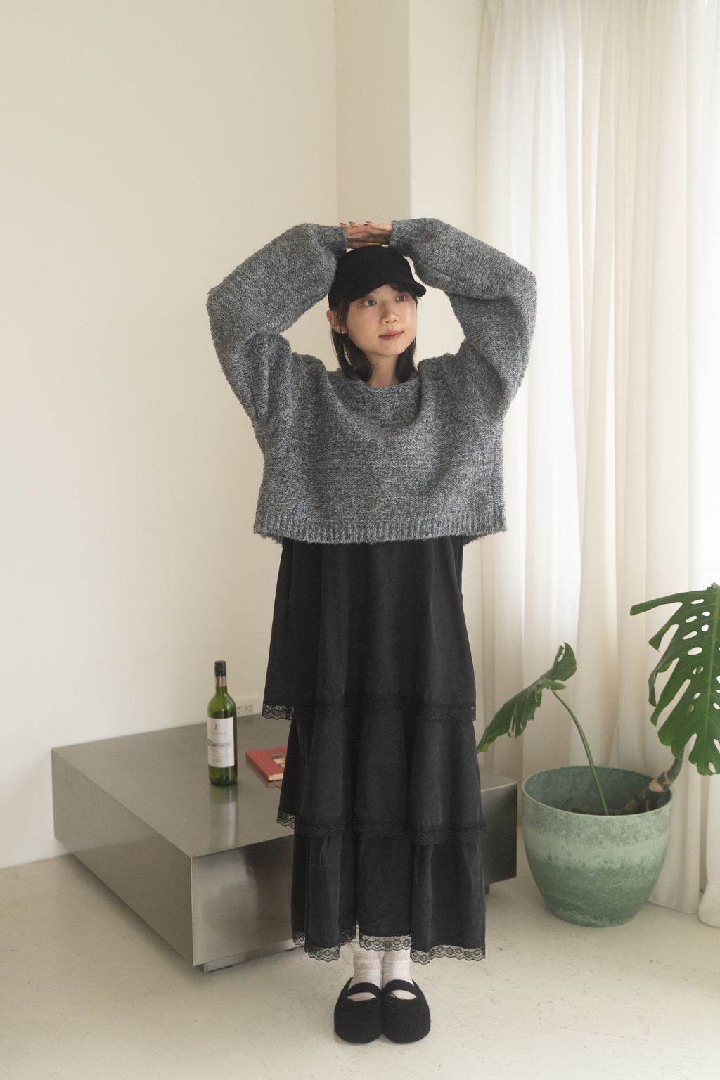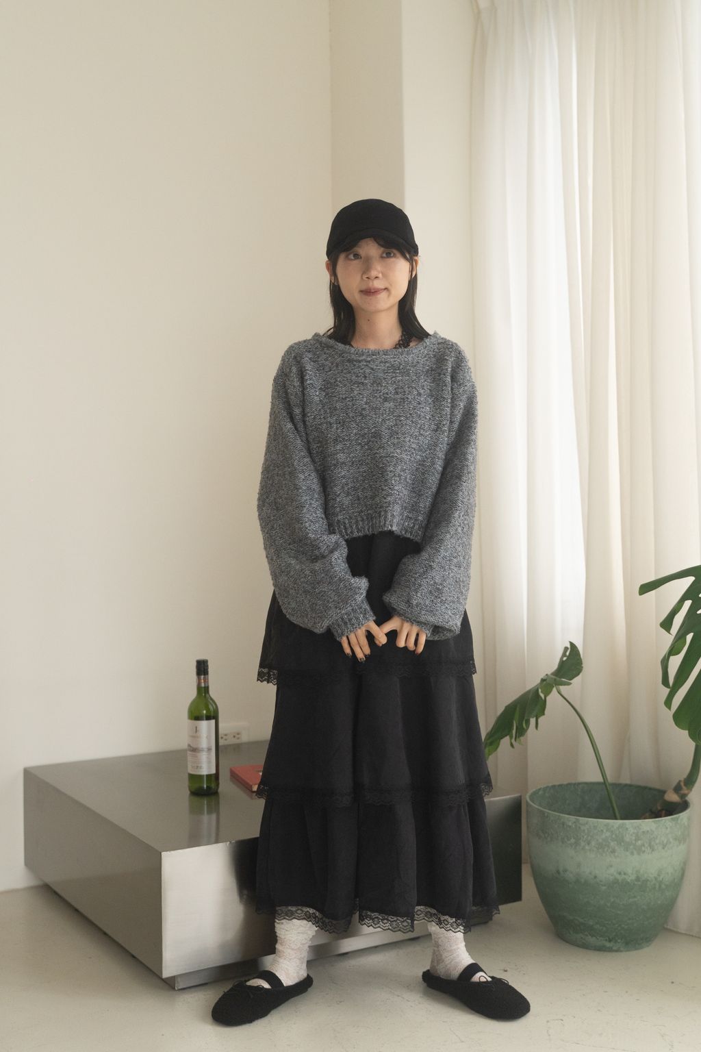 兩穿綁帶澎澎袖罩衫 灰藍/橘紅