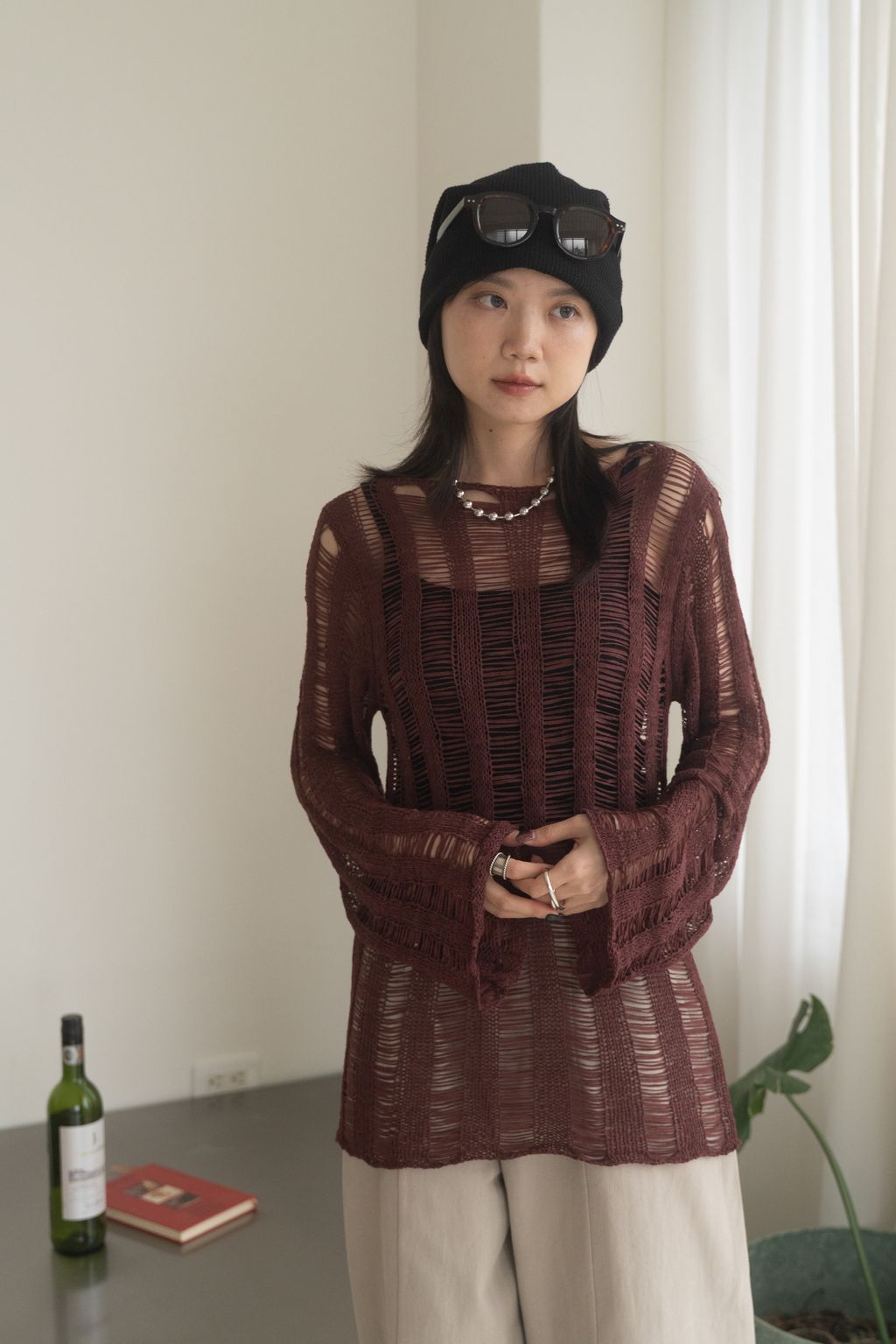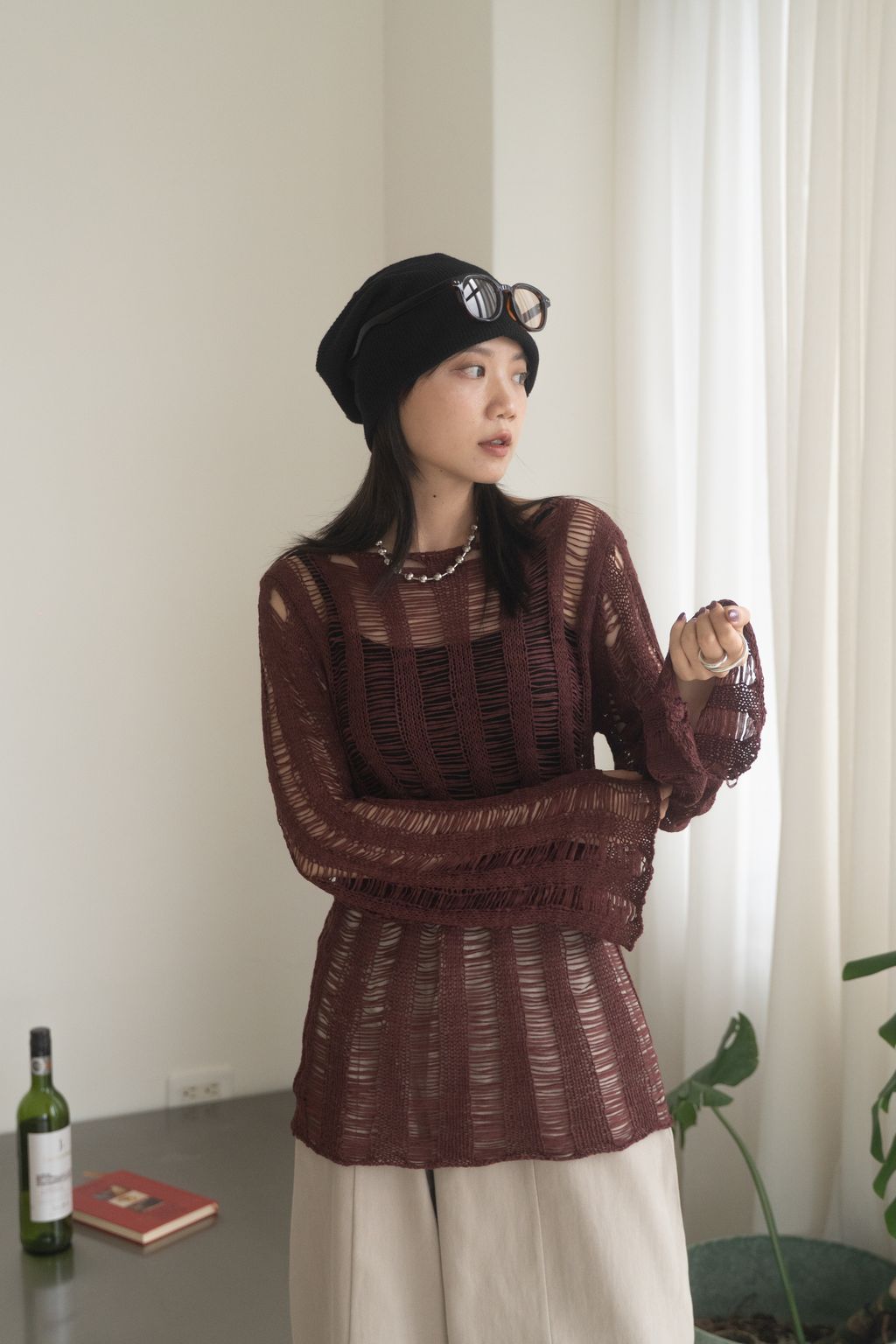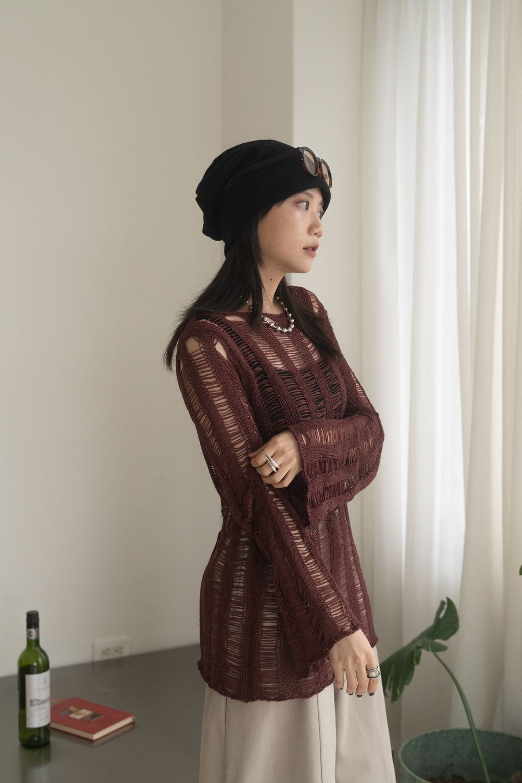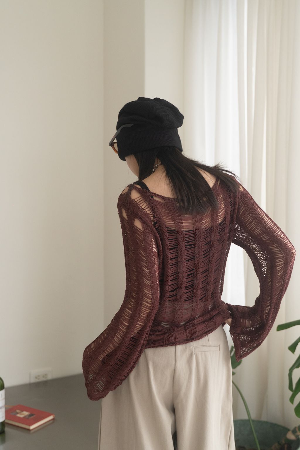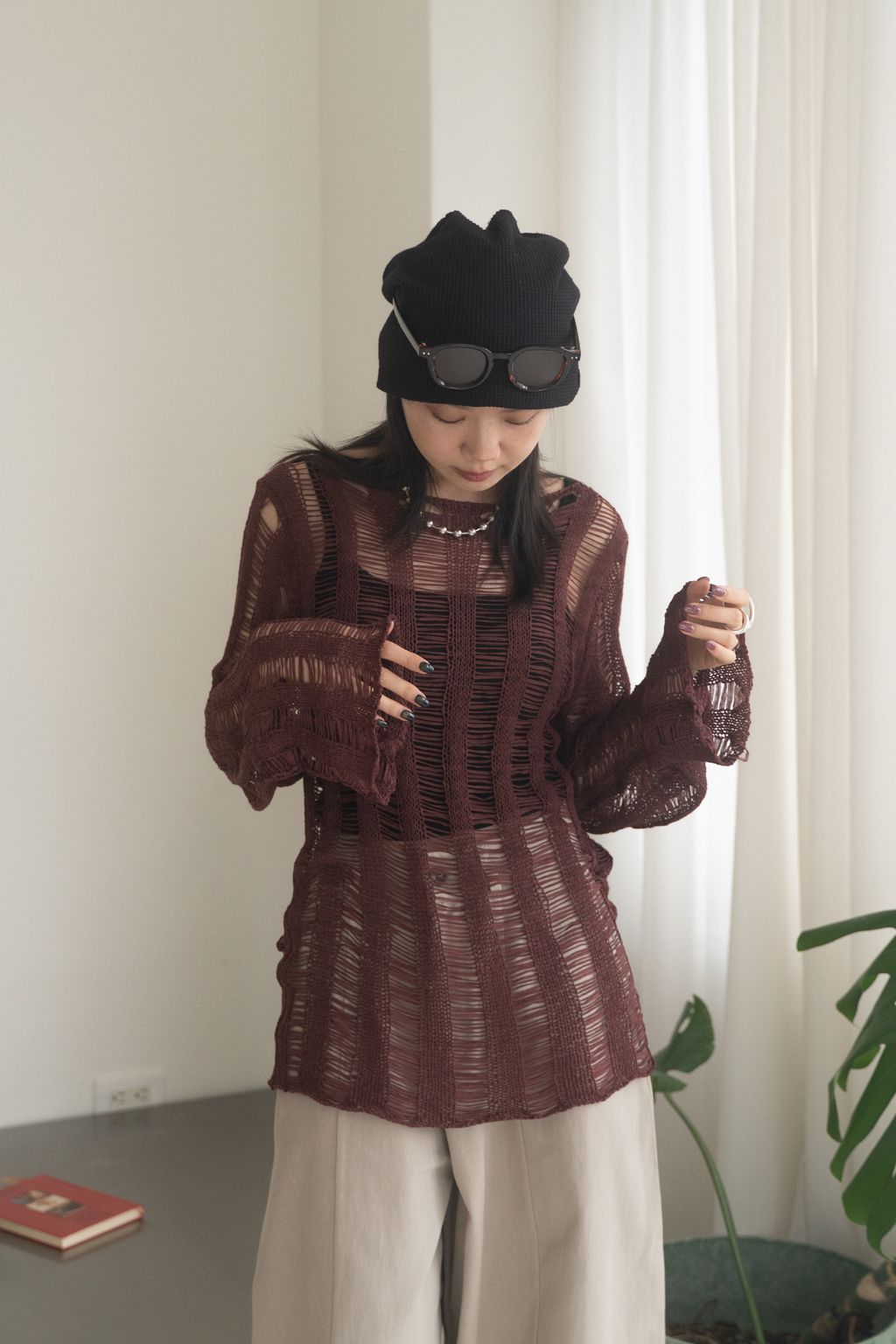 織不完的網慵懶上衣 黑/白/紅咖