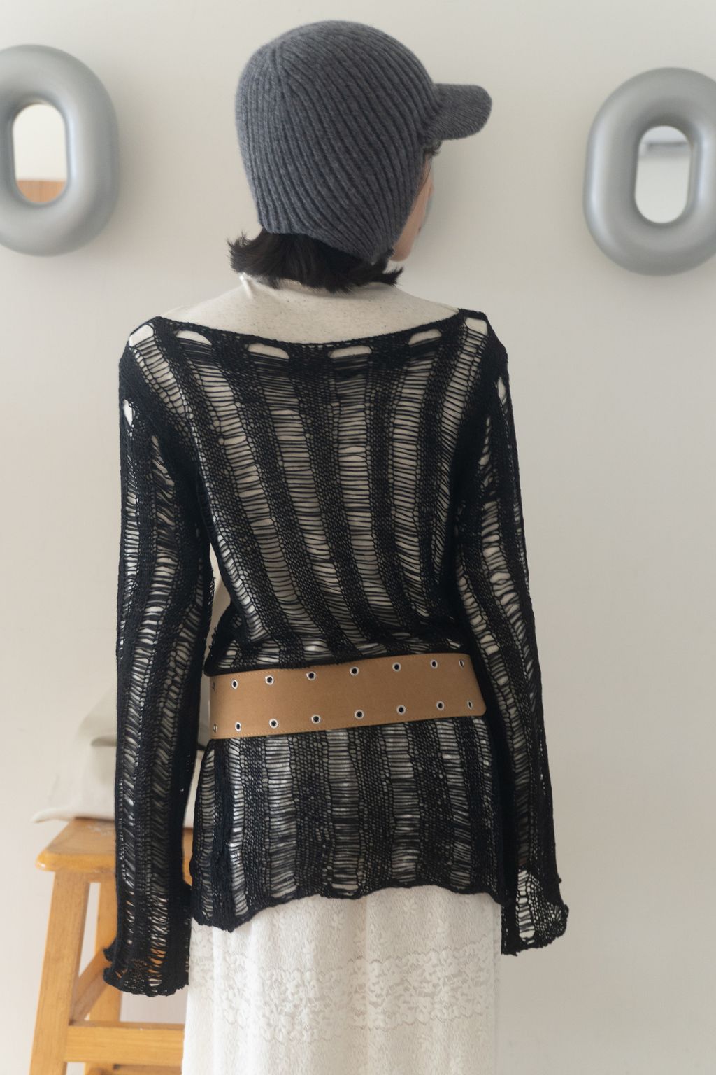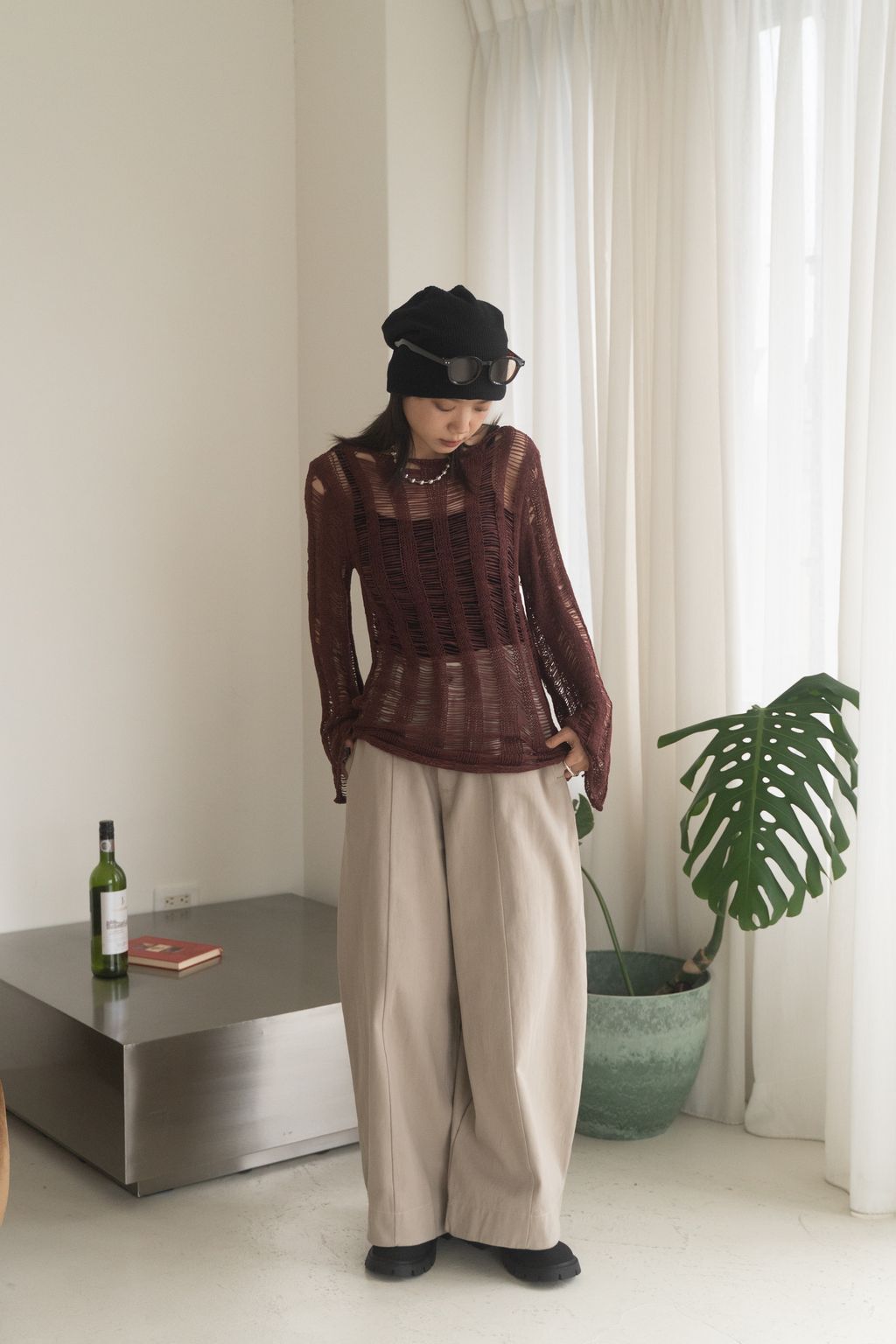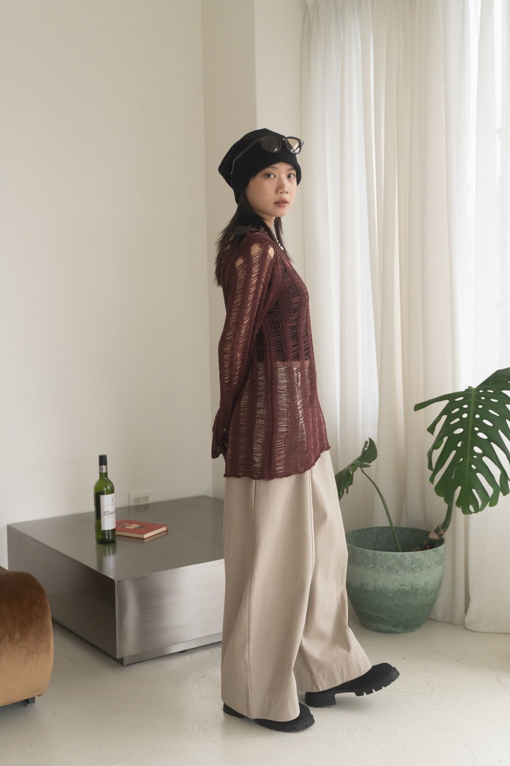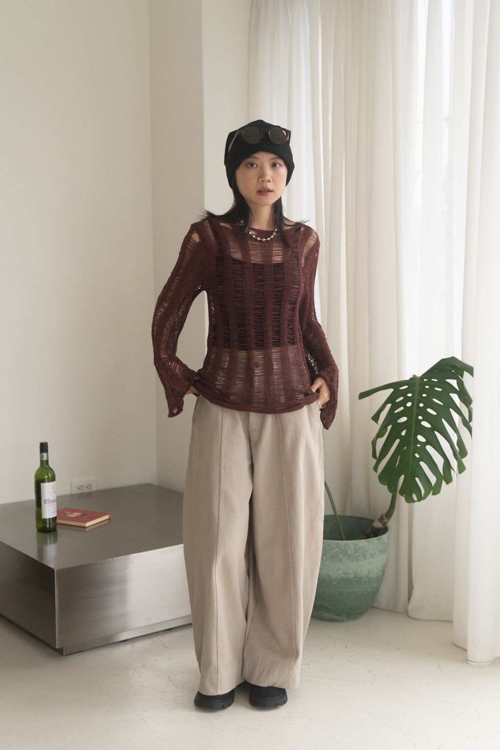 織不完的網慵懶上衣 黑/白/紅咖