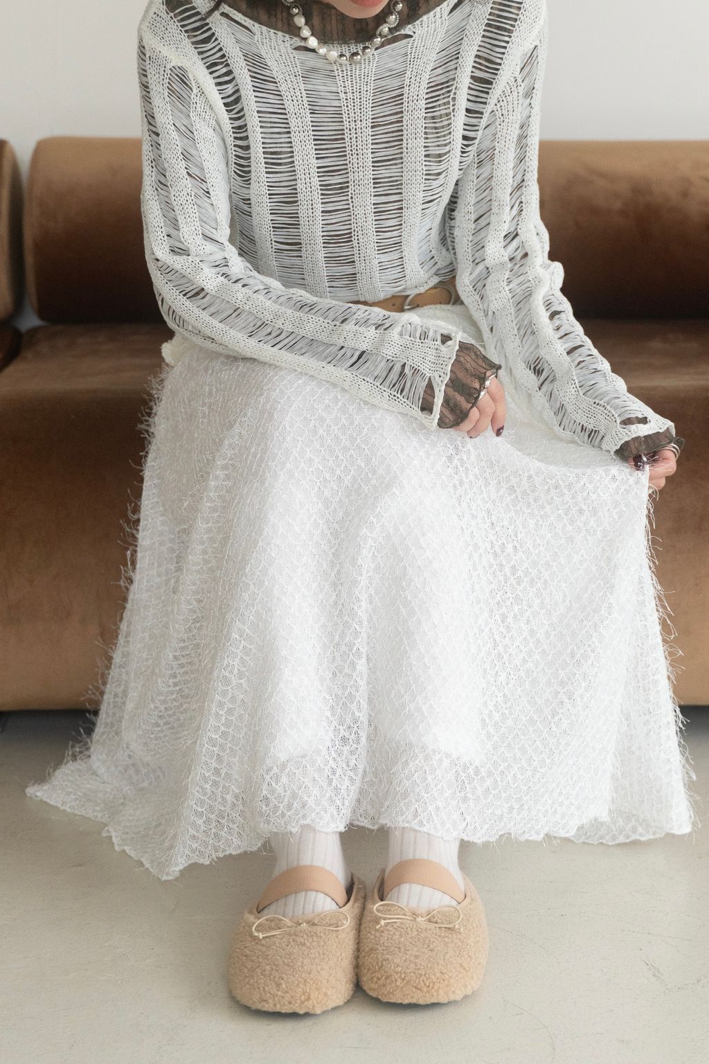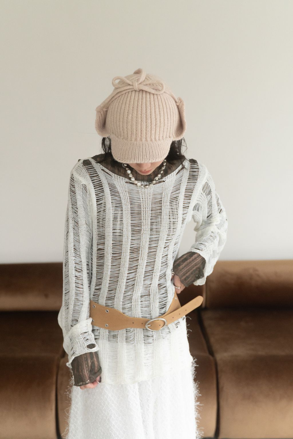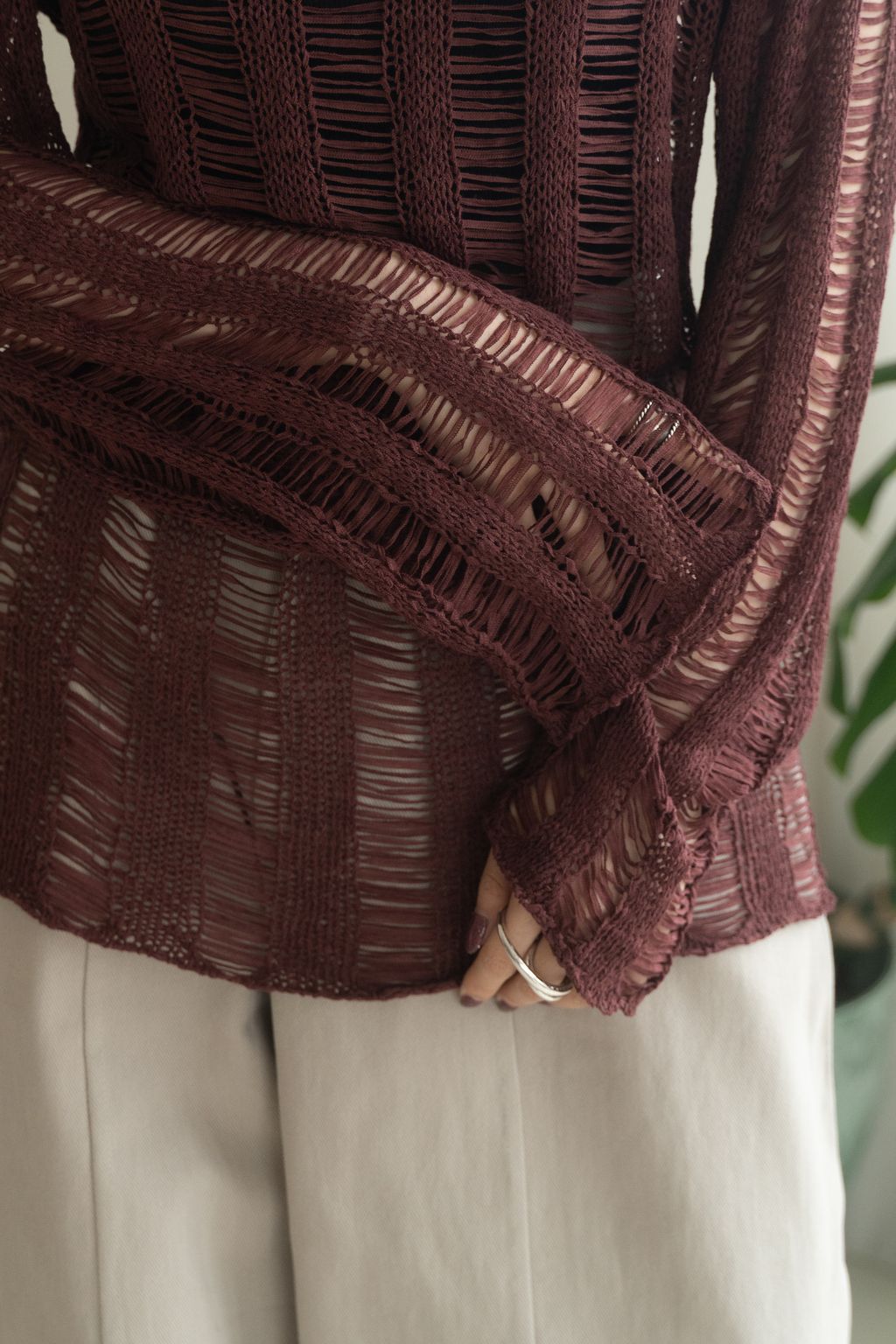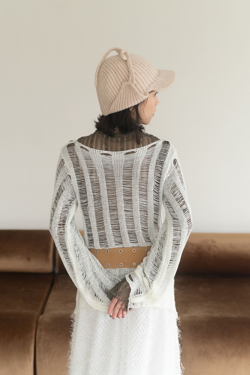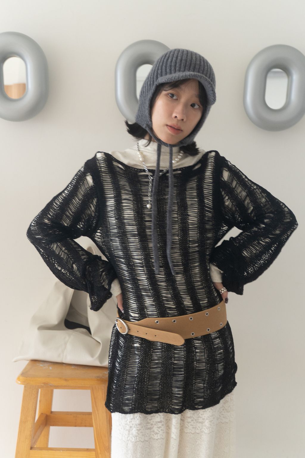 織不完的網慵懶上衣 黑/白/紅咖