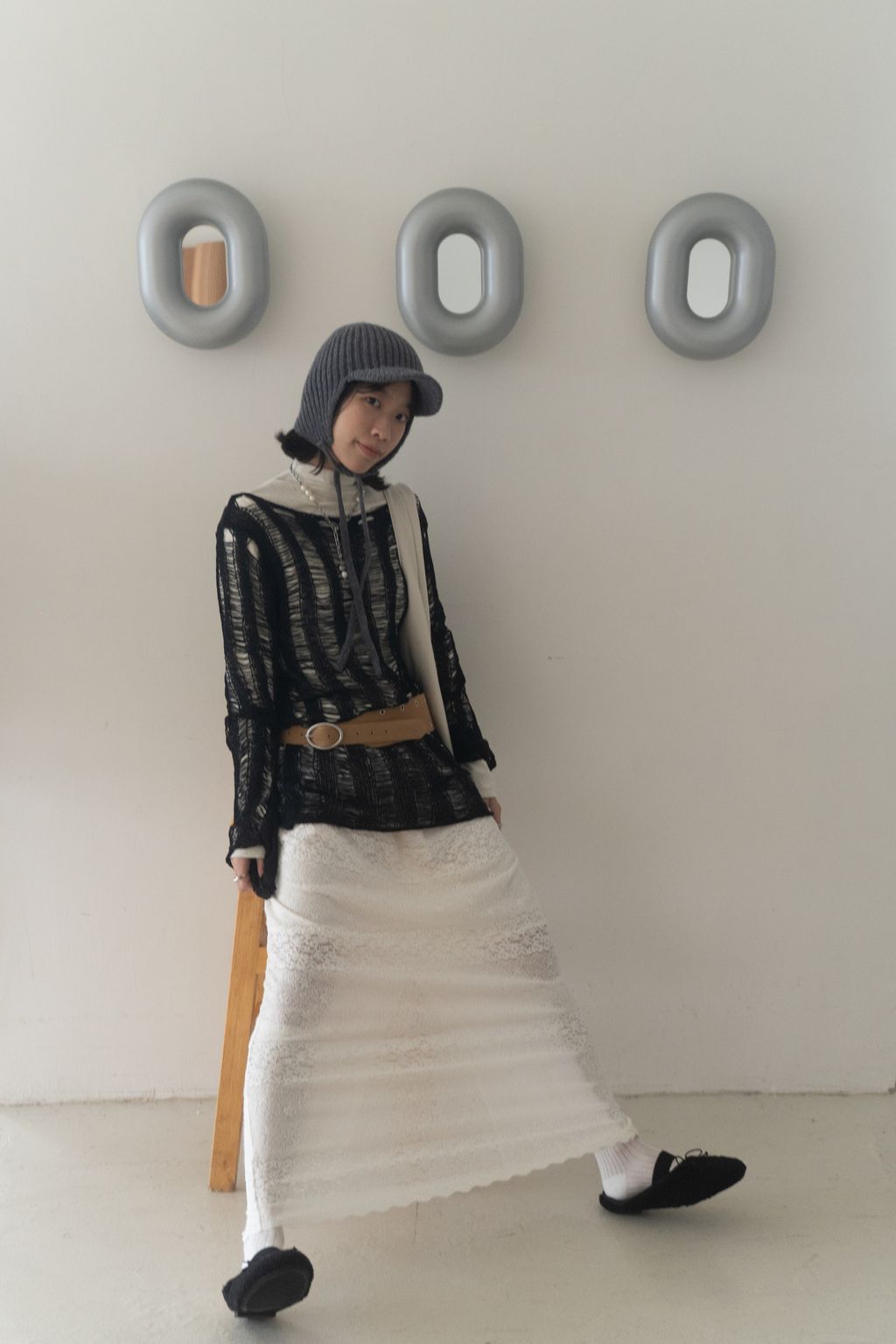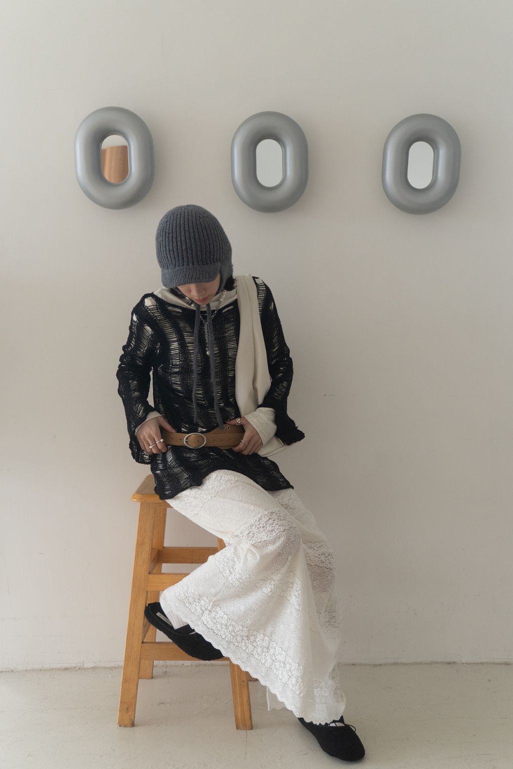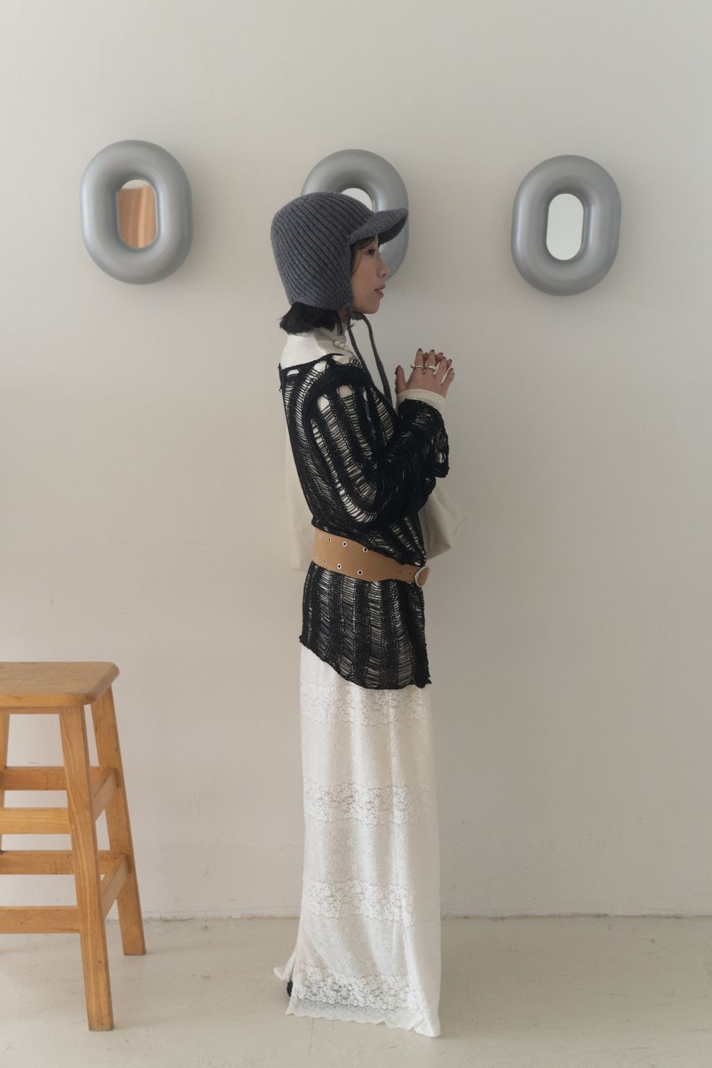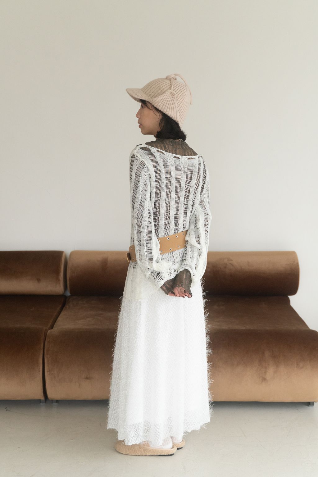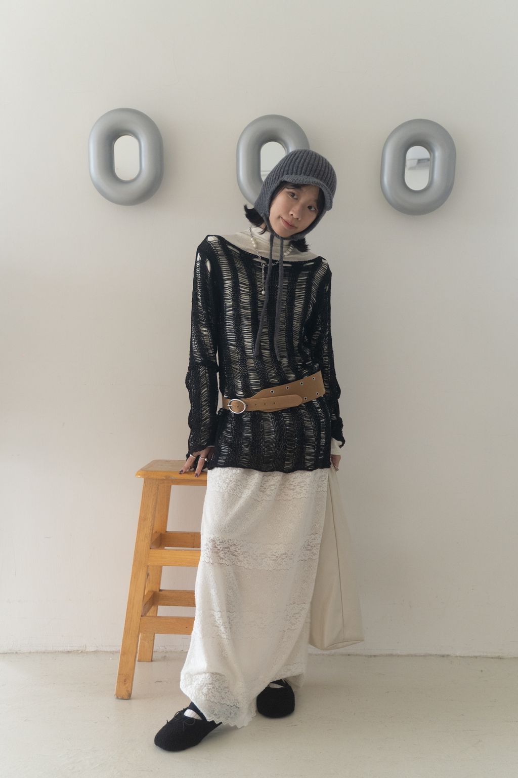 織不完的網慵懶上衣 黑/白/紅咖