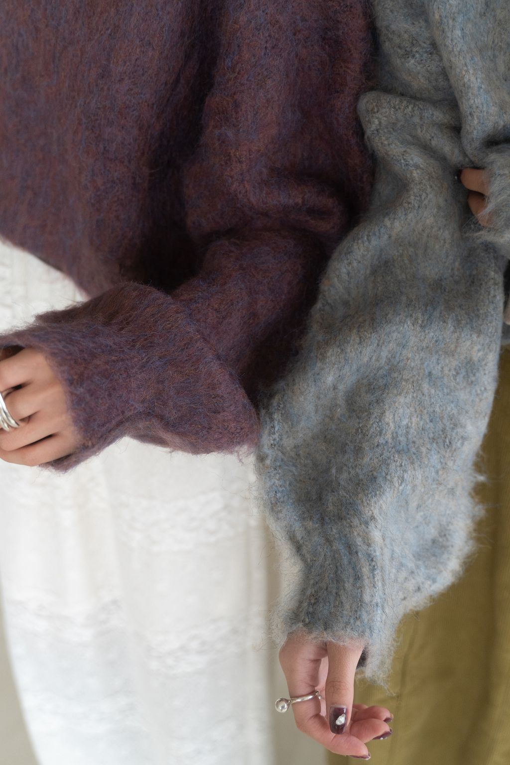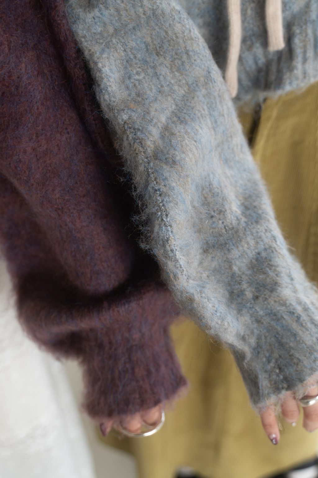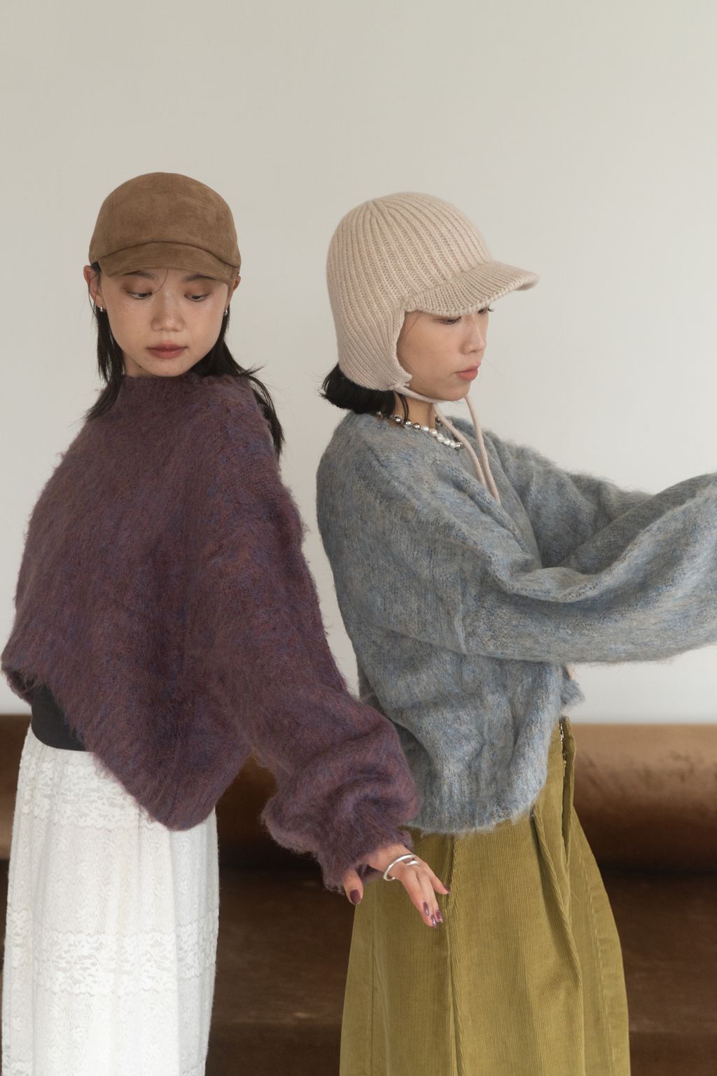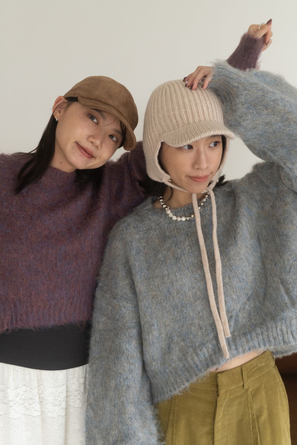 莫內花園燈籠袖短版毛衣 灰藍/紫