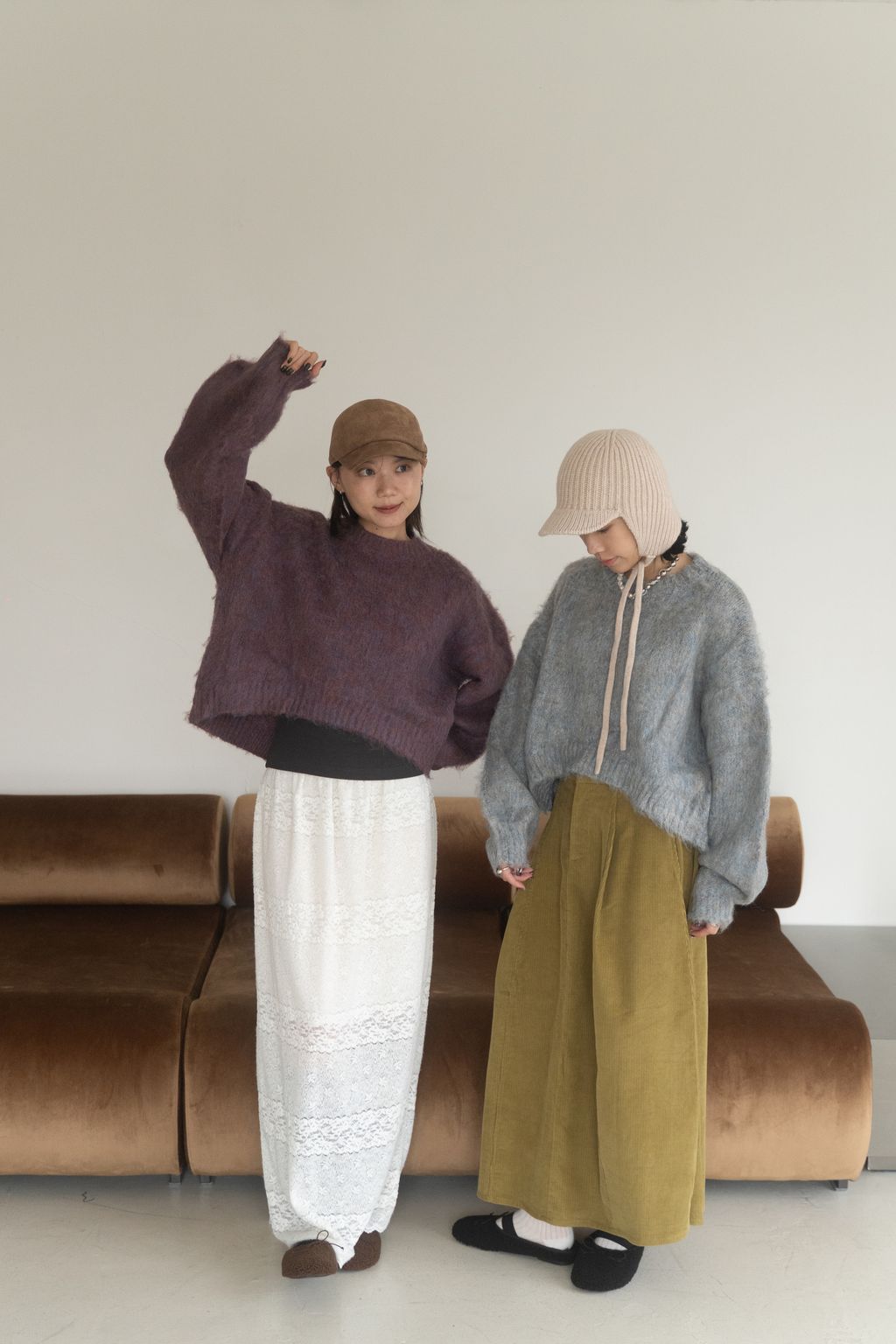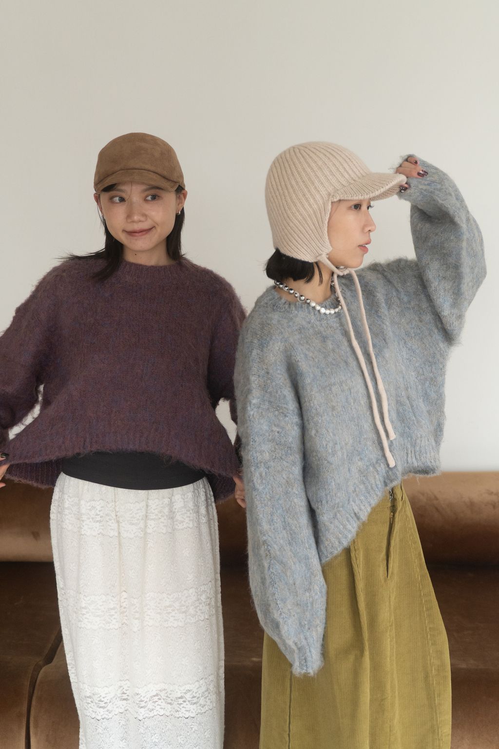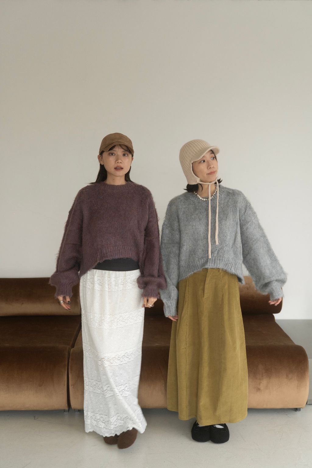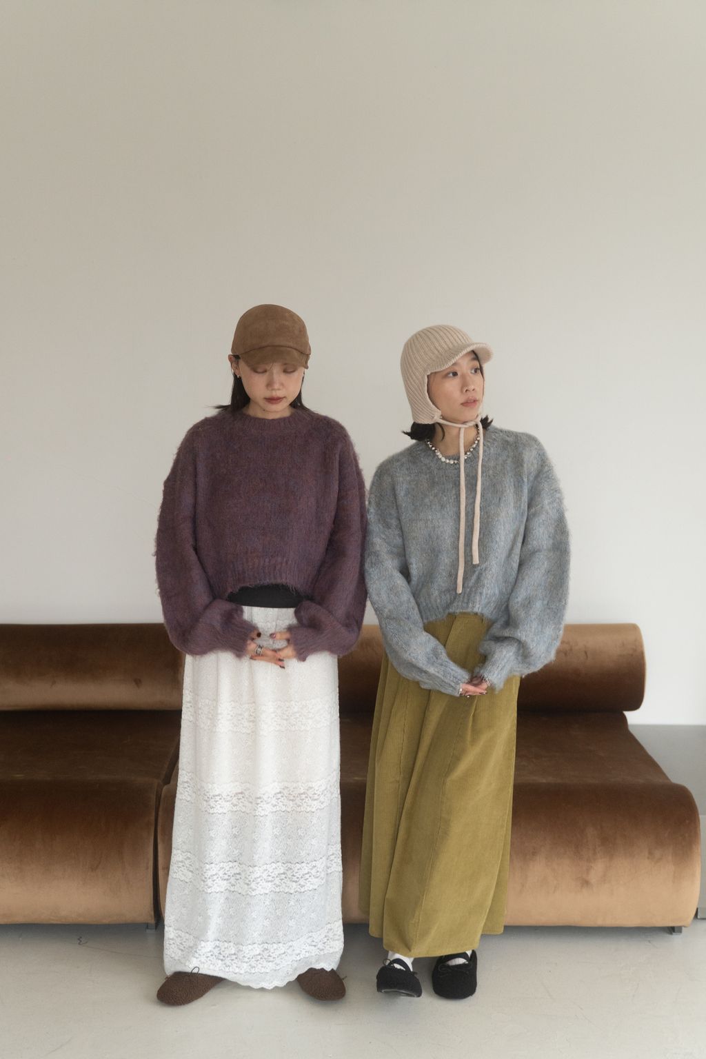 莫內花園燈籠袖短版毛衣 灰藍/紫