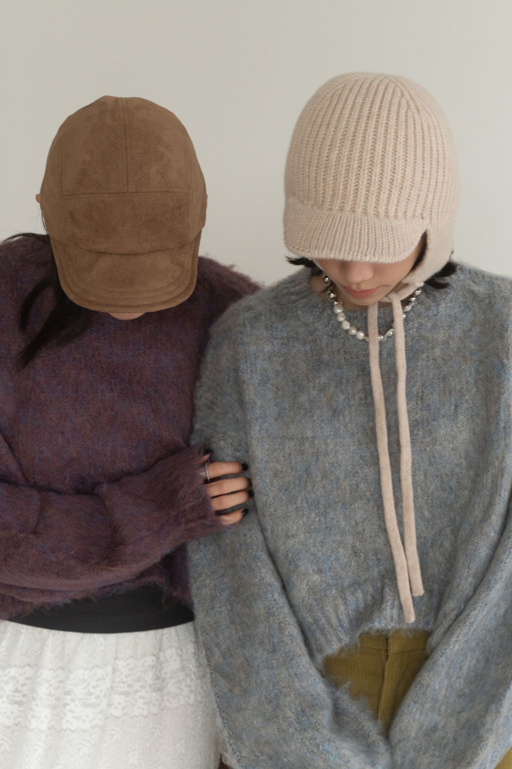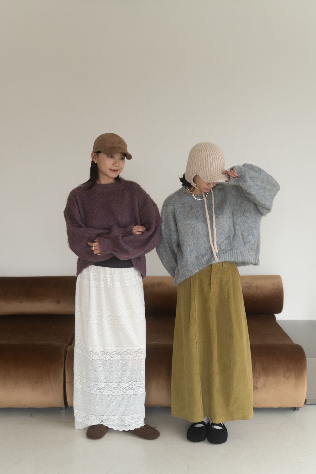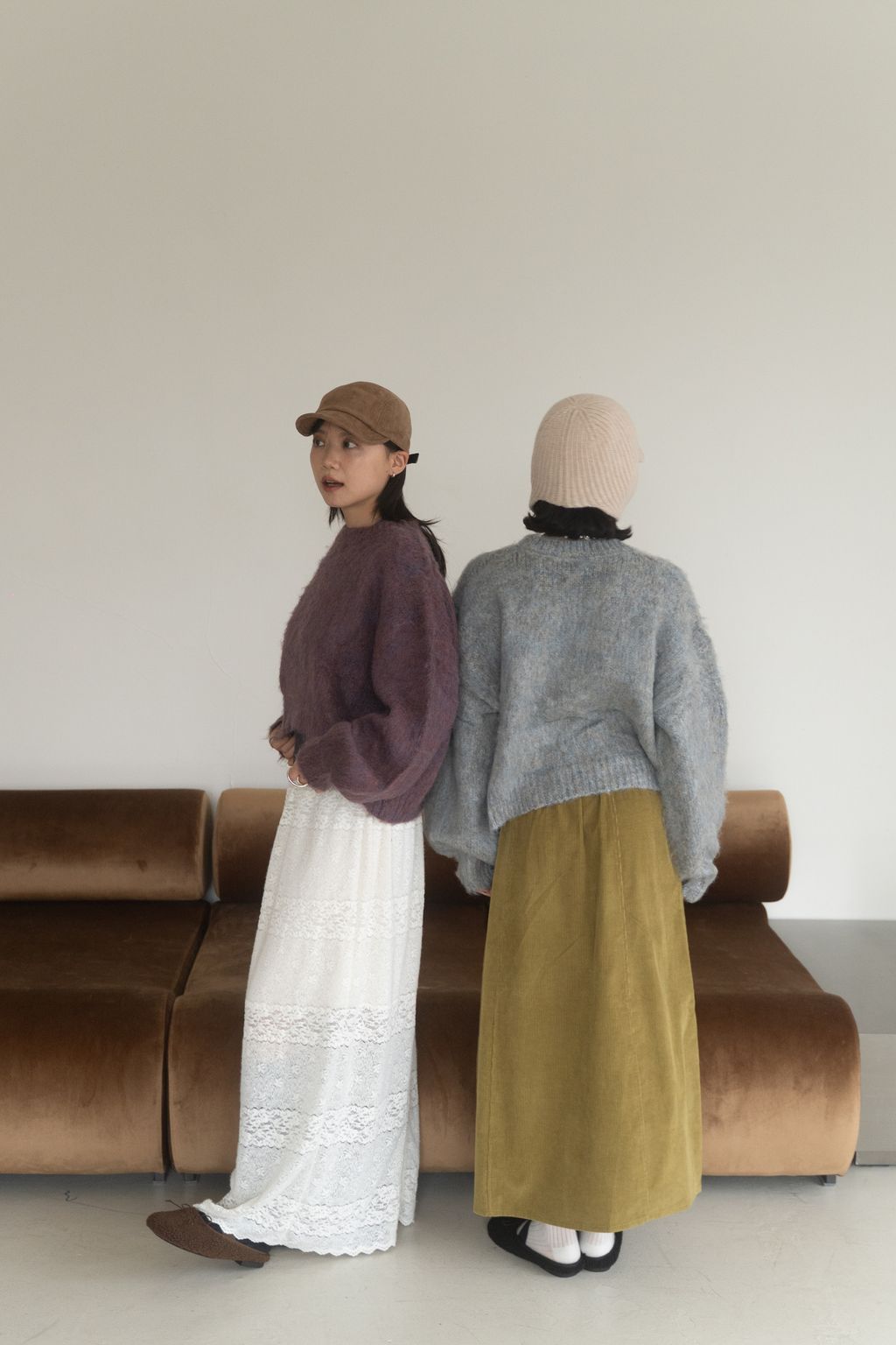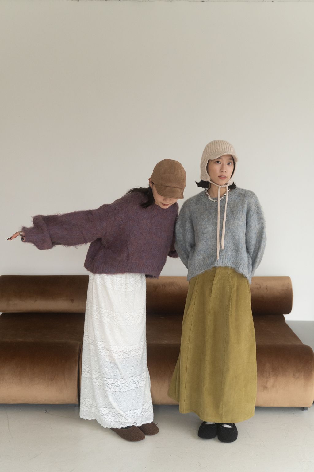 莫內花園燈籠袖短版毛衣 灰藍/紫