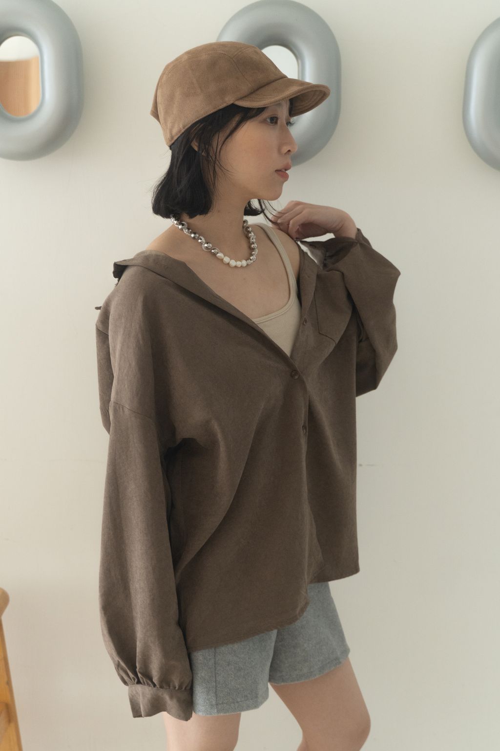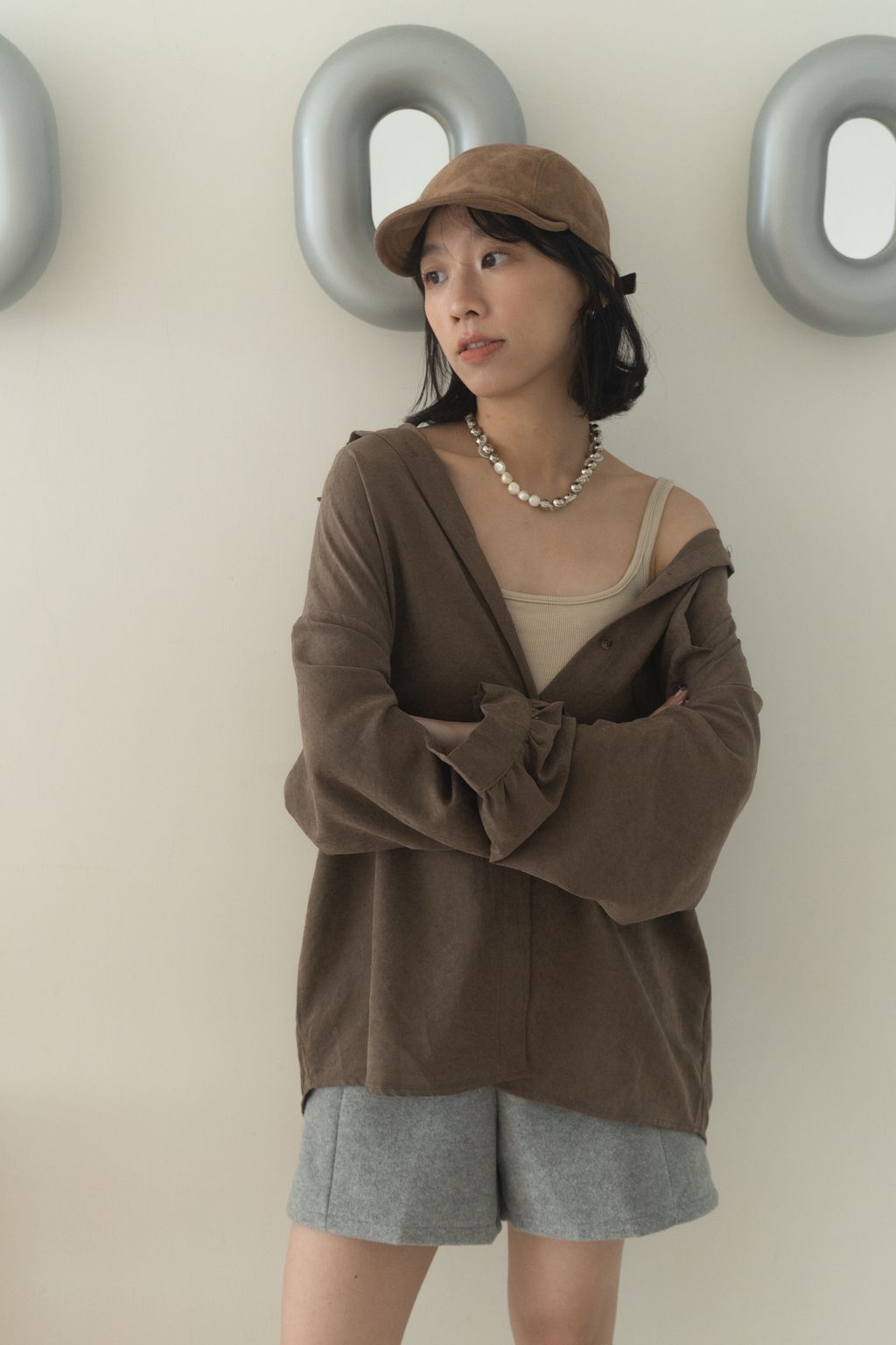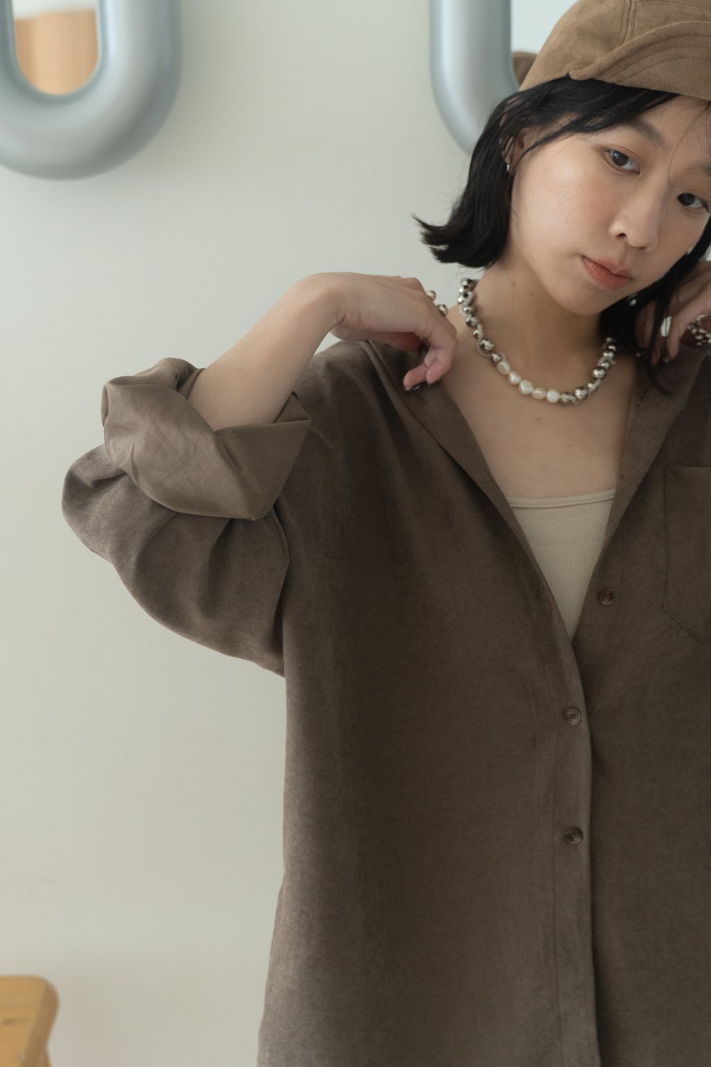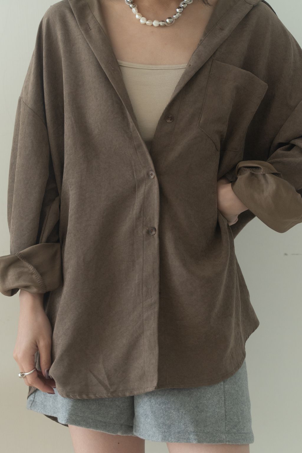 蜜桃絨水霧感襯衫 咖/灰