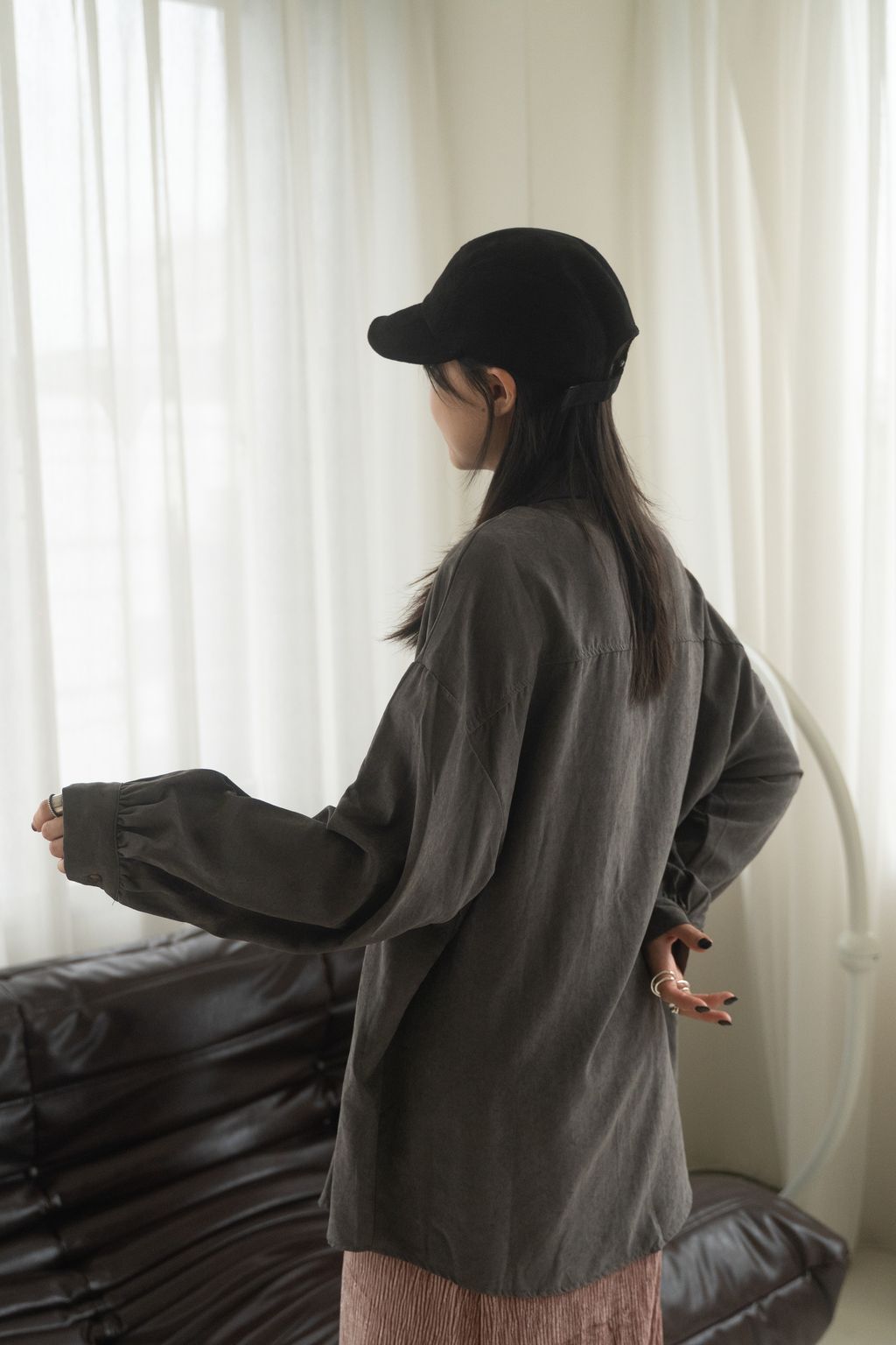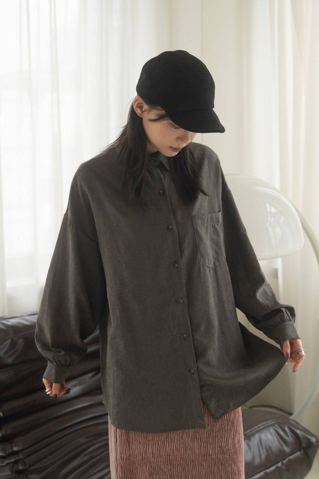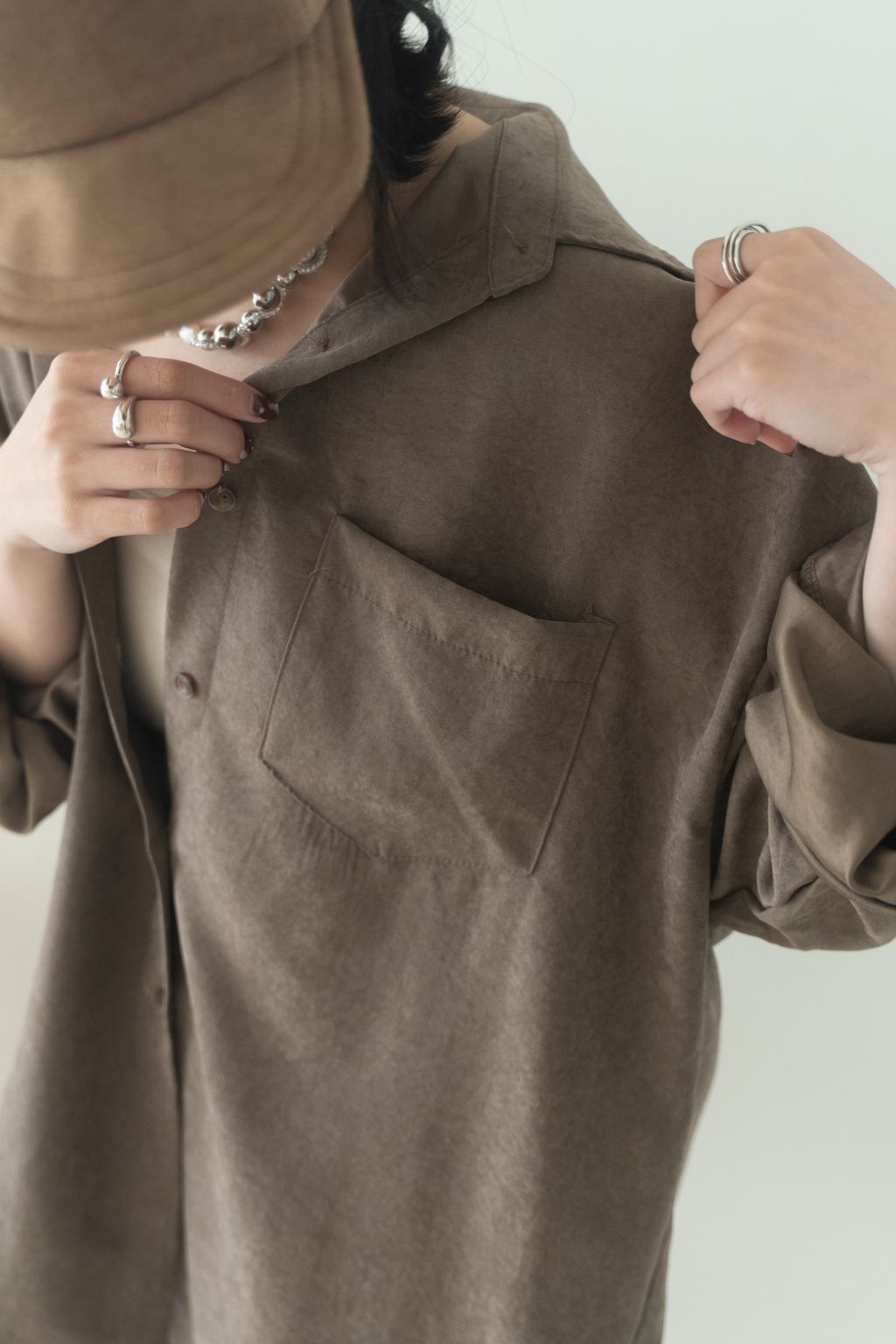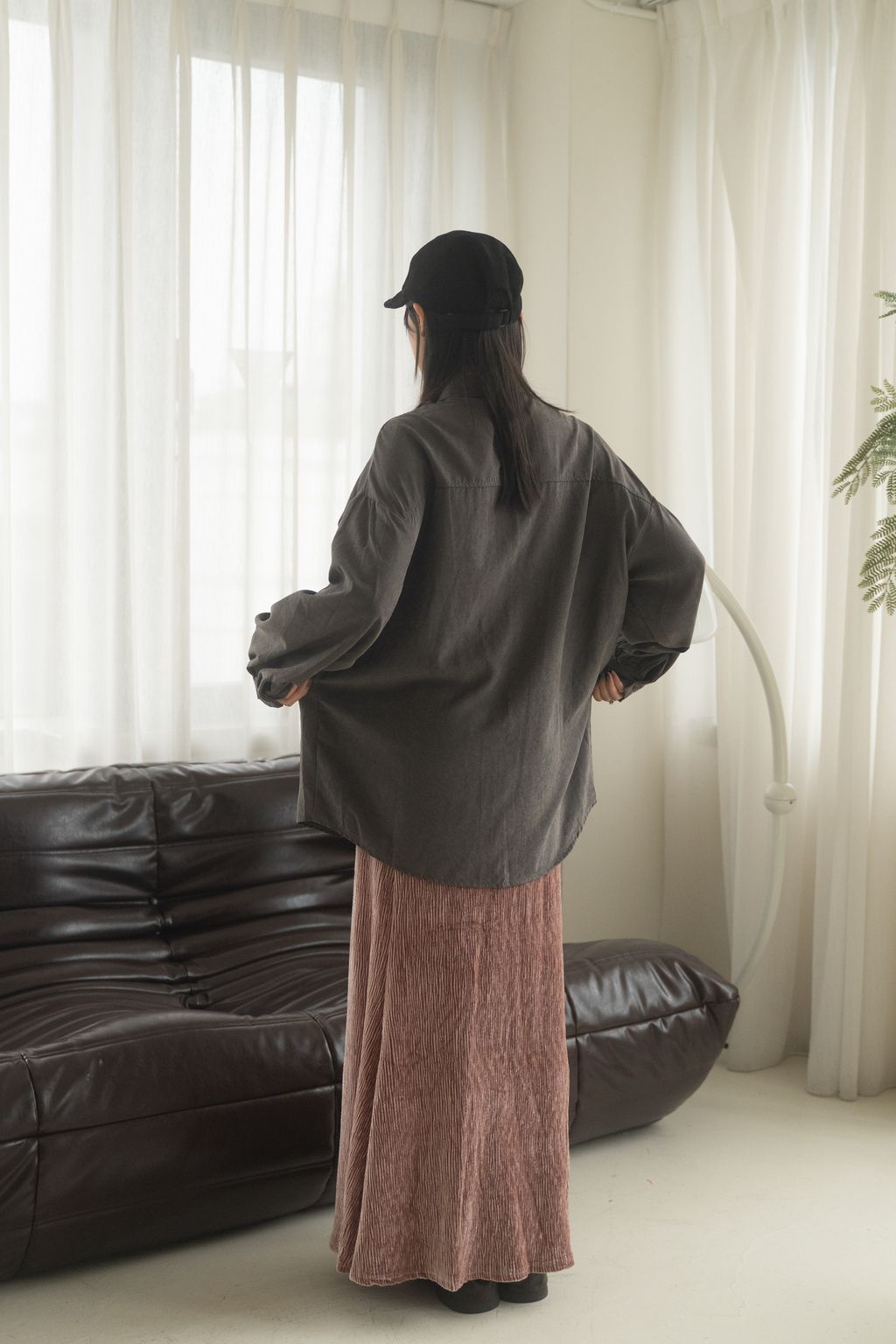 蜜桃絨水霧感襯衫 咖/灰