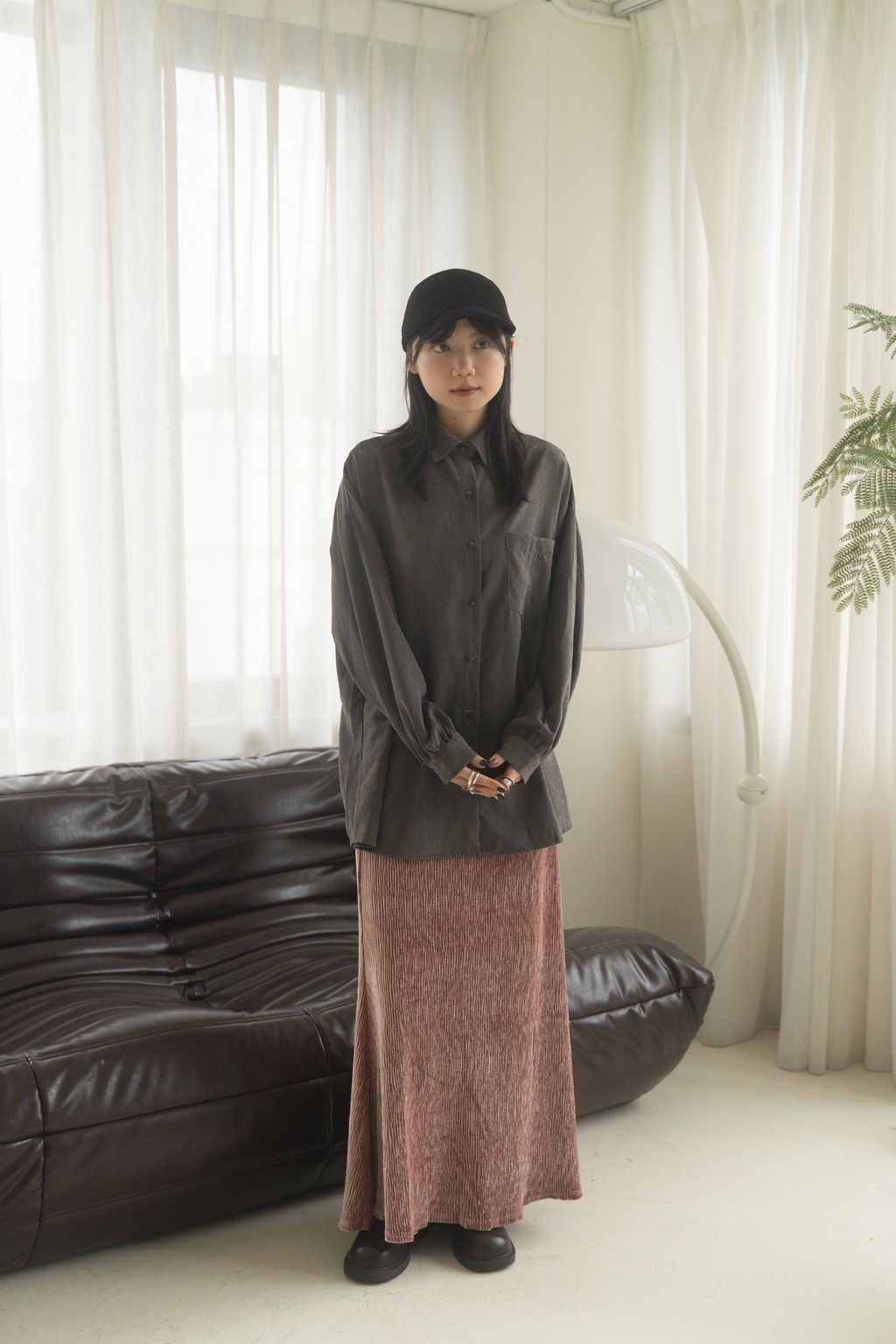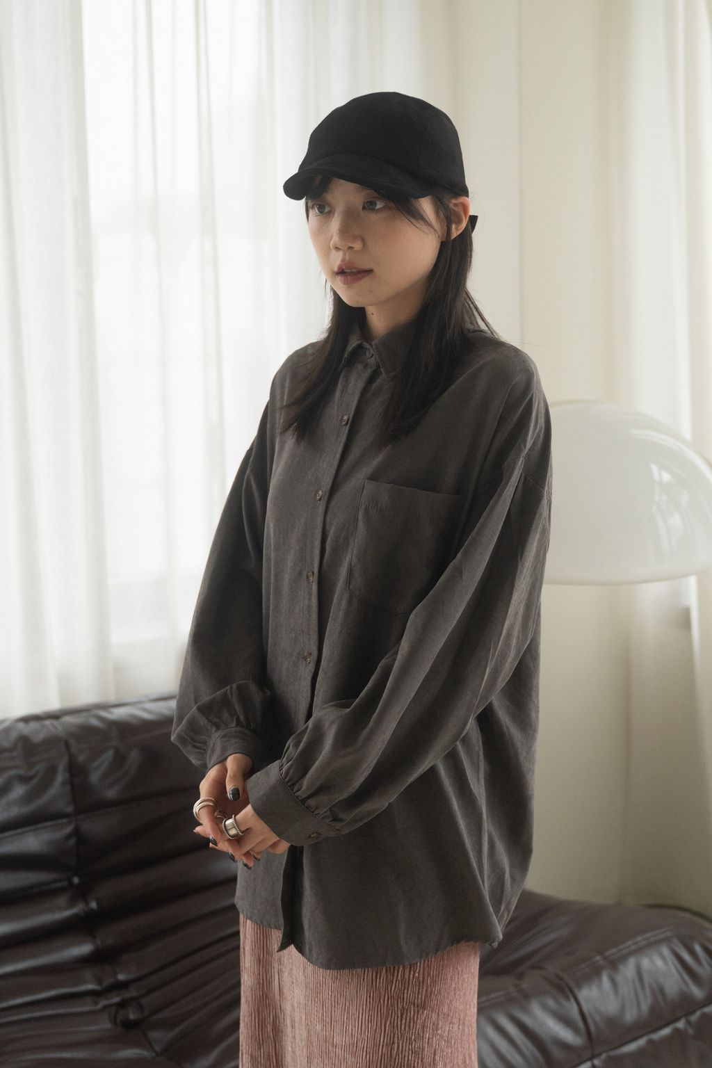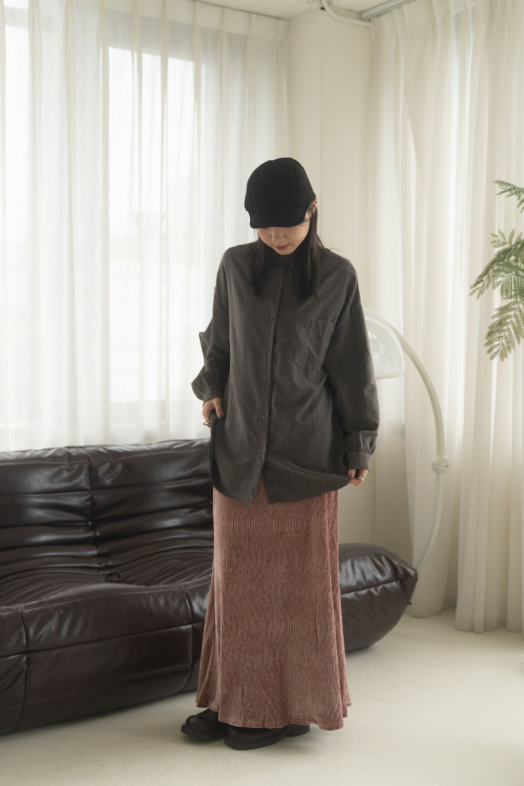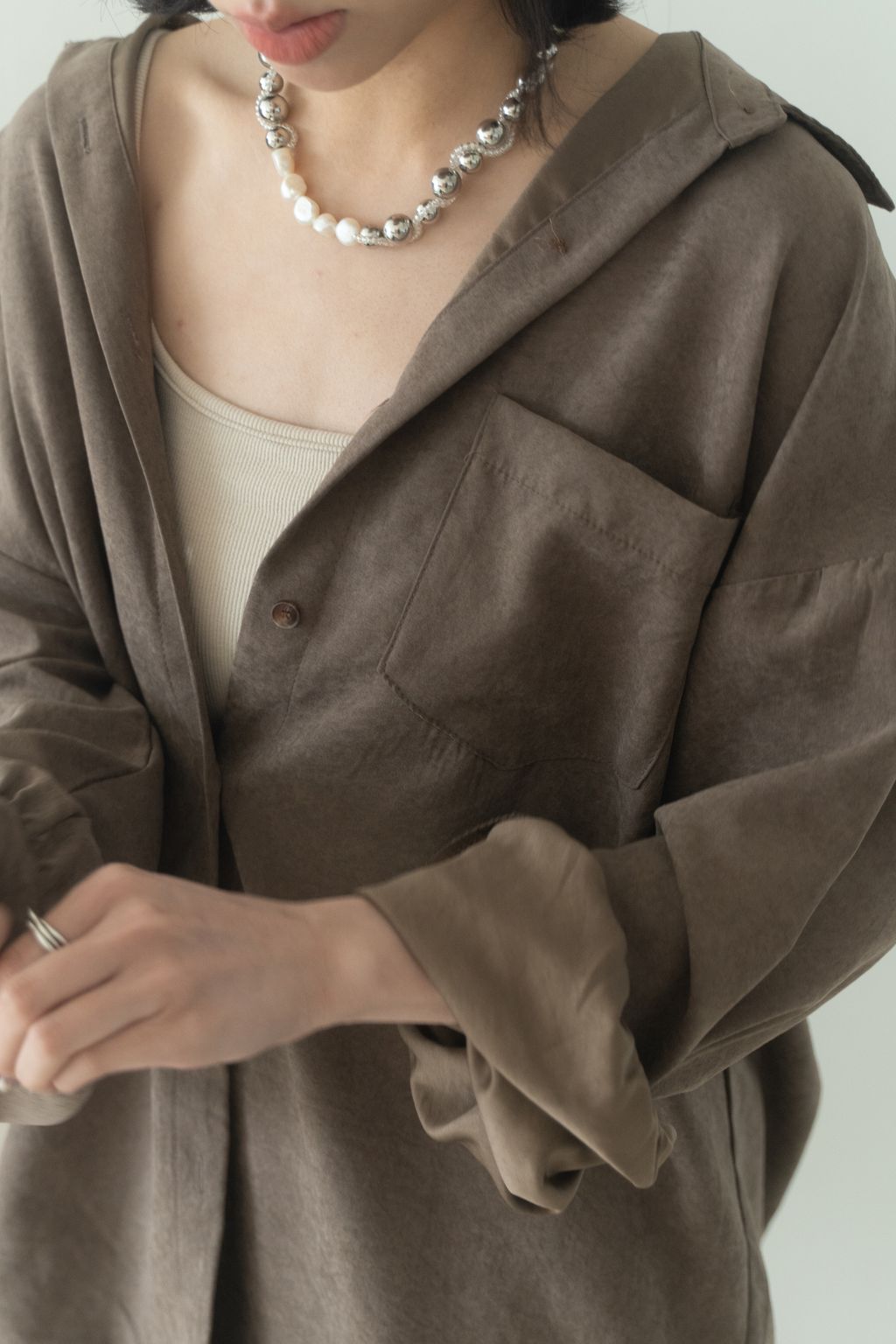 蜜桃絨水霧感襯衫 咖/灰