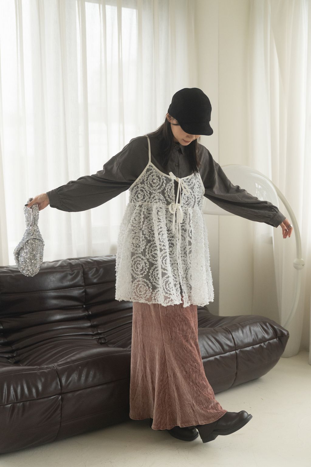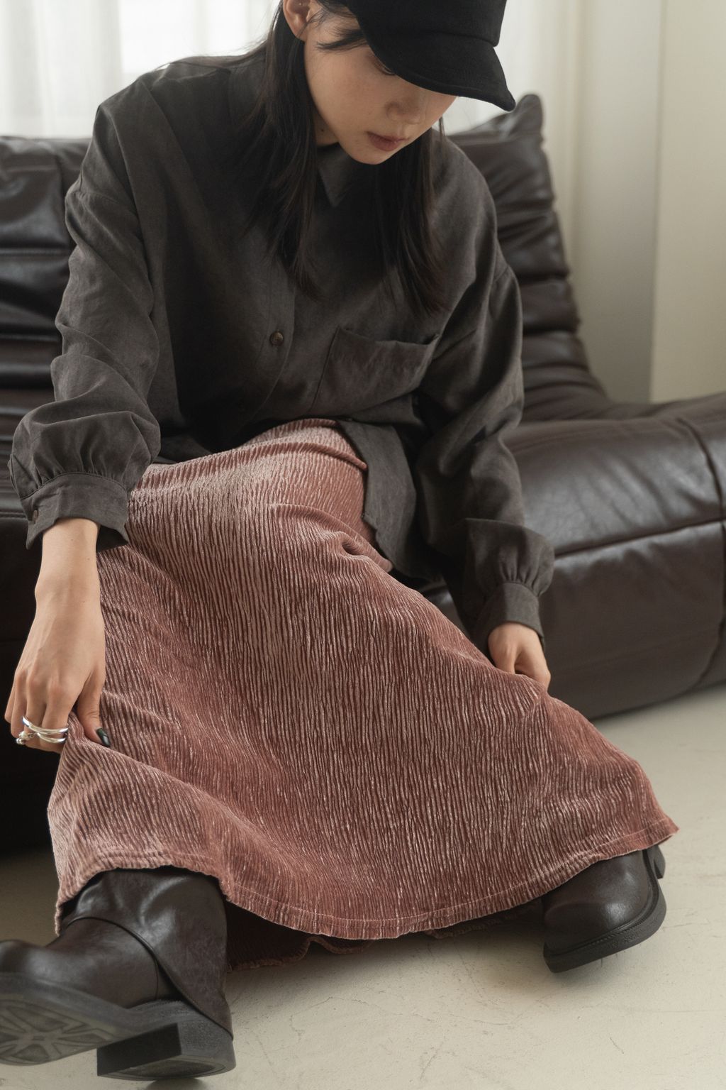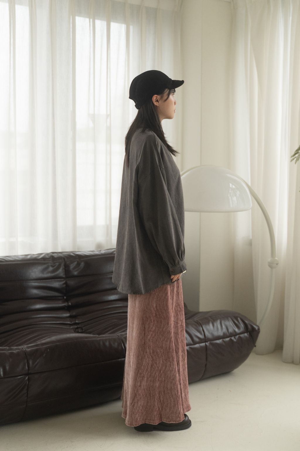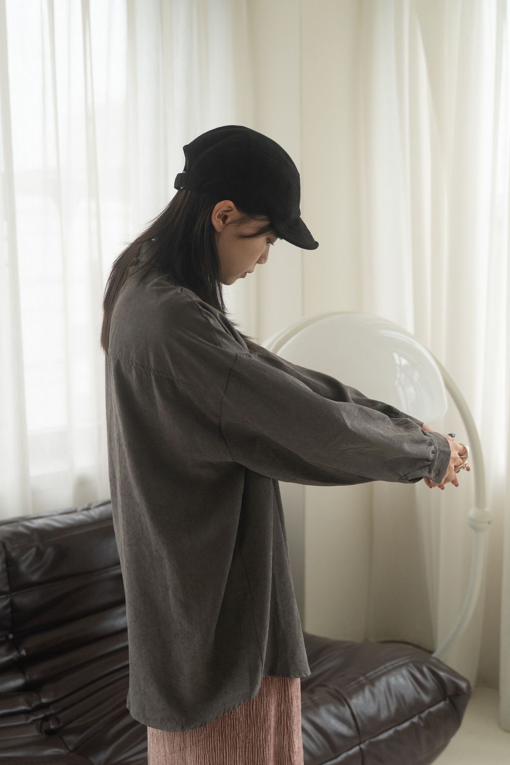 蜜桃絨水霧感襯衫 咖/灰