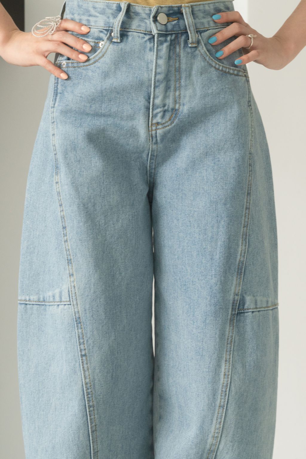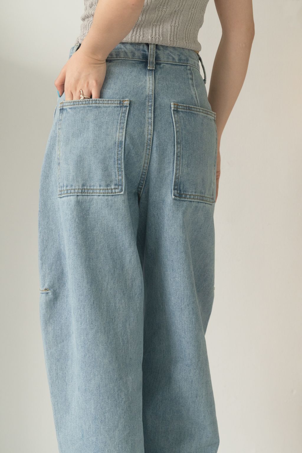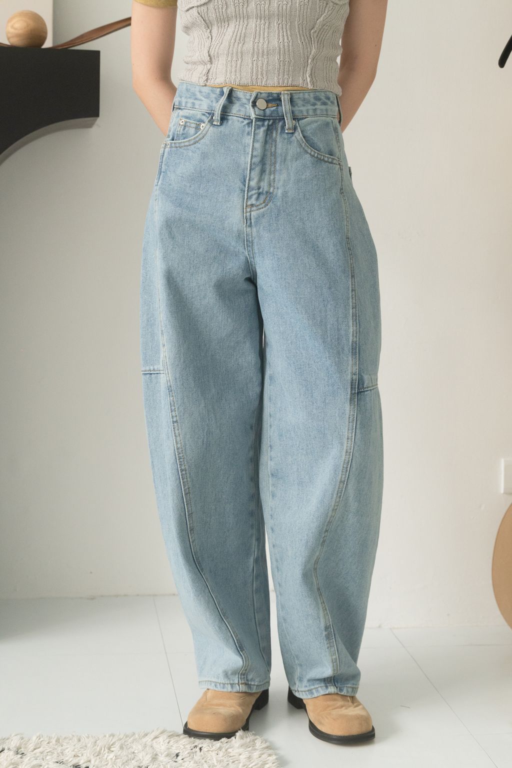 寶藏繭型線條牛仔褲 藍/黑 S/M/L