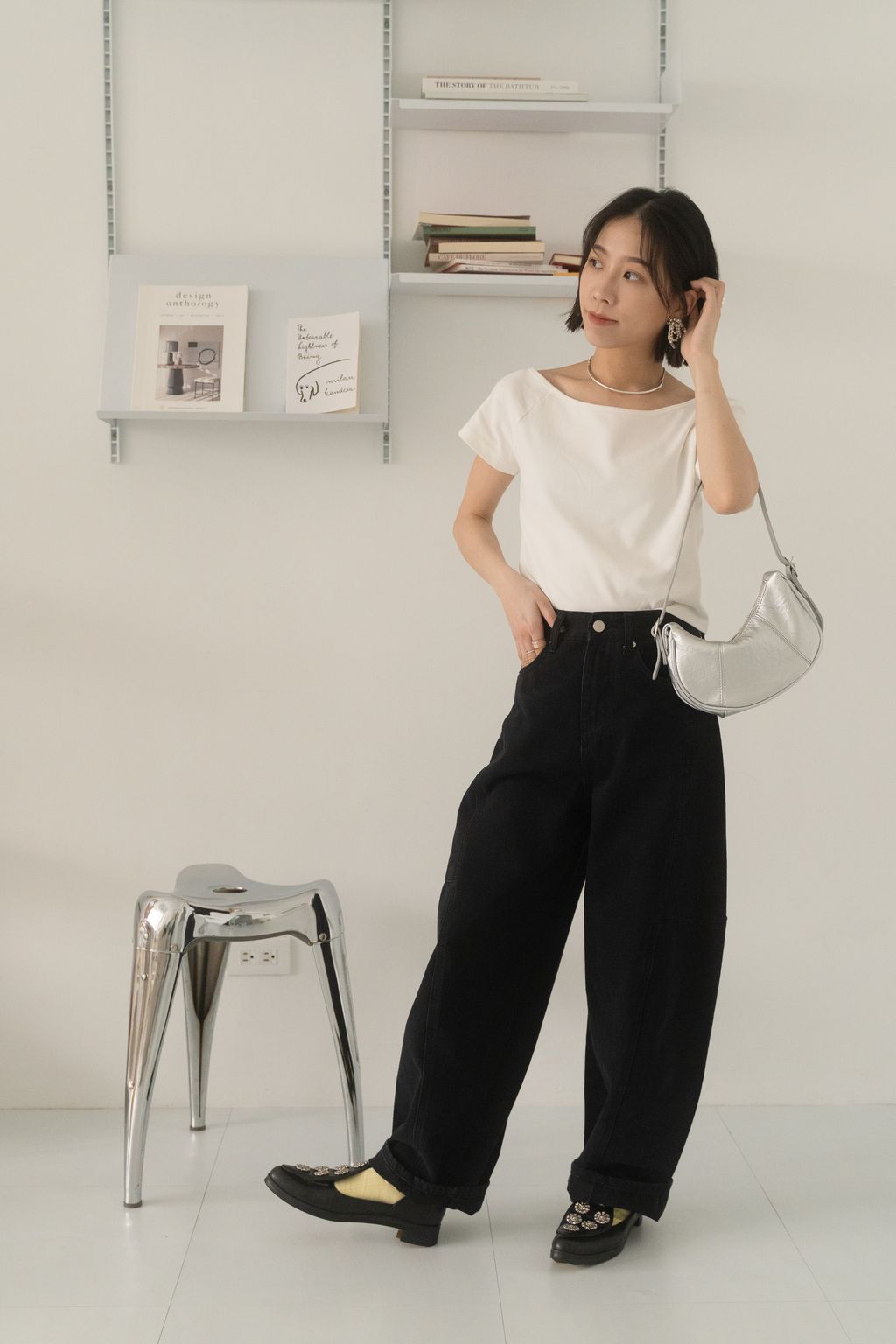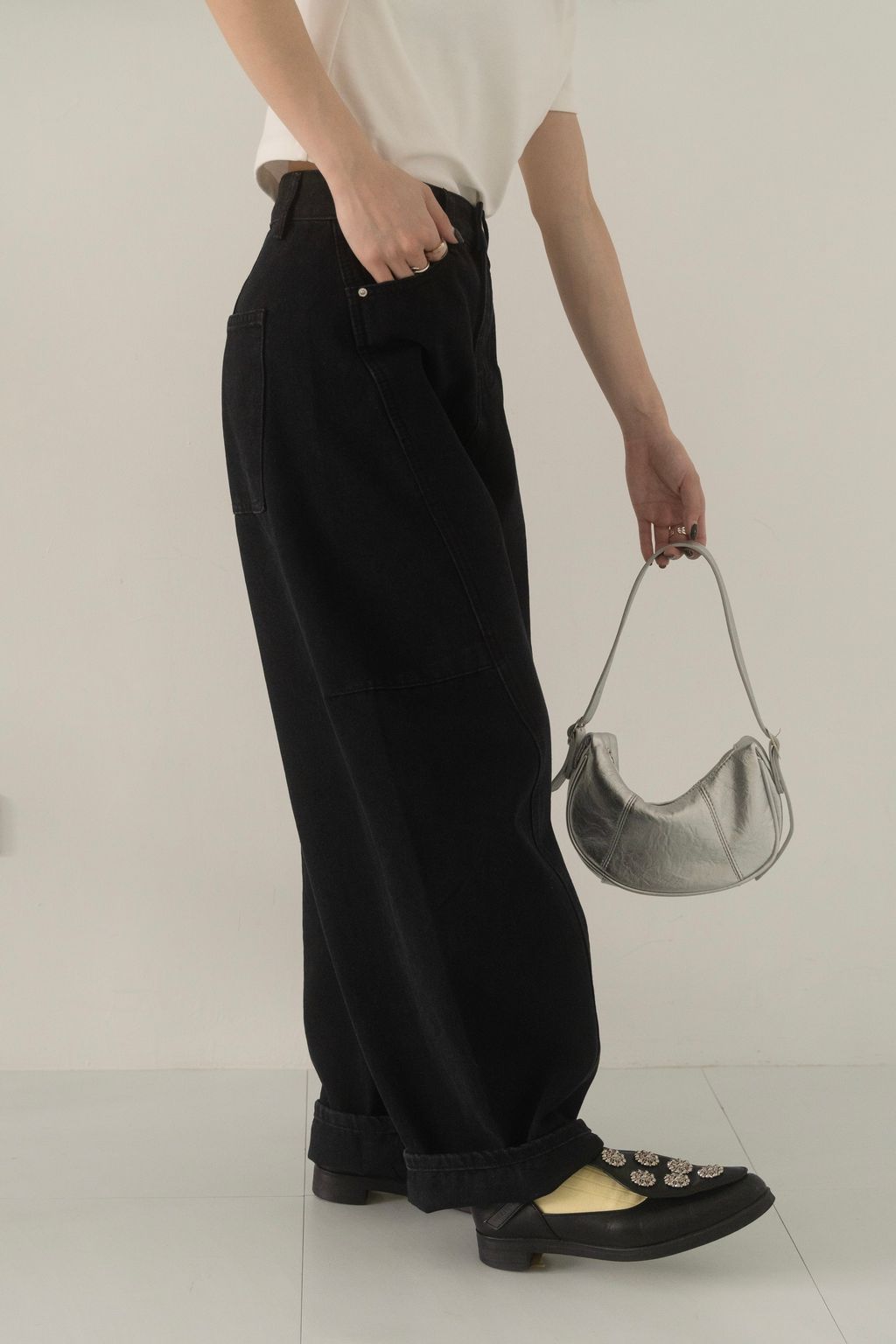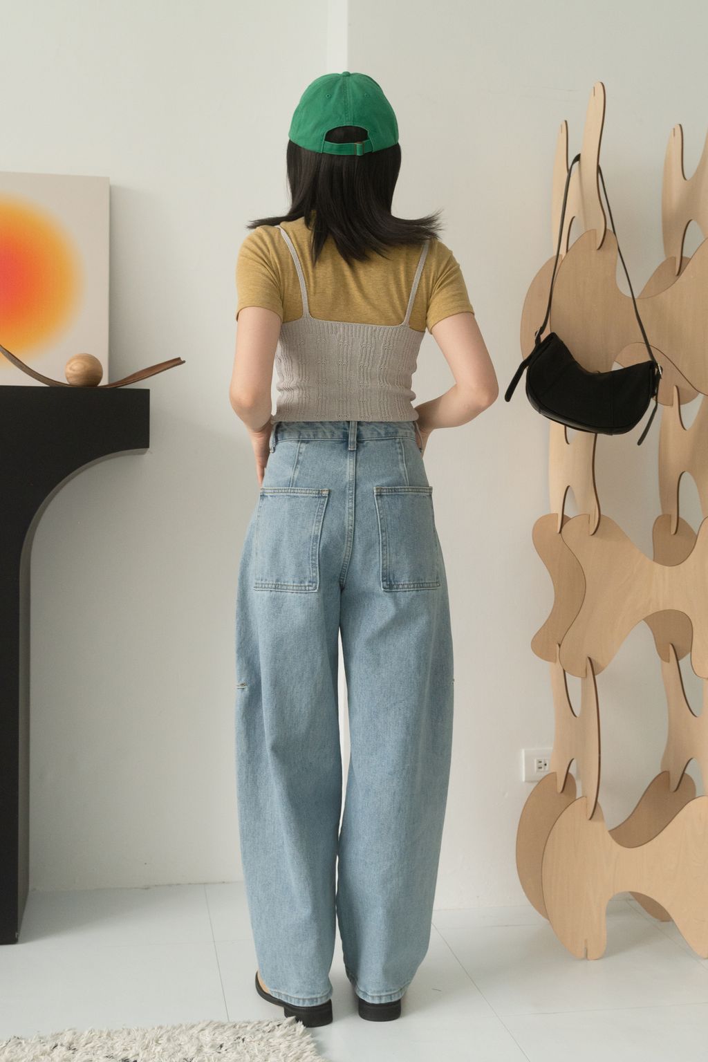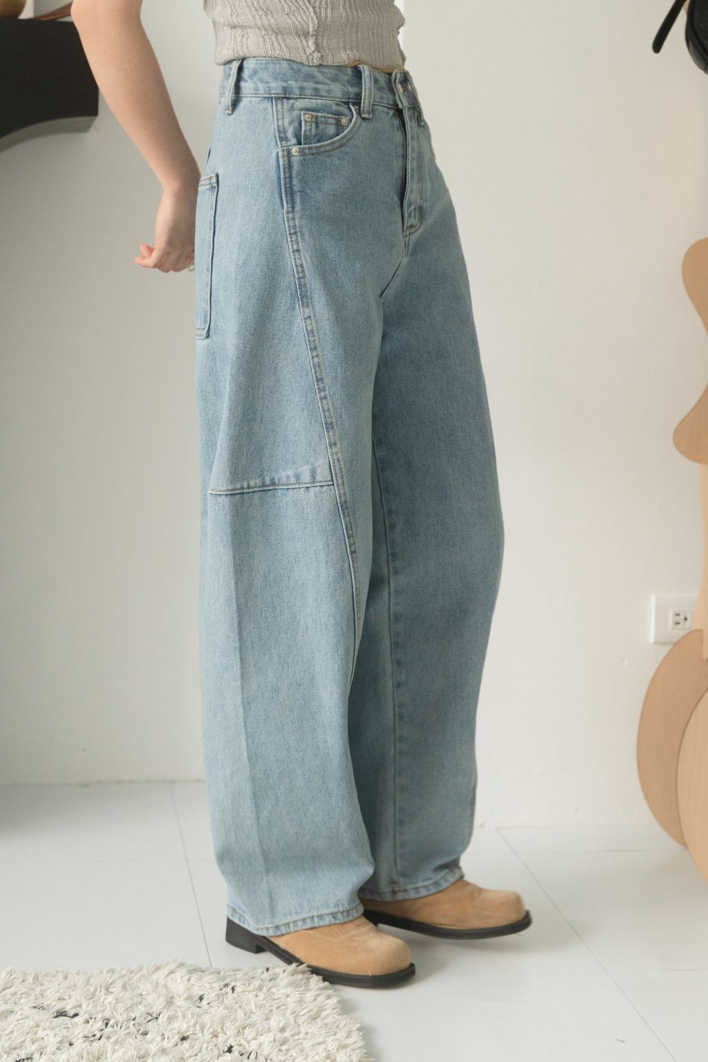 寶藏繭型線條牛仔褲 藍/黑 S/M/L