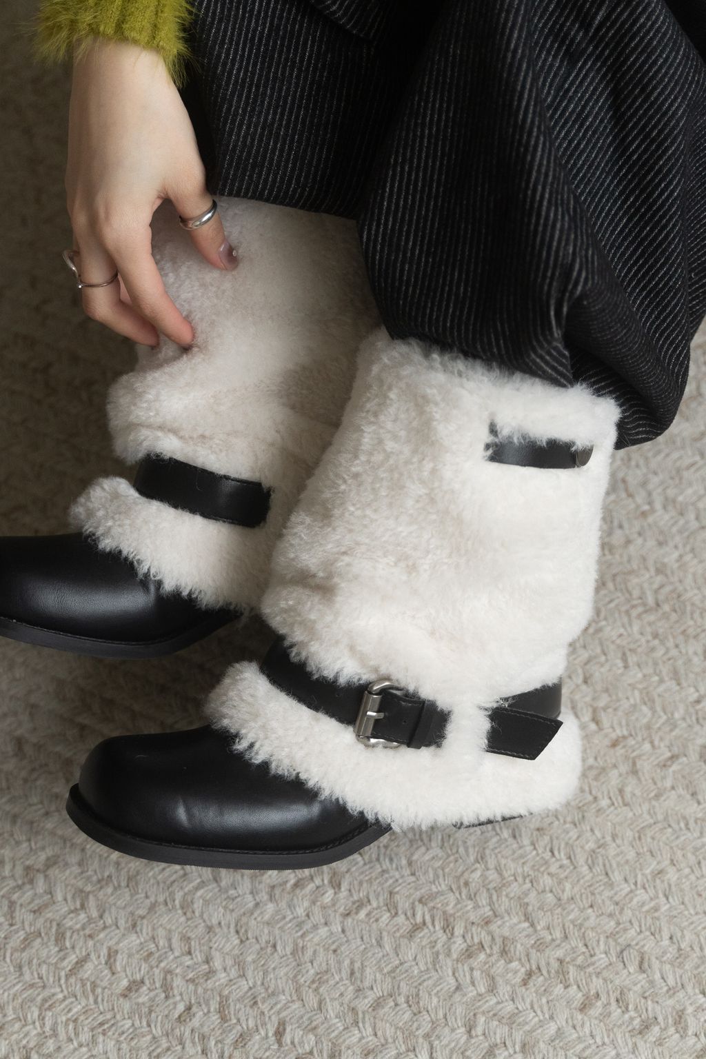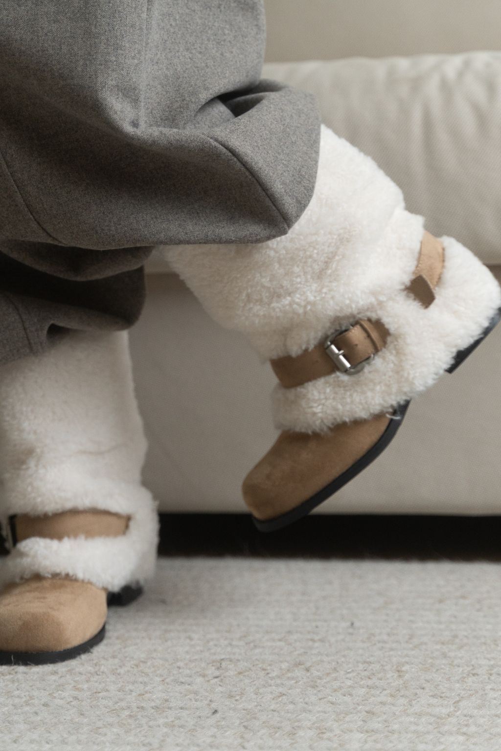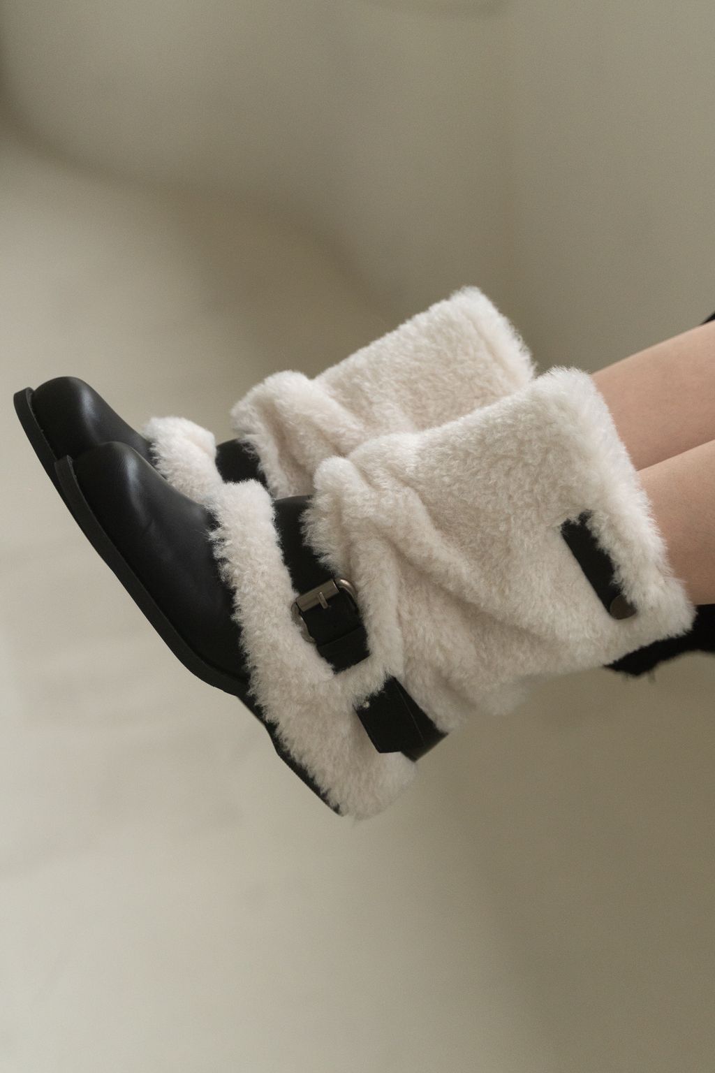 麋鹿腳中筒毛毛雪靴 黑/駝 22.5-24.5