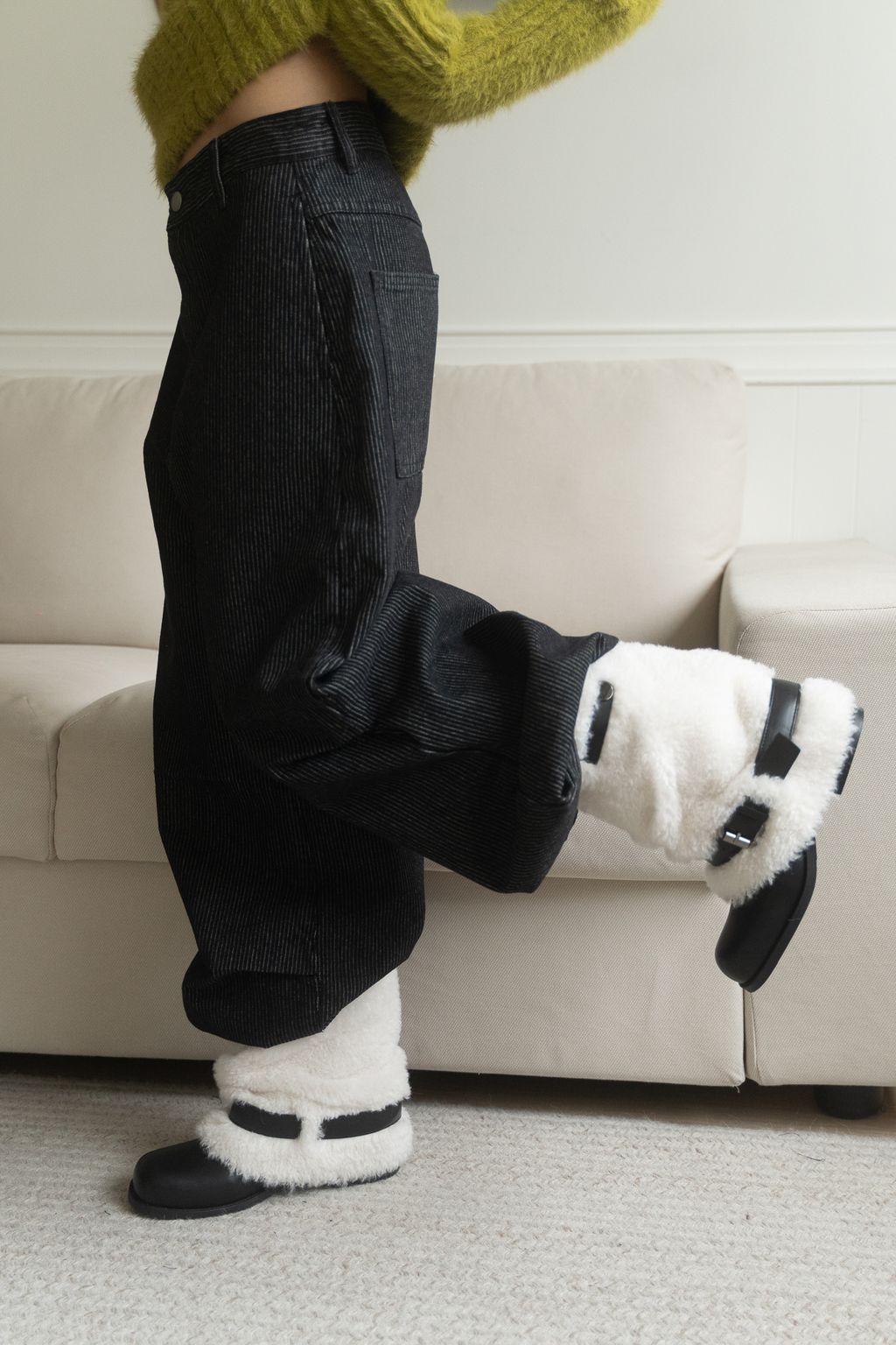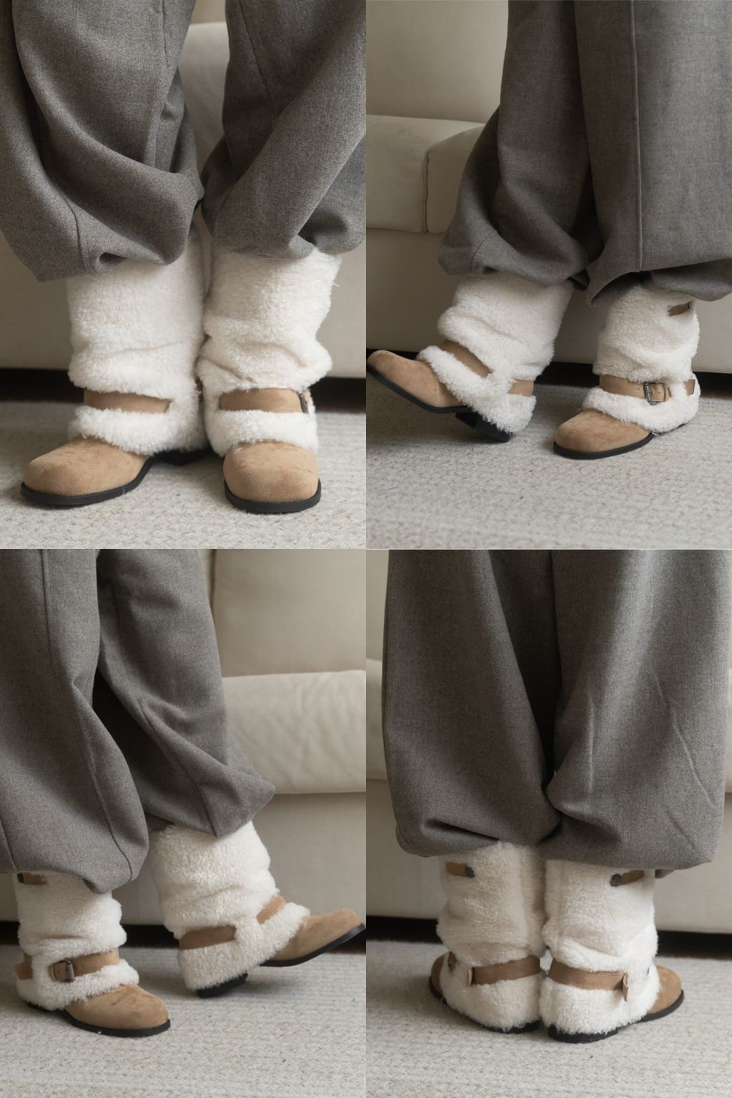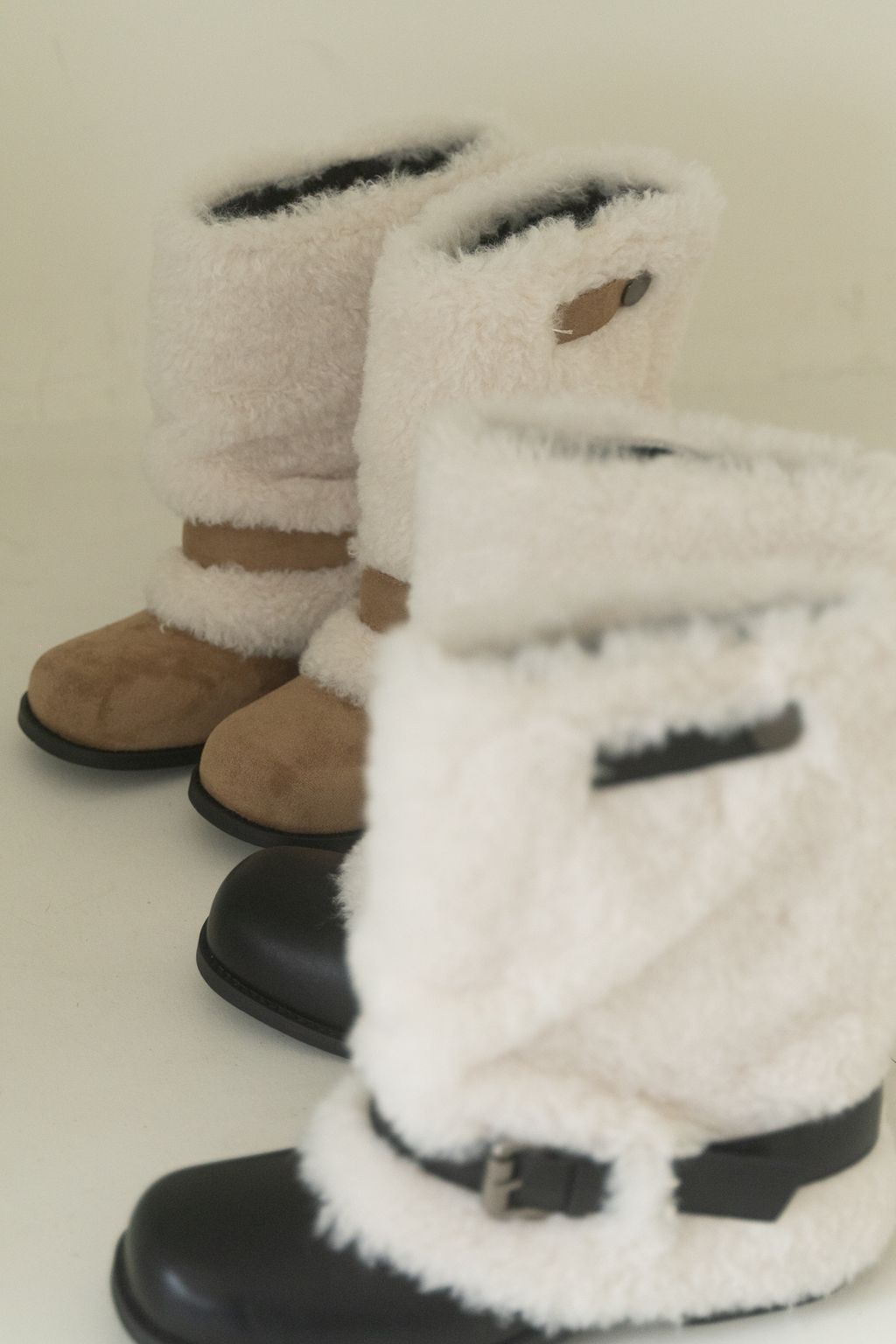 麋鹿腳中筒毛毛雪靴 黑/駝 22.5-24.5