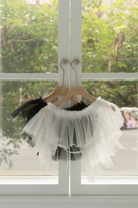 擠花綁帶罩裙 黑/杏