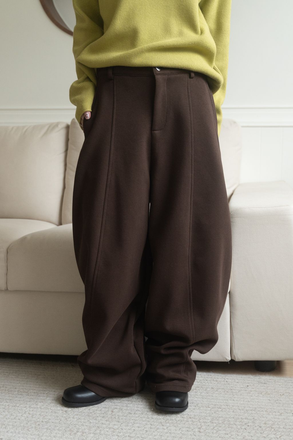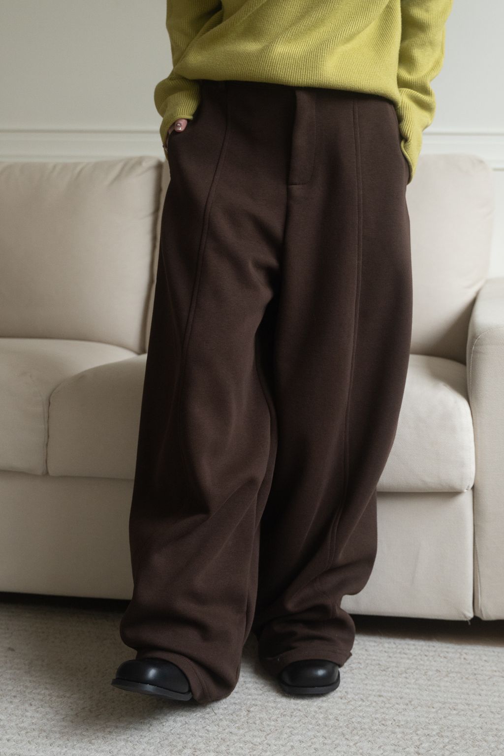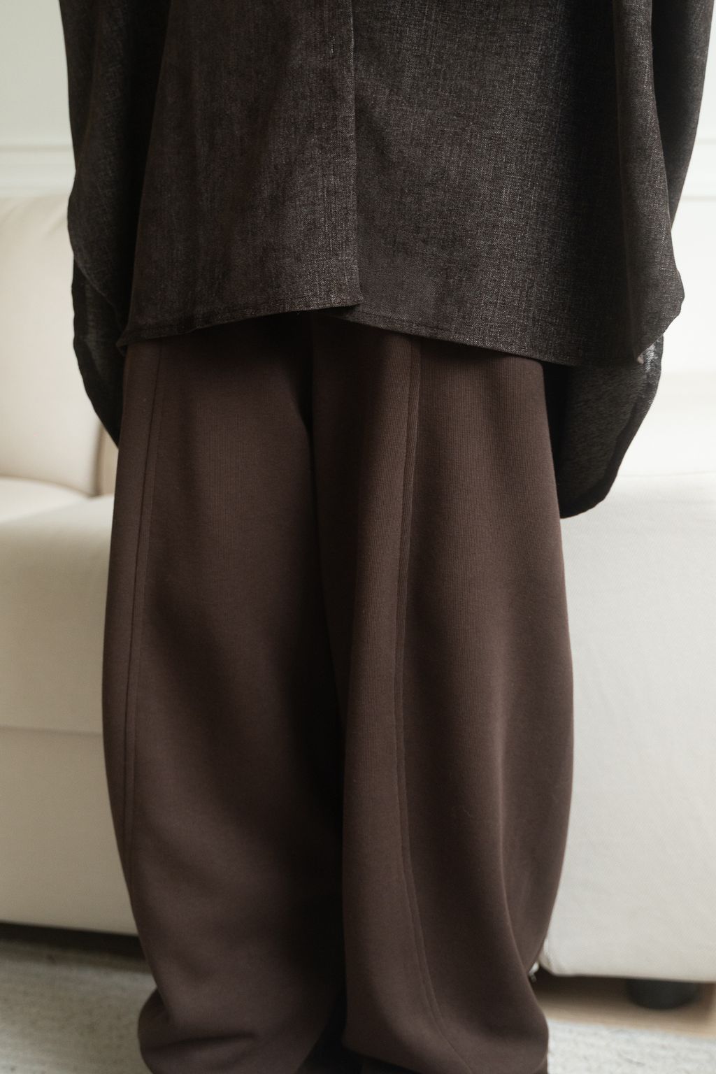 舒適升級厚磅繭型棉褲 咖啡/花灰