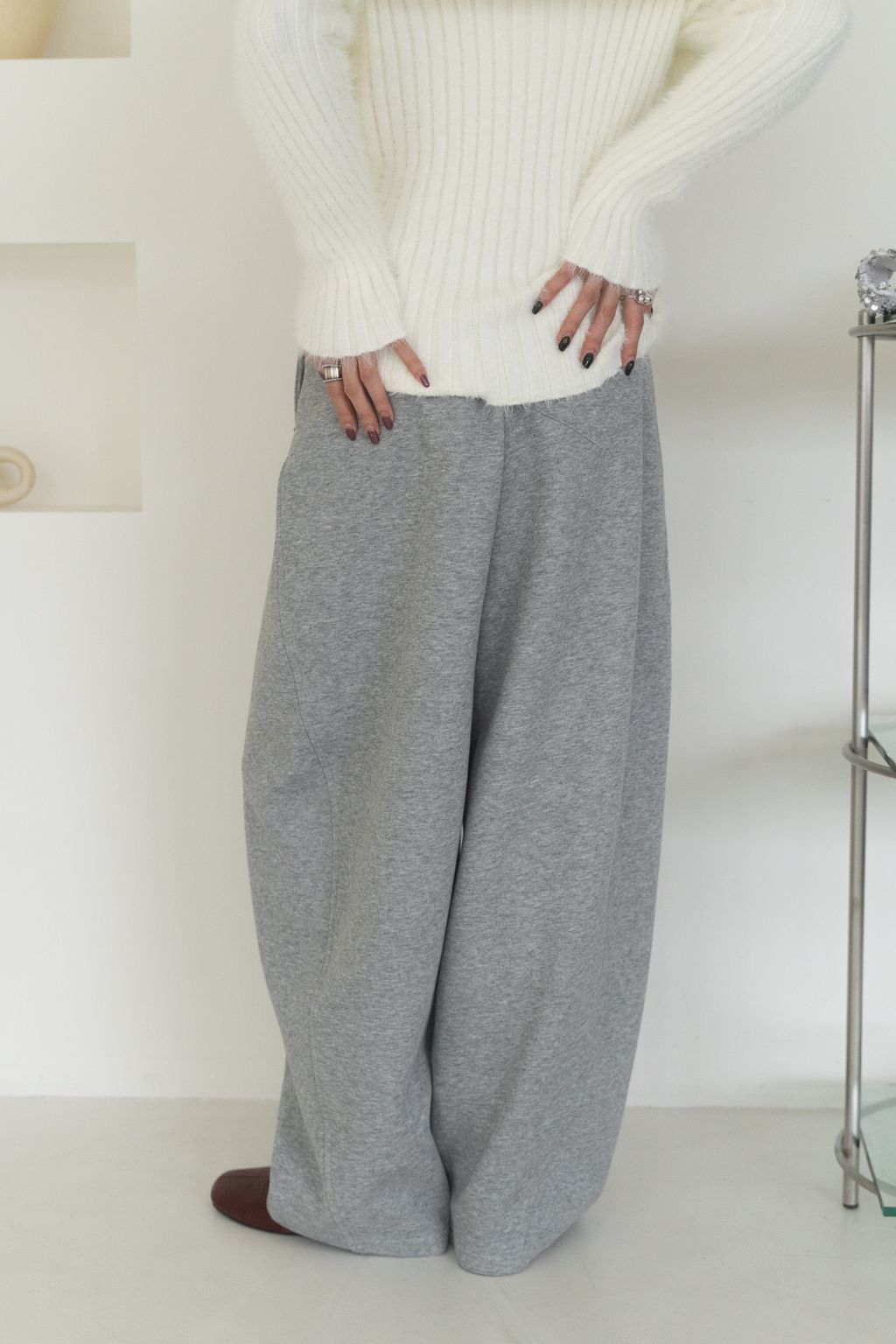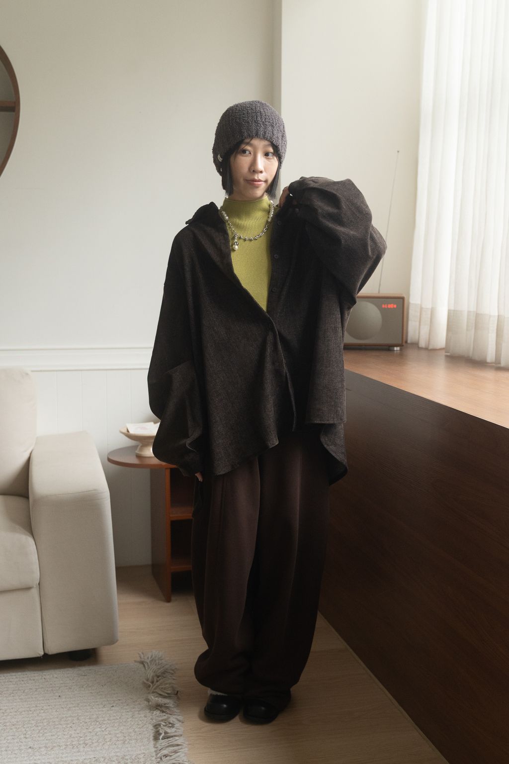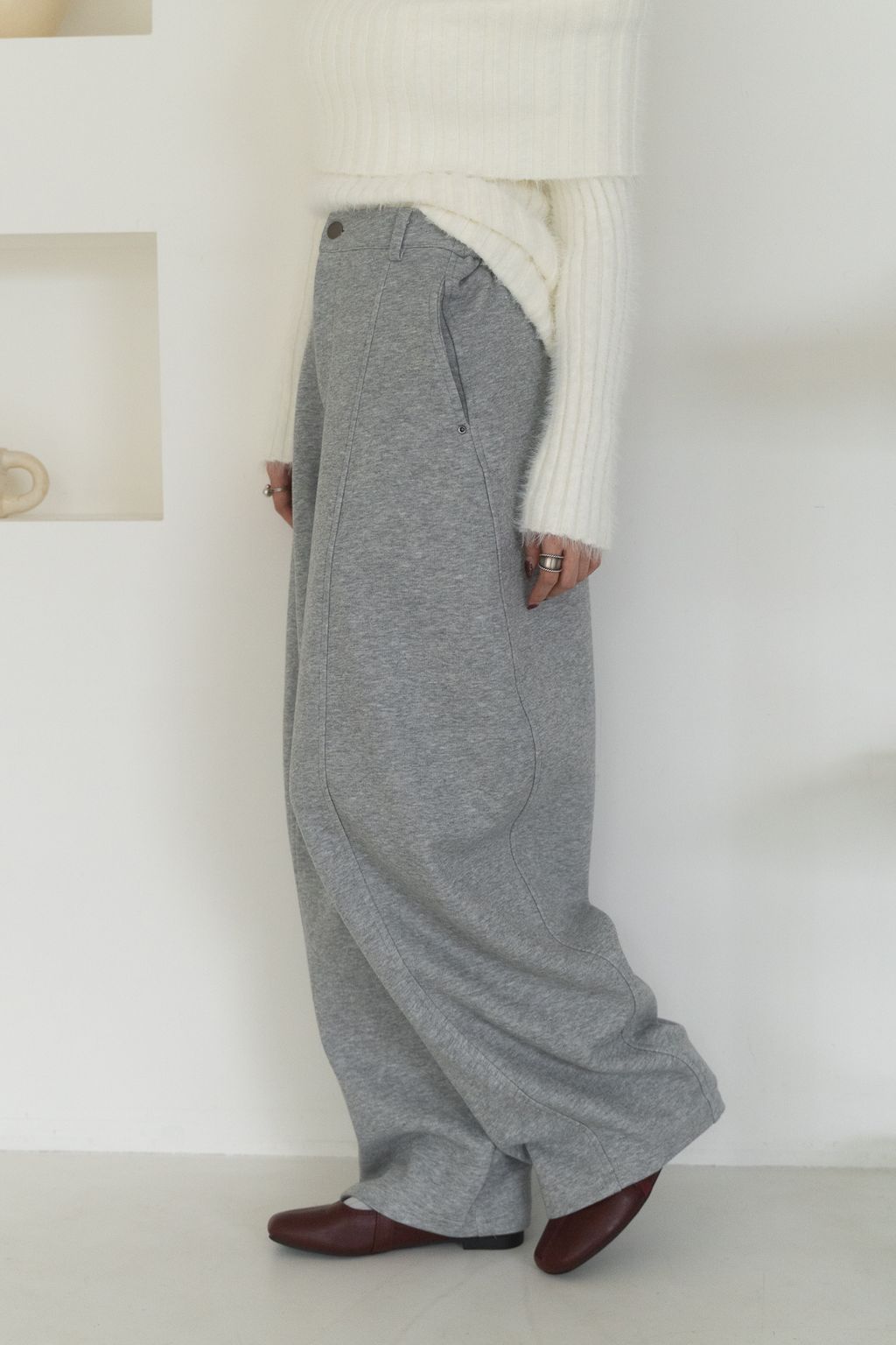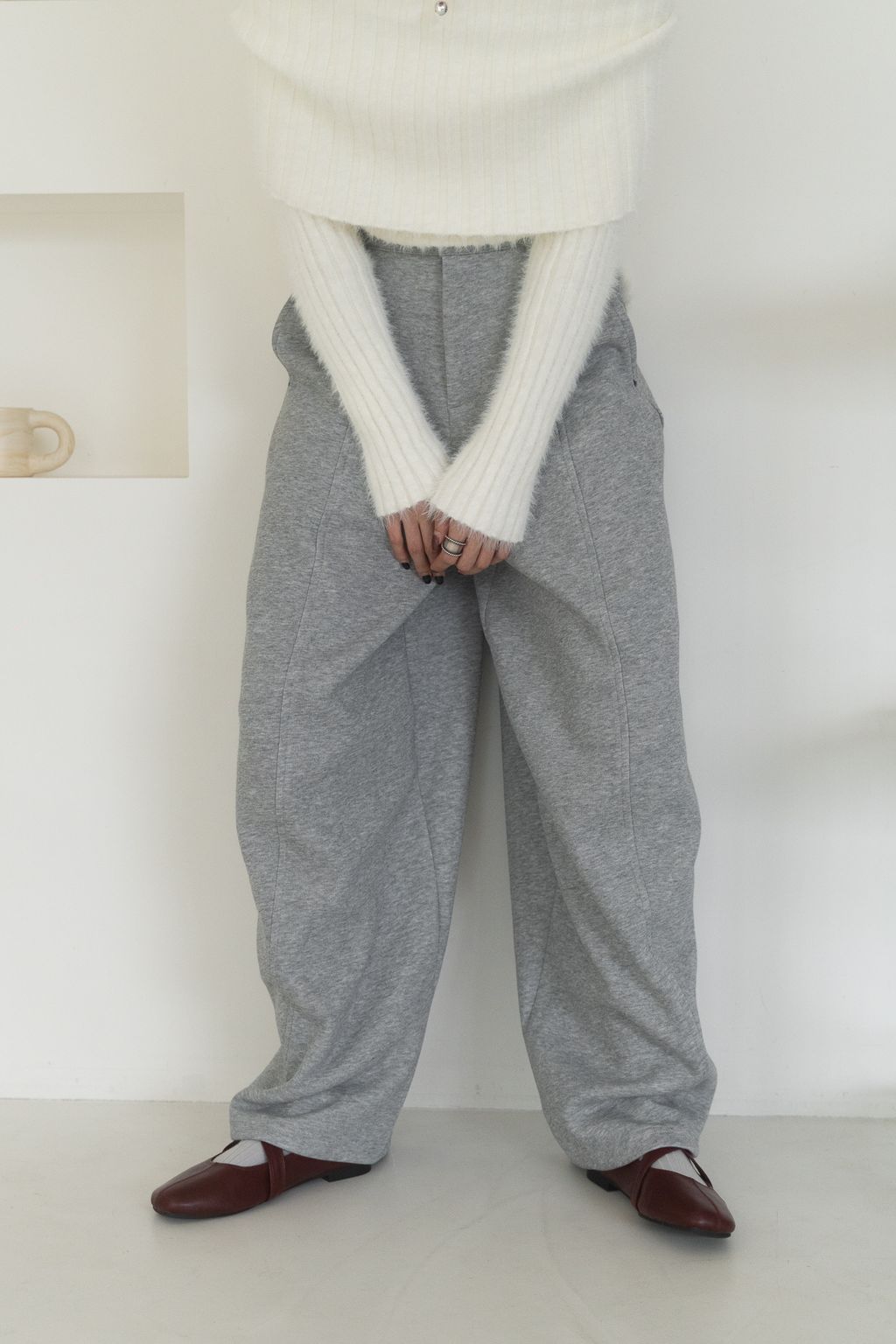 舒適升級厚磅繭型棉褲 咖啡/花灰