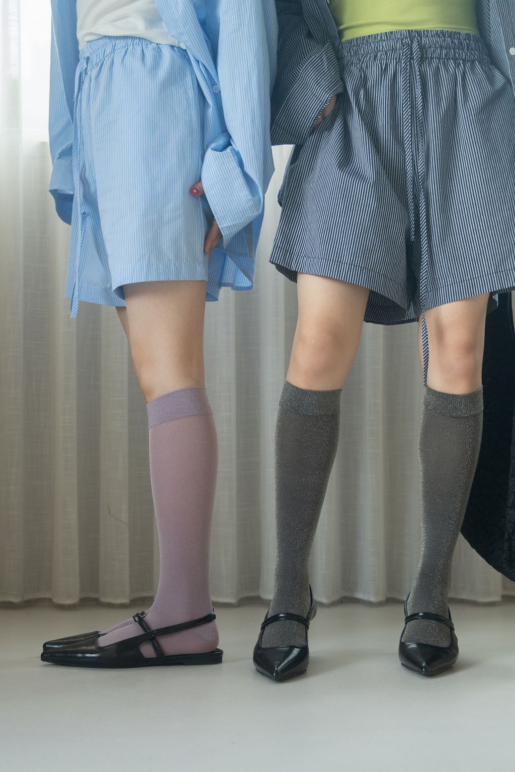銀河金蔥霧感長筒襪 黑灰/米香檳/青綠/紫
