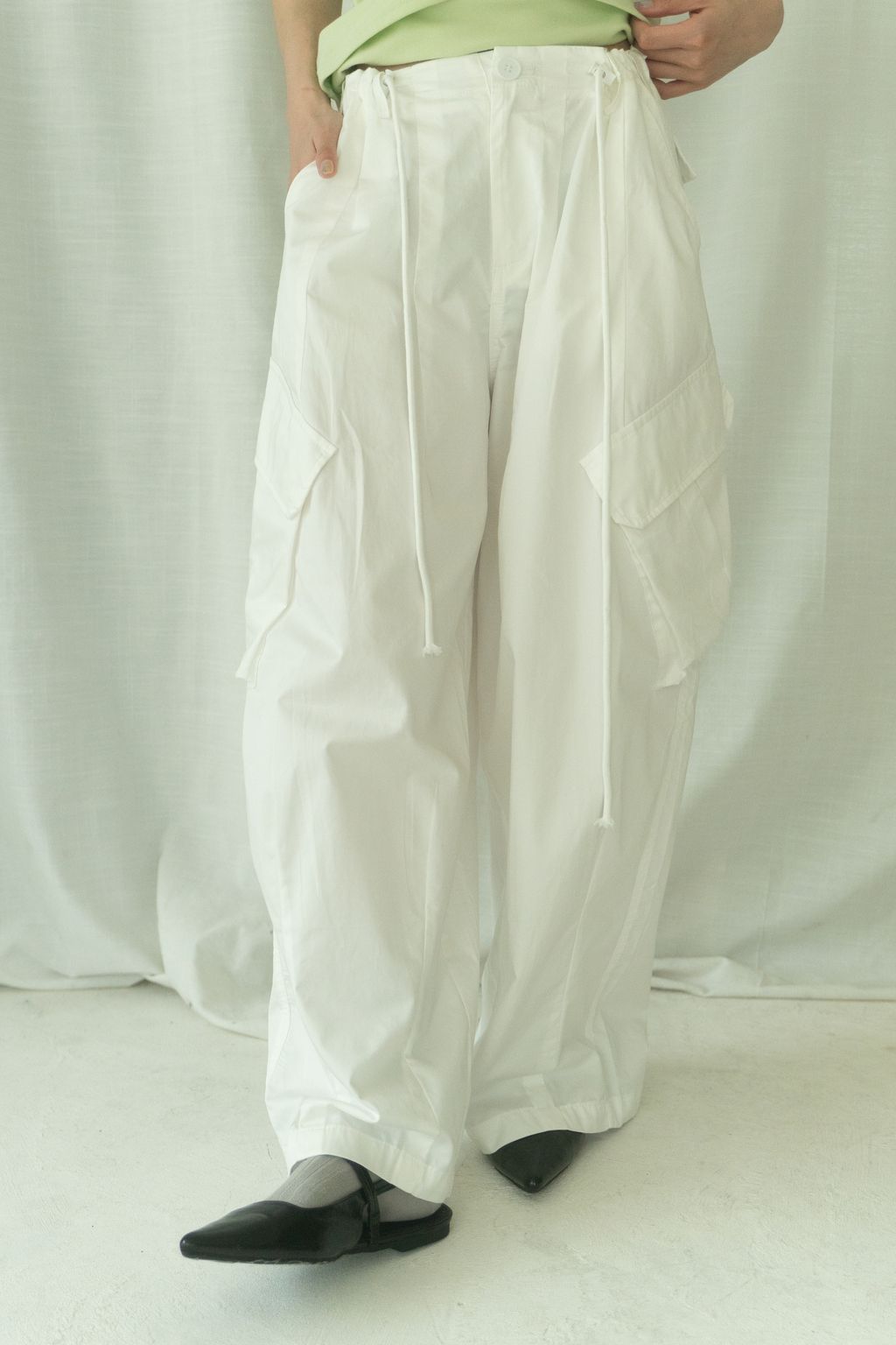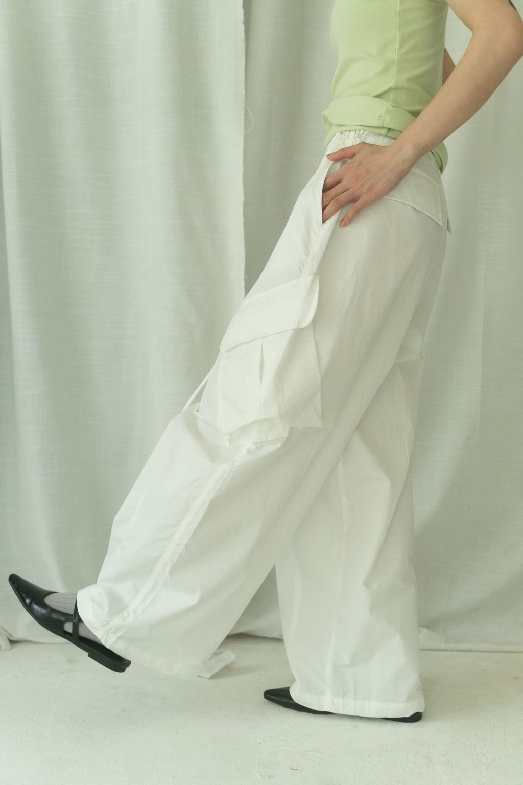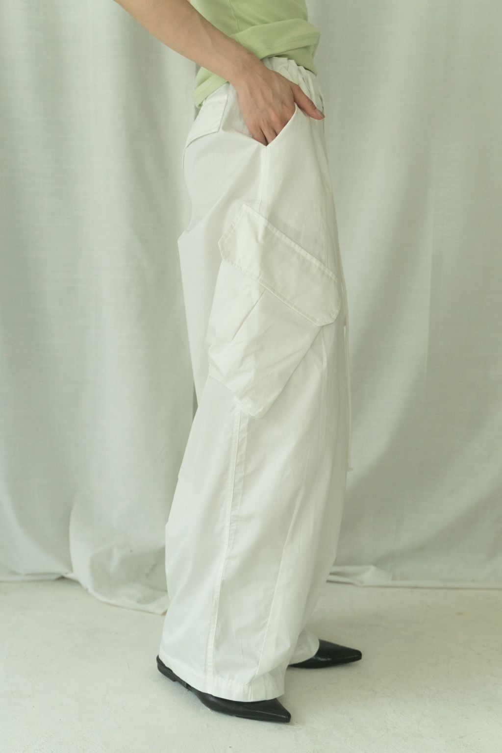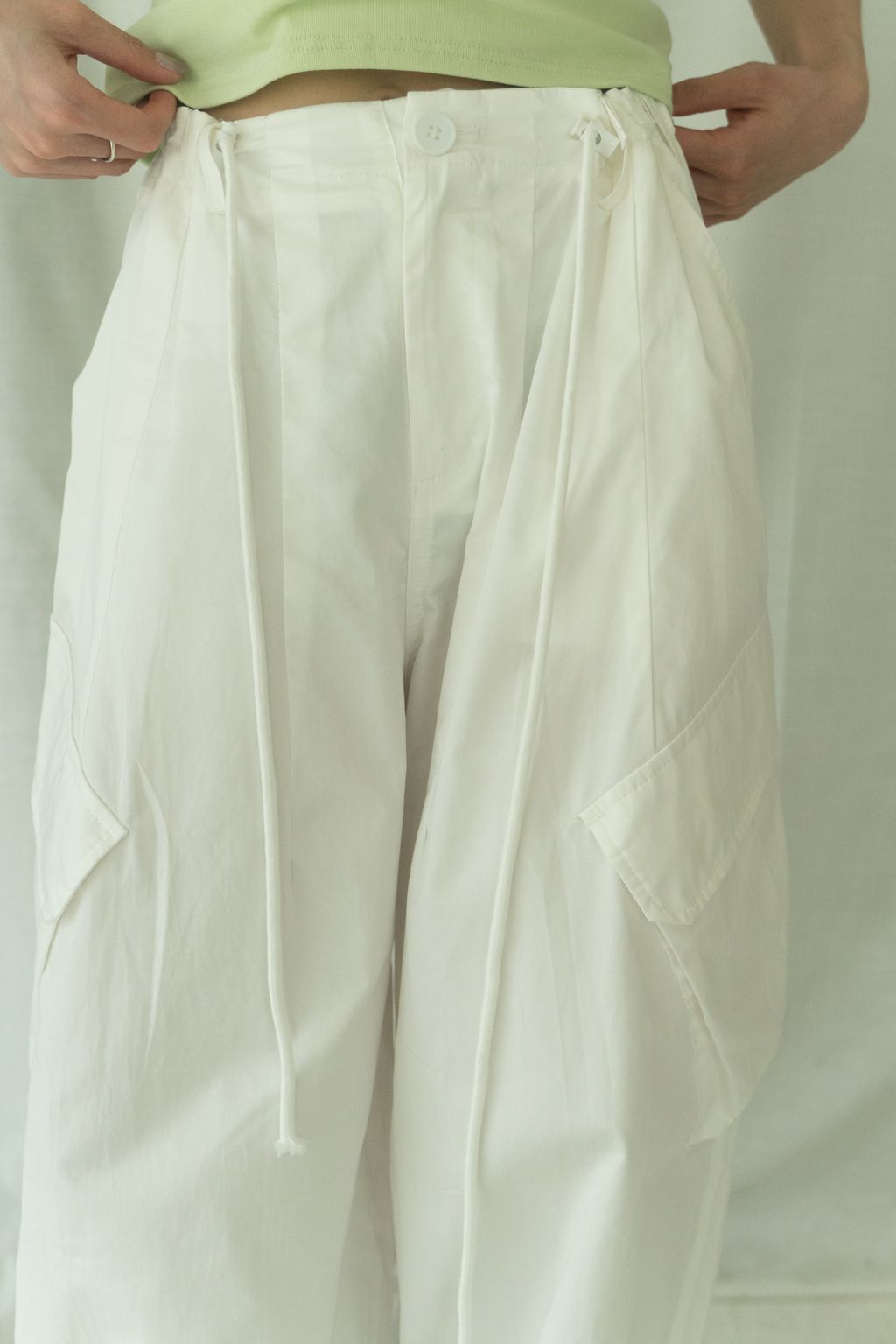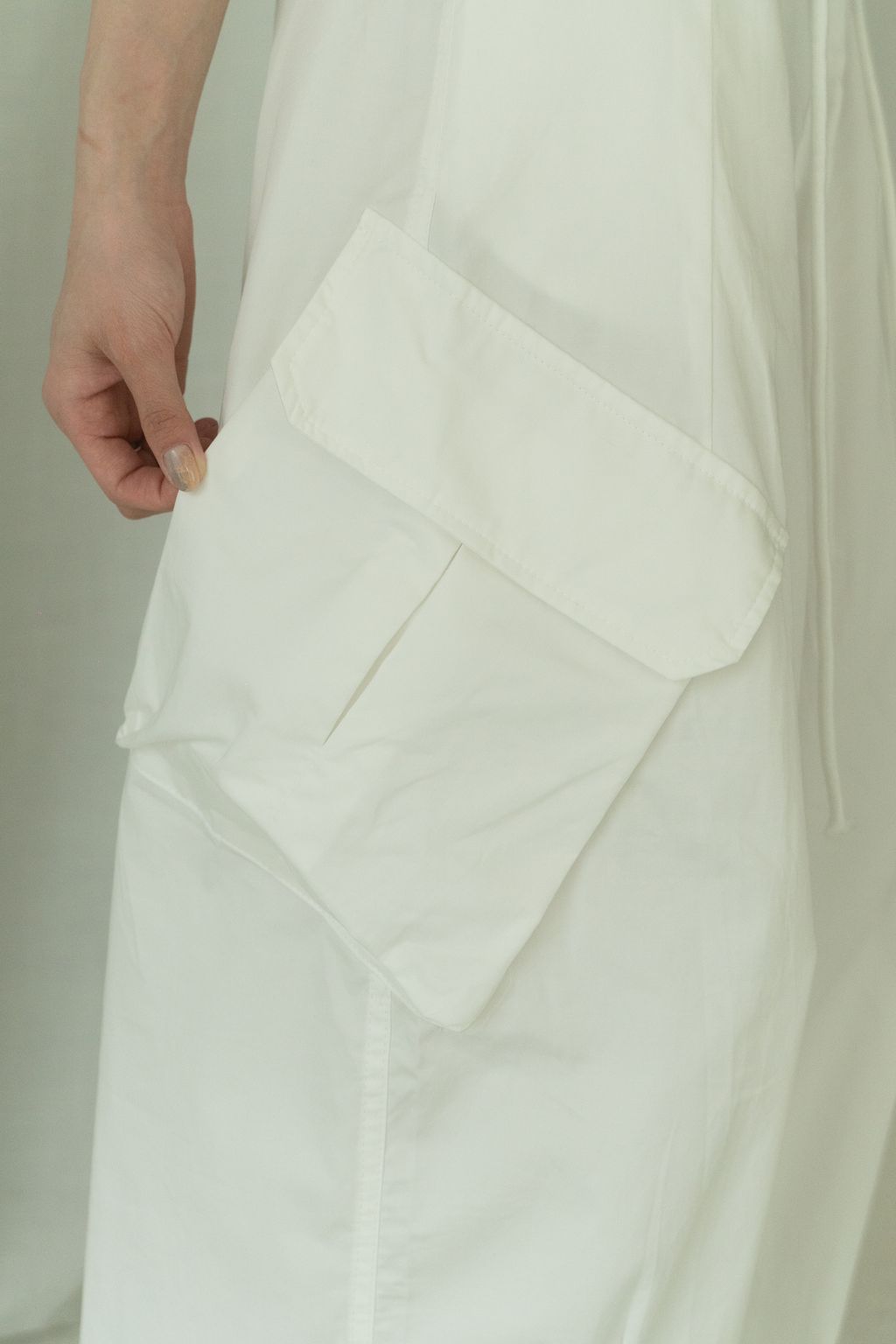 滑布挺版斜口袋工裝褲 白/卡其