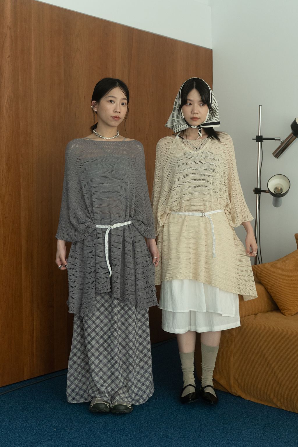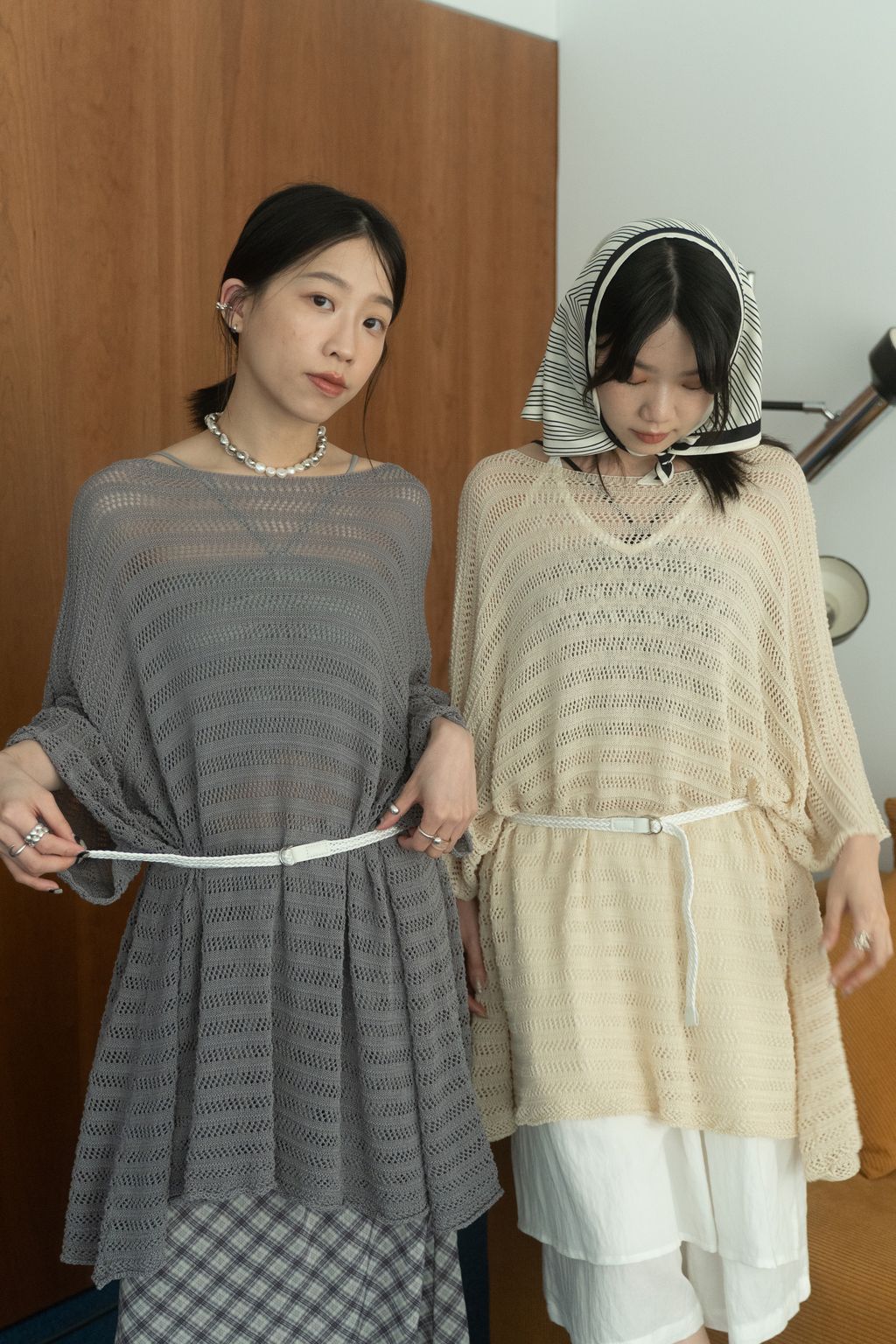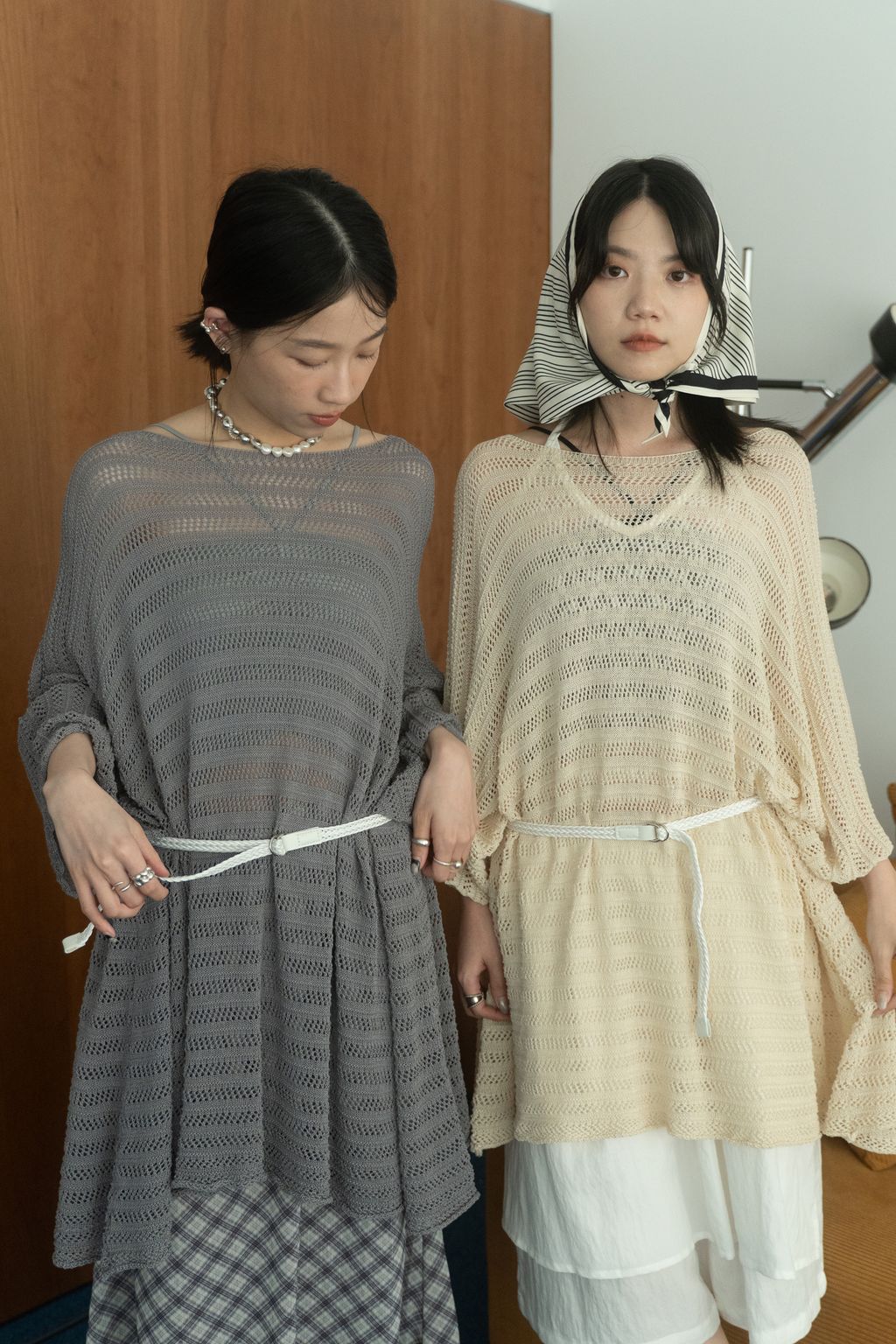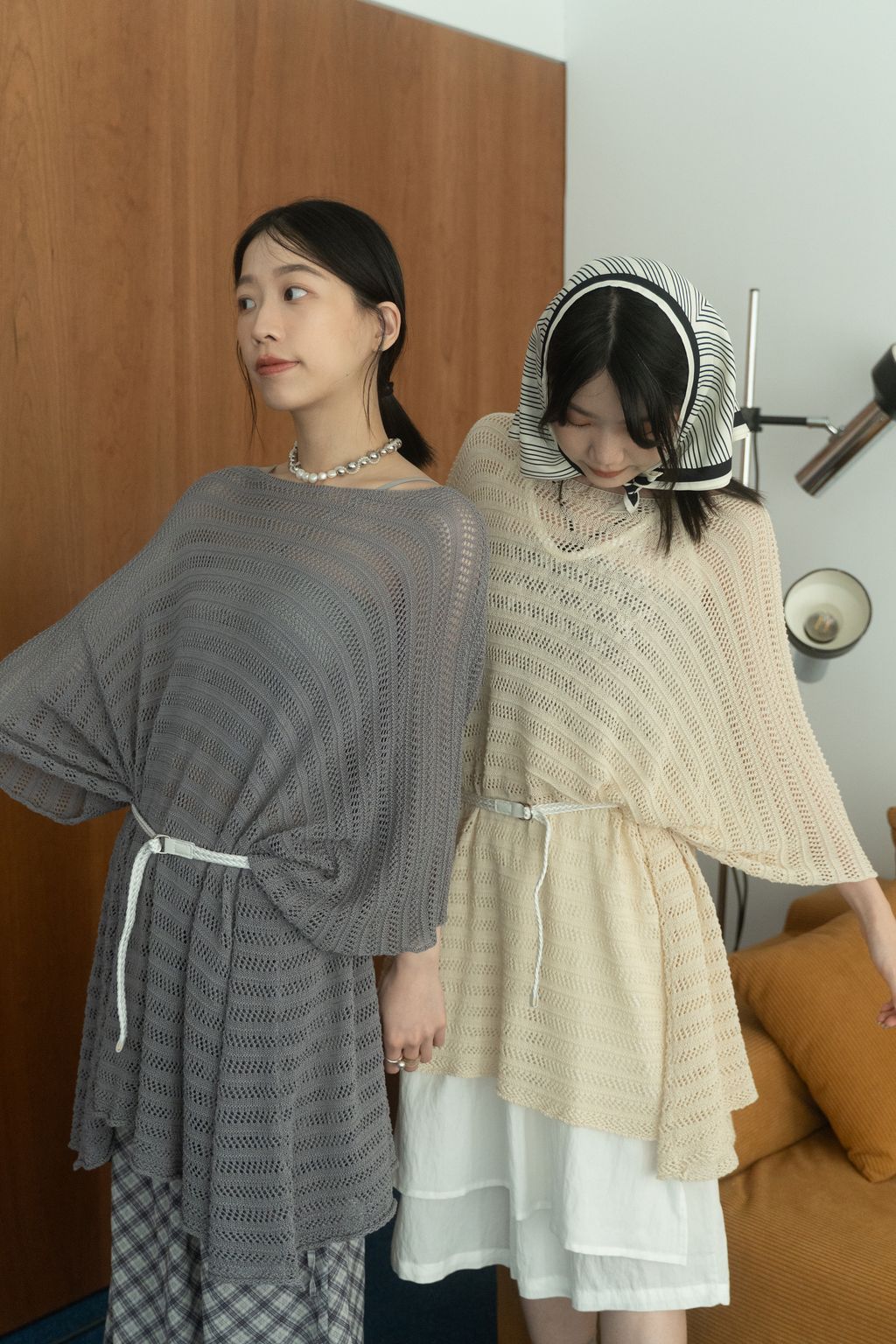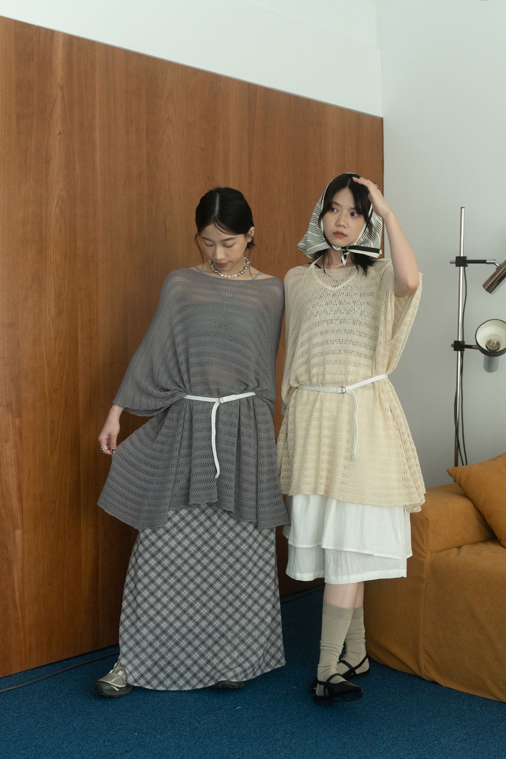垂墜連袖寬鬆針織衫(附腰帶)杏/灰