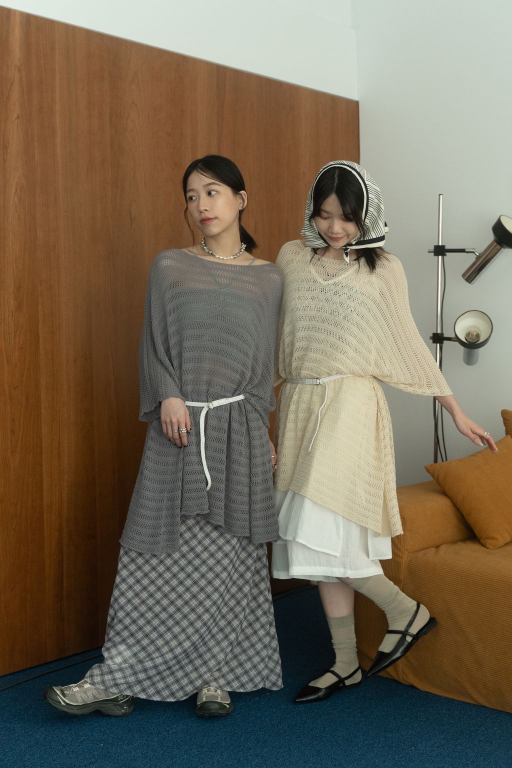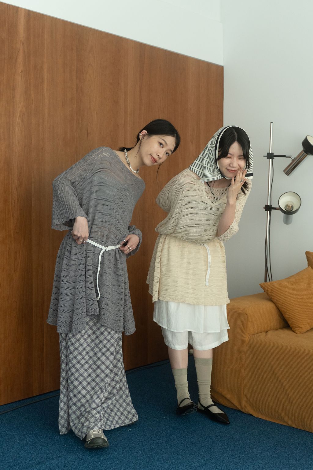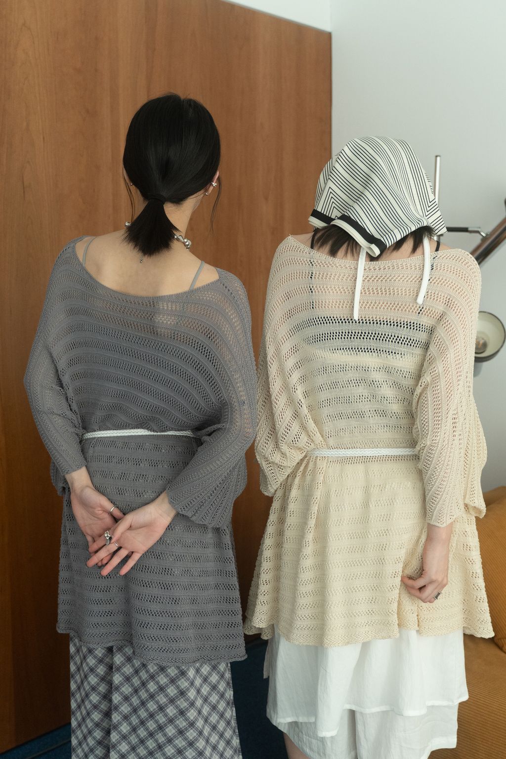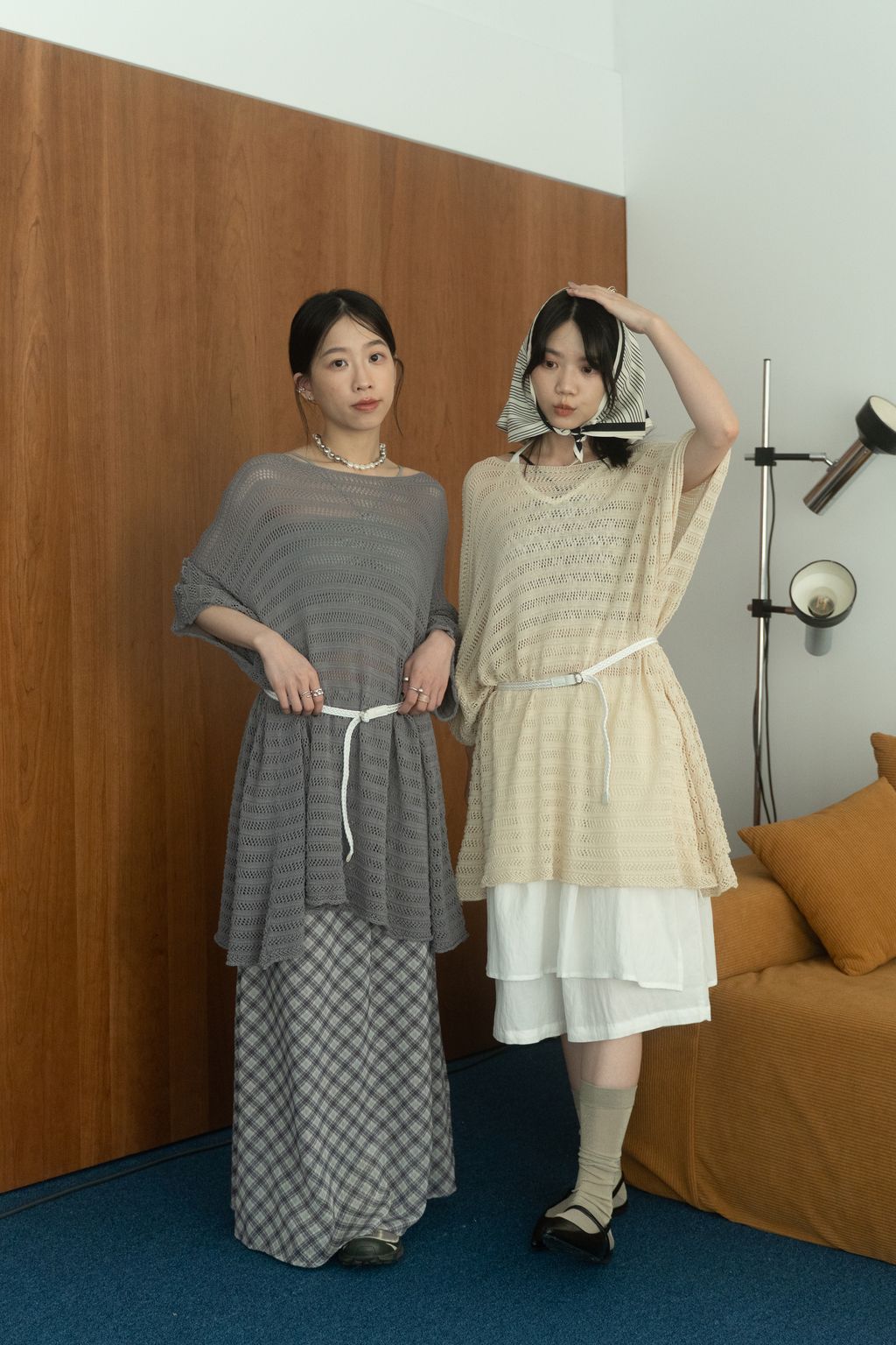 垂墜連袖寬鬆針織衫(附腰帶)杏/灰