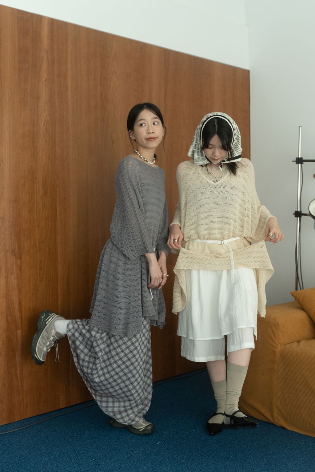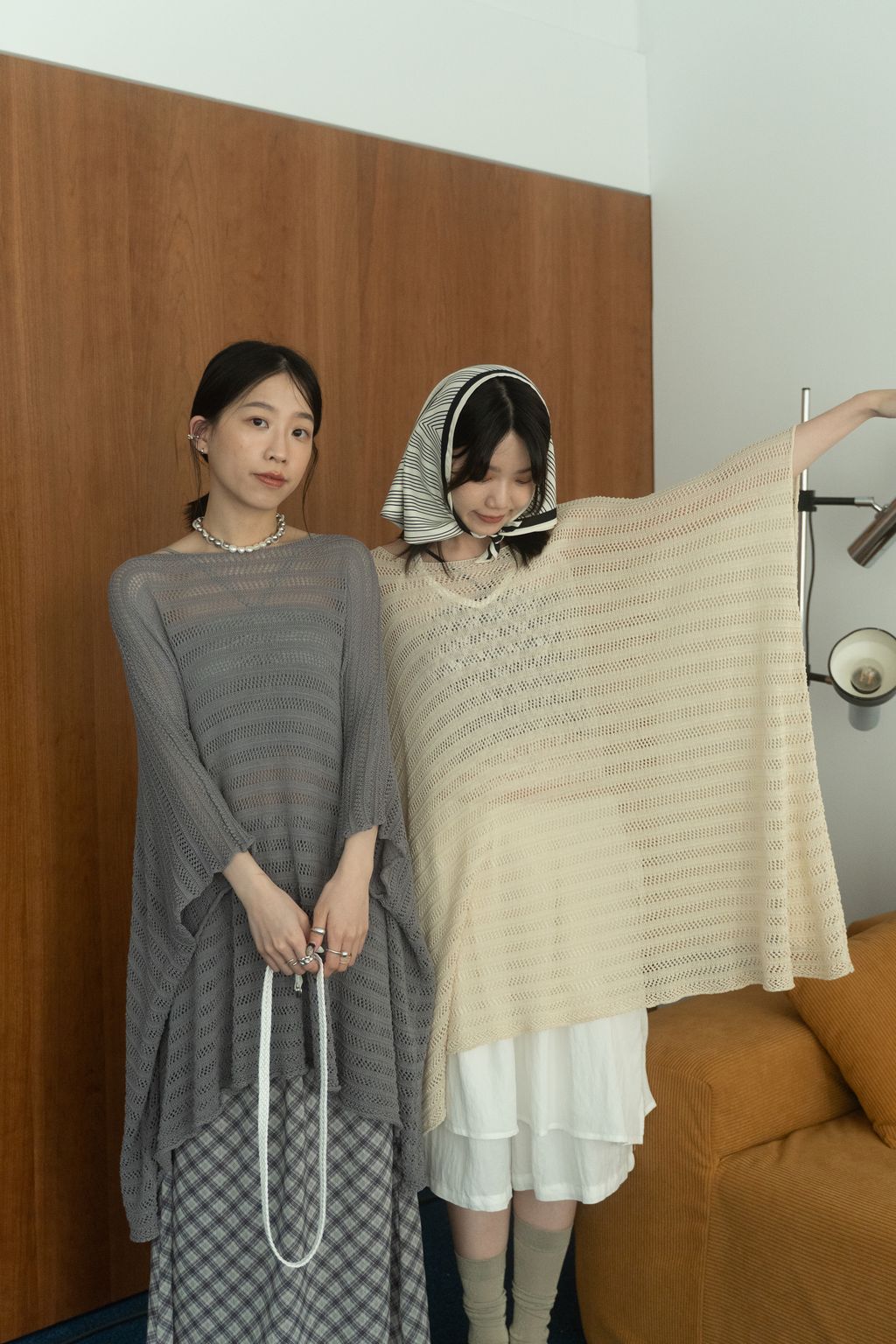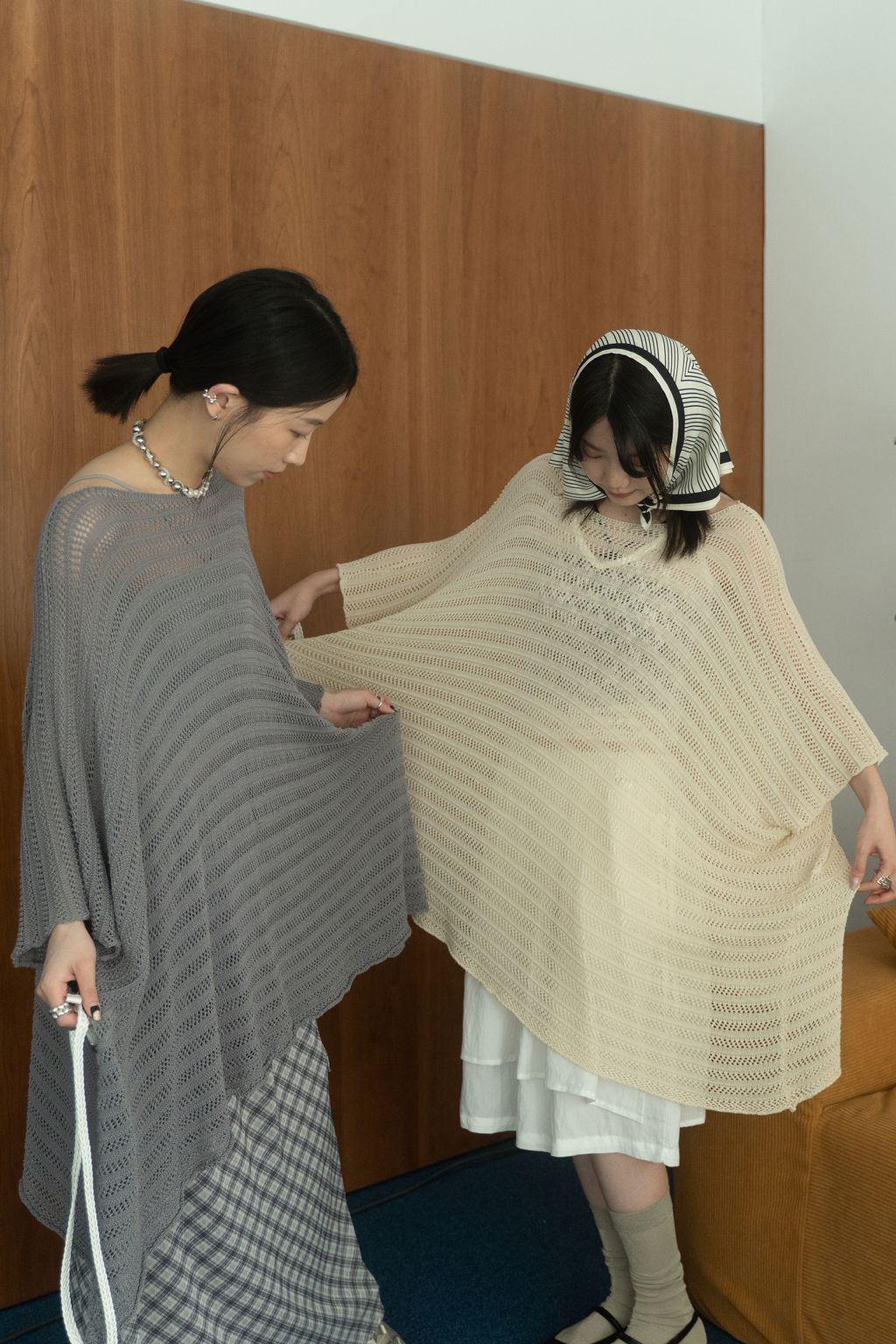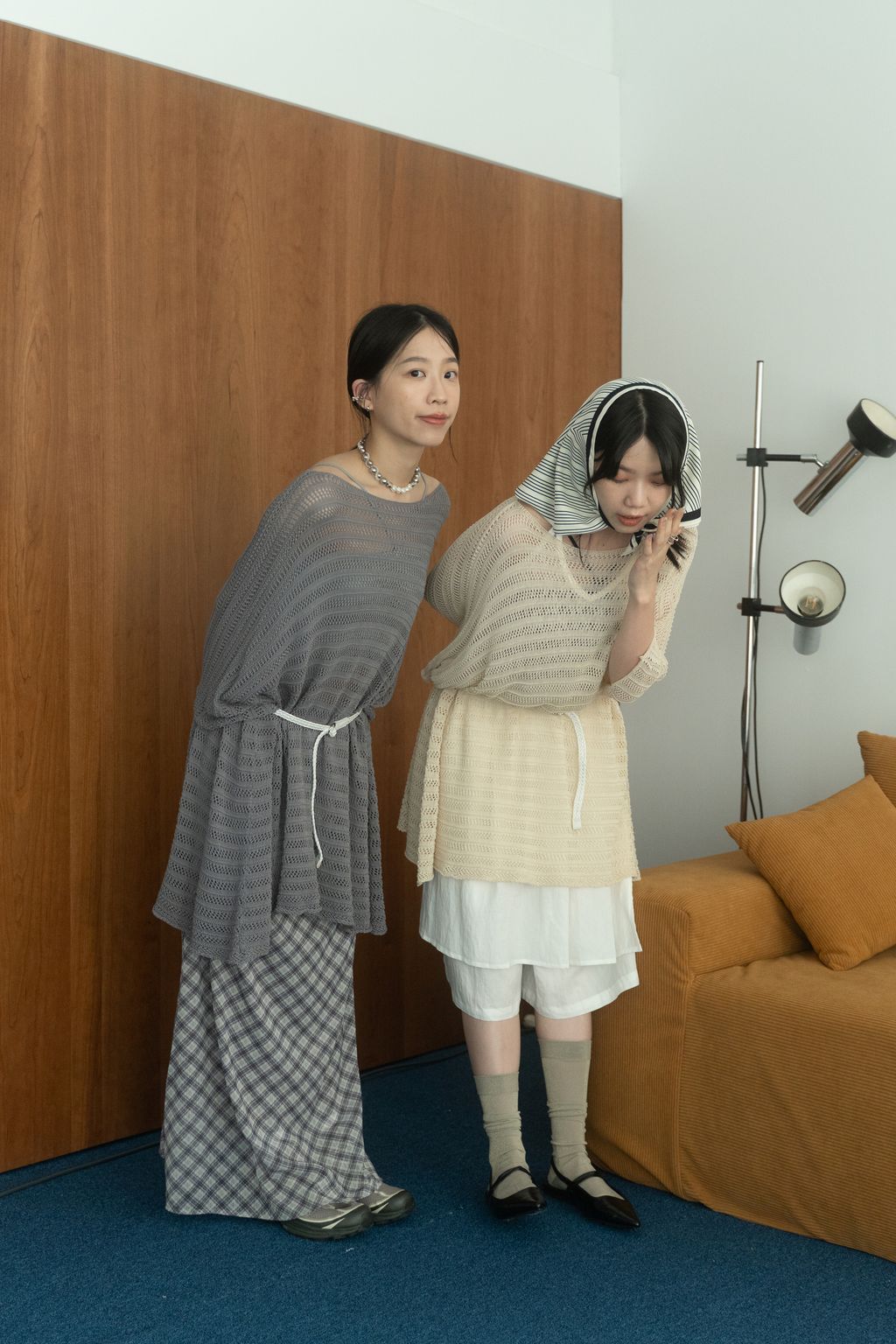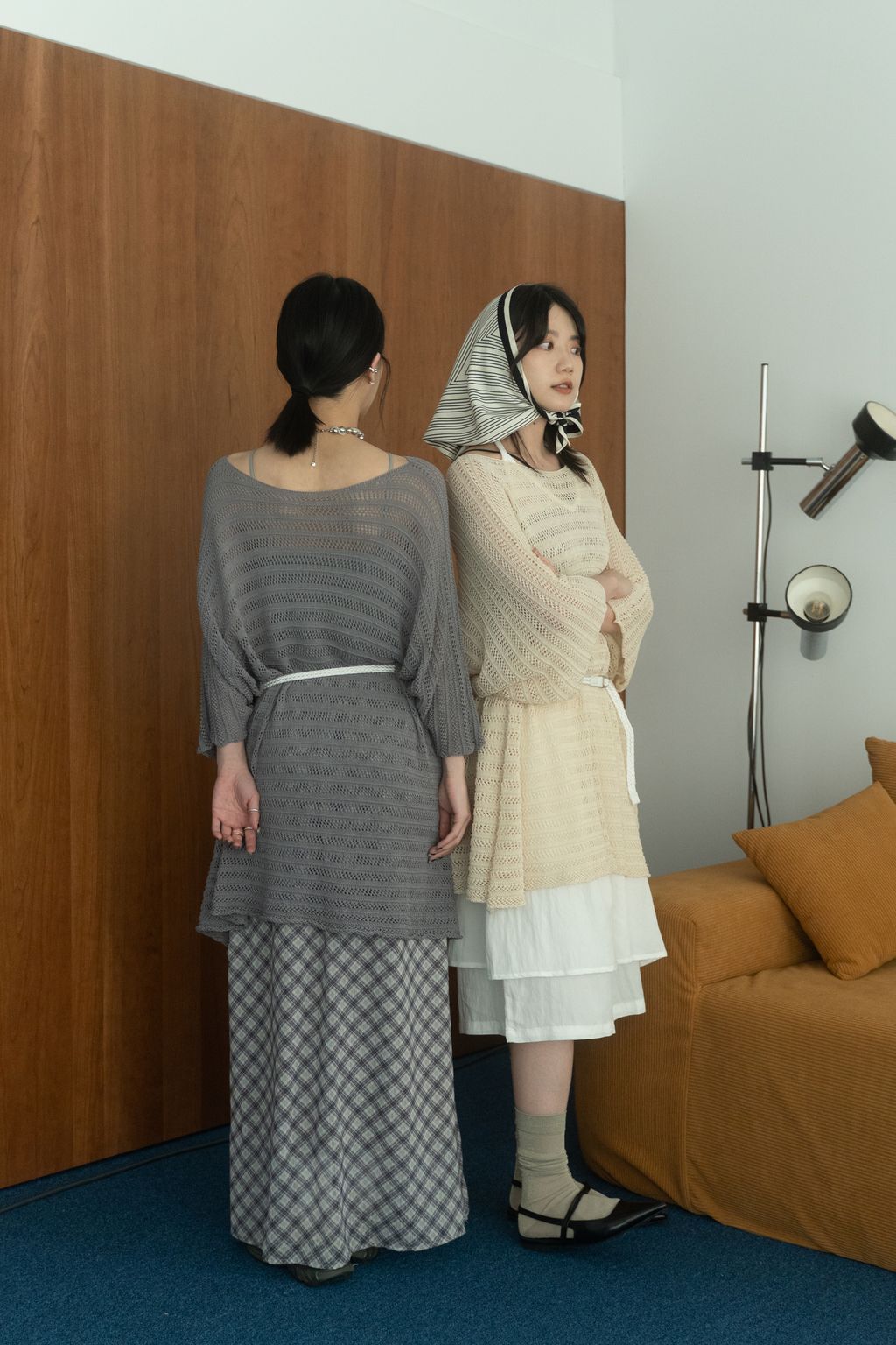 垂墜連袖寬鬆針織衫(附腰帶)杏/灰