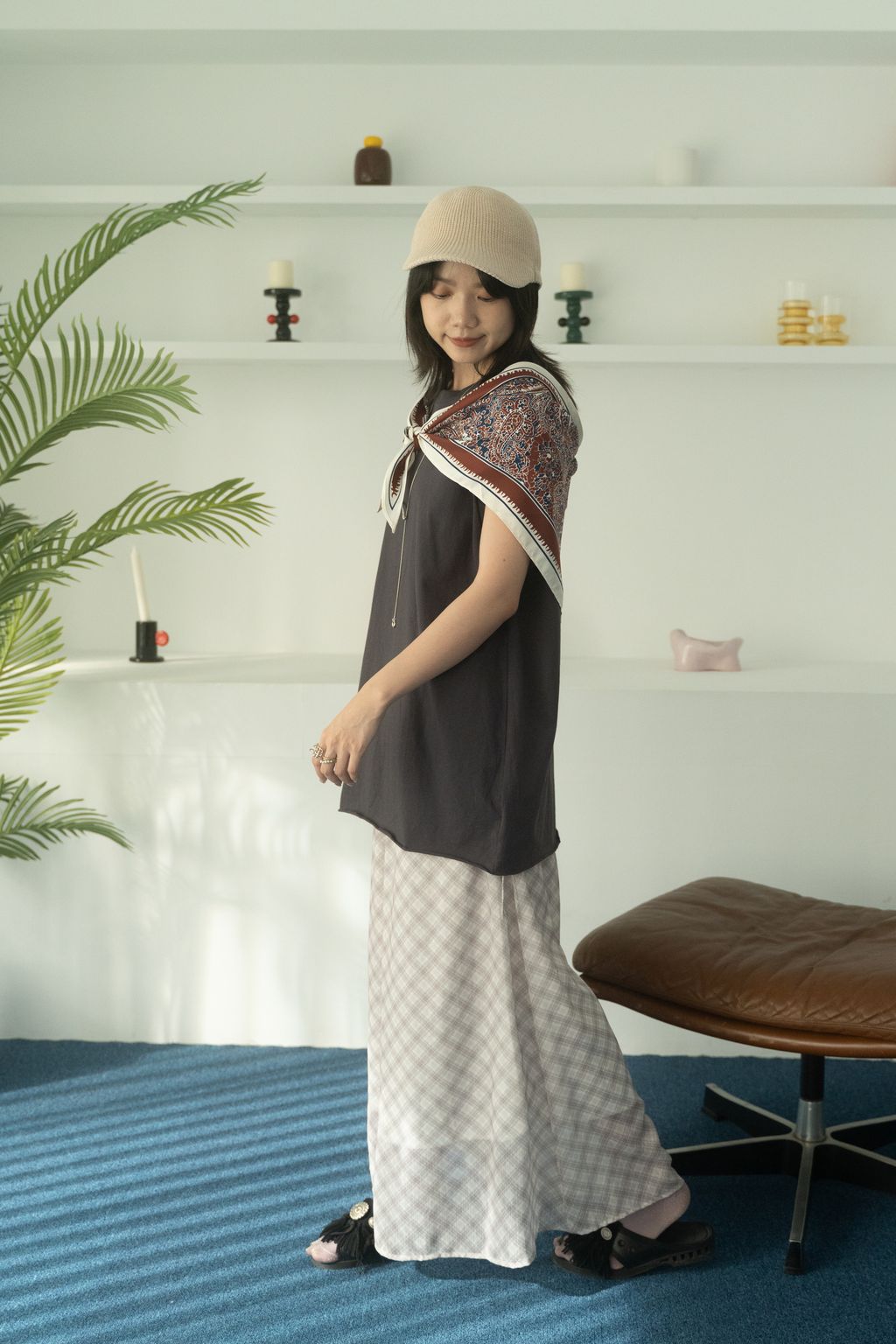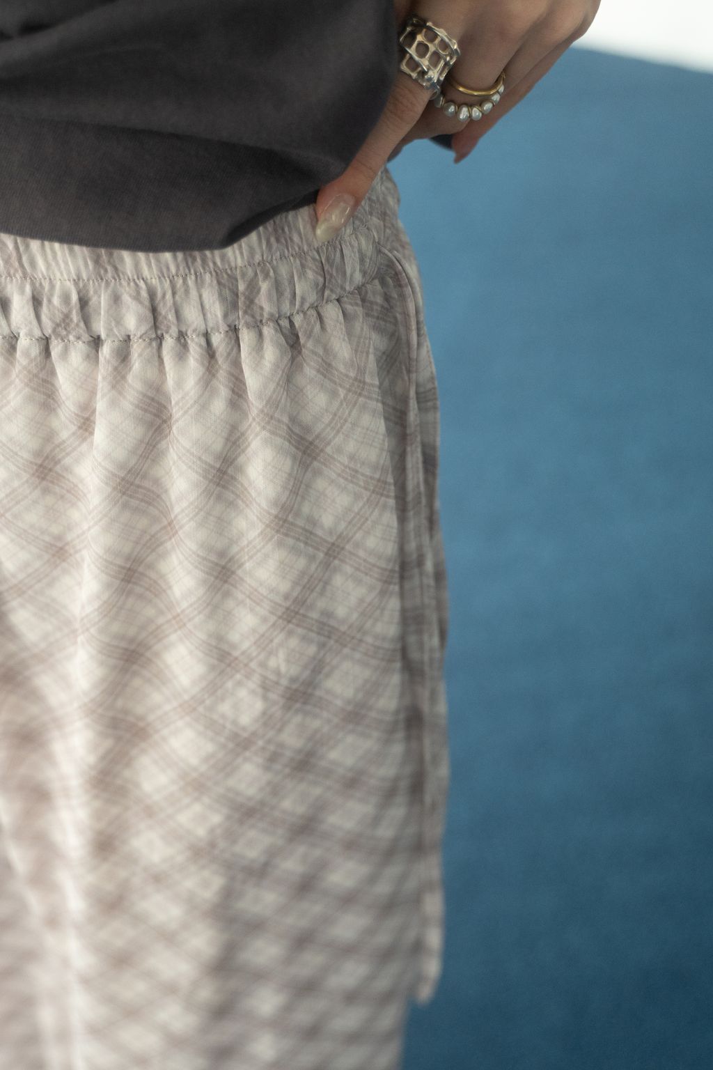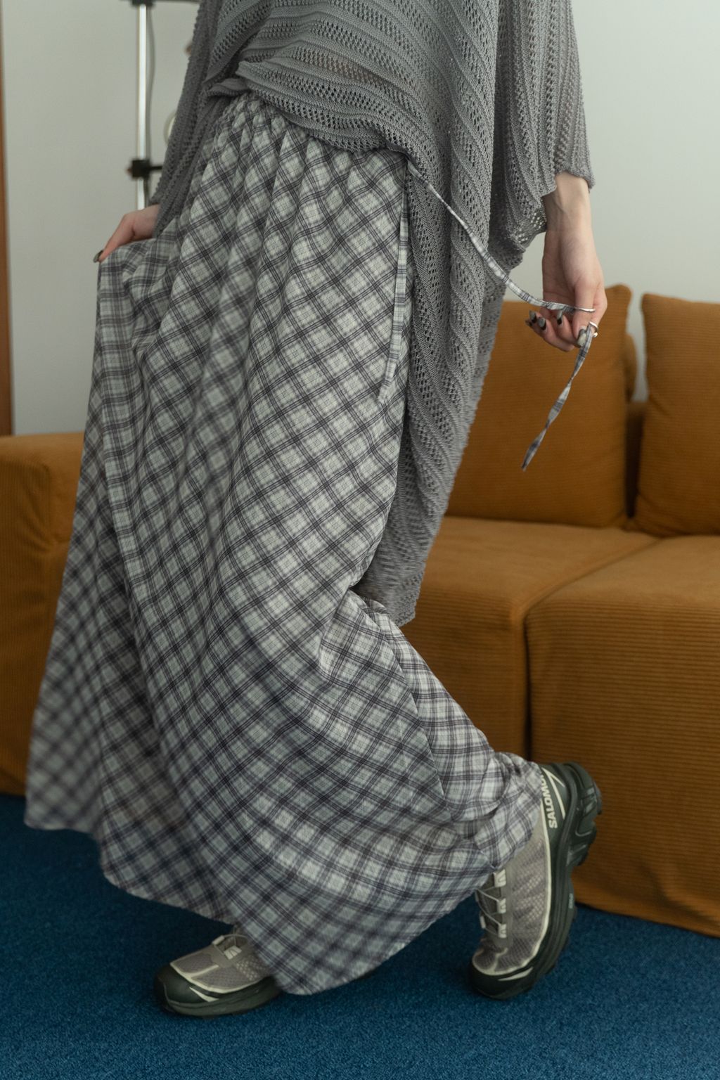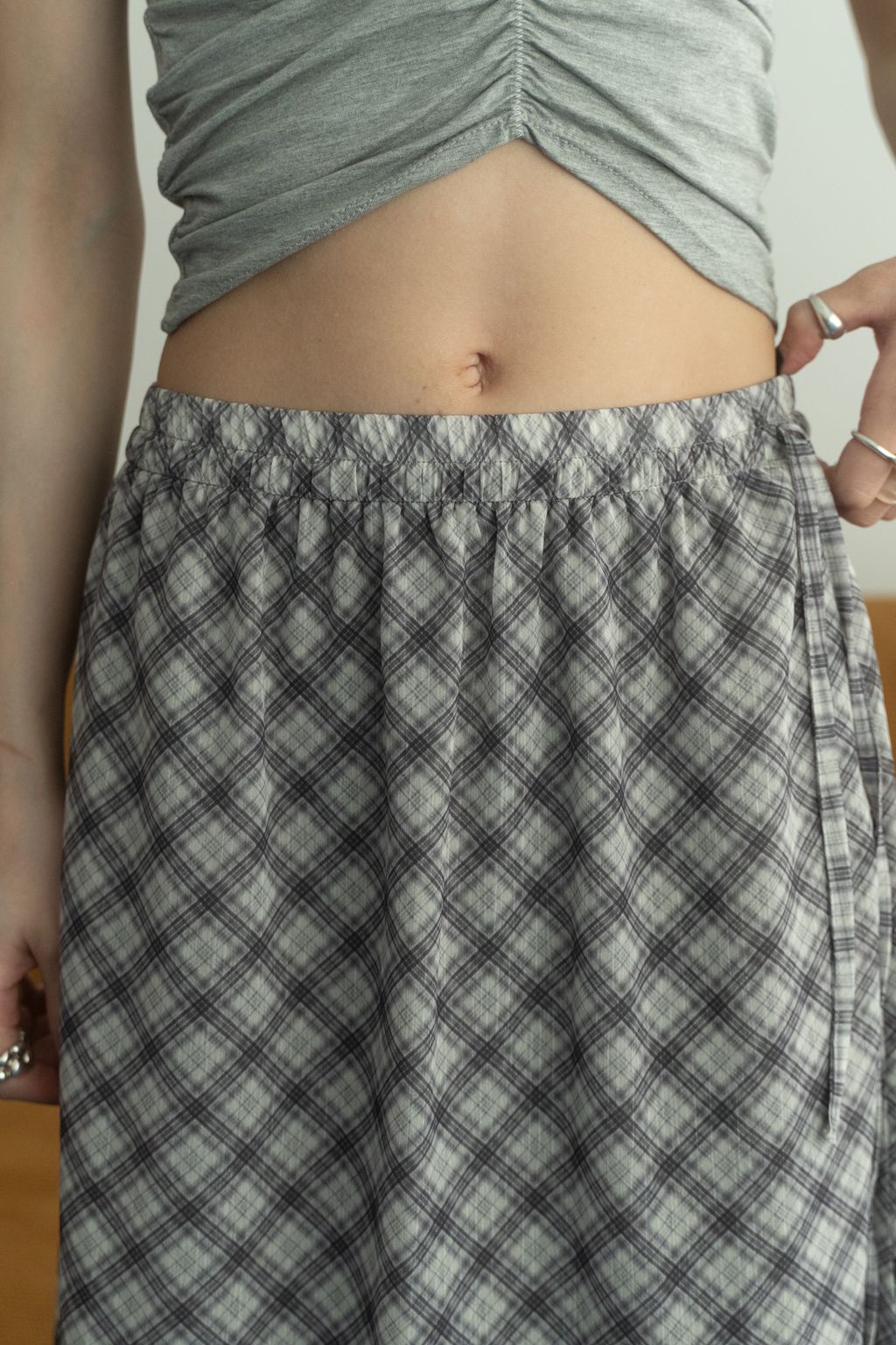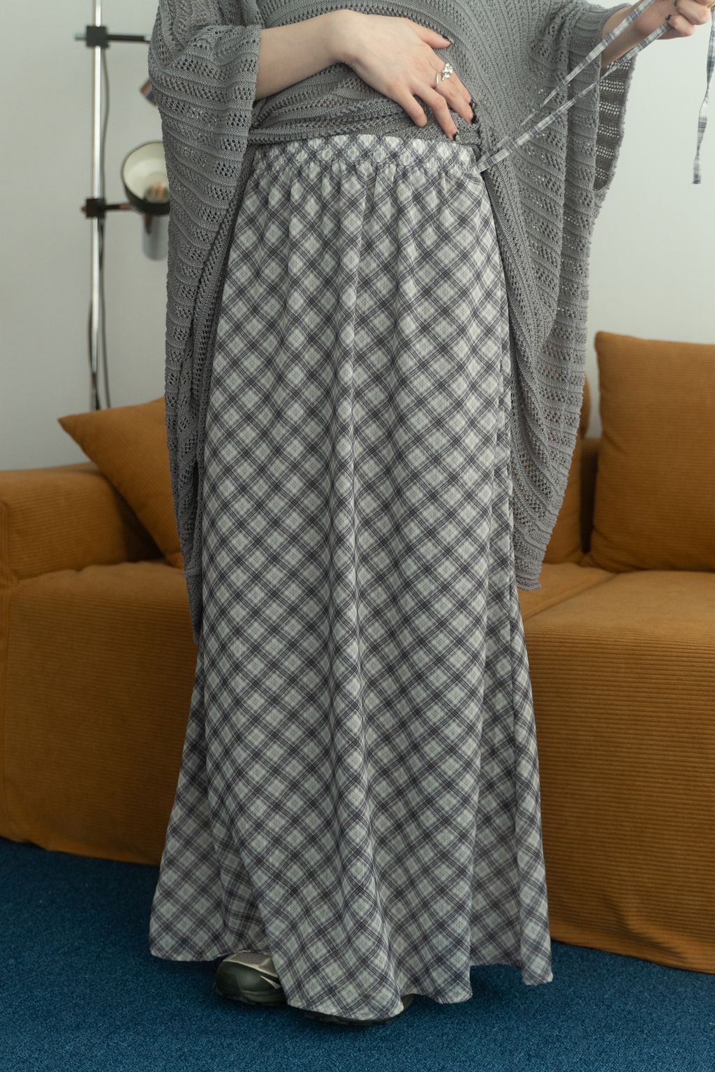 溫柔透感側抽繩格紋長裙 杏咖/灰藍