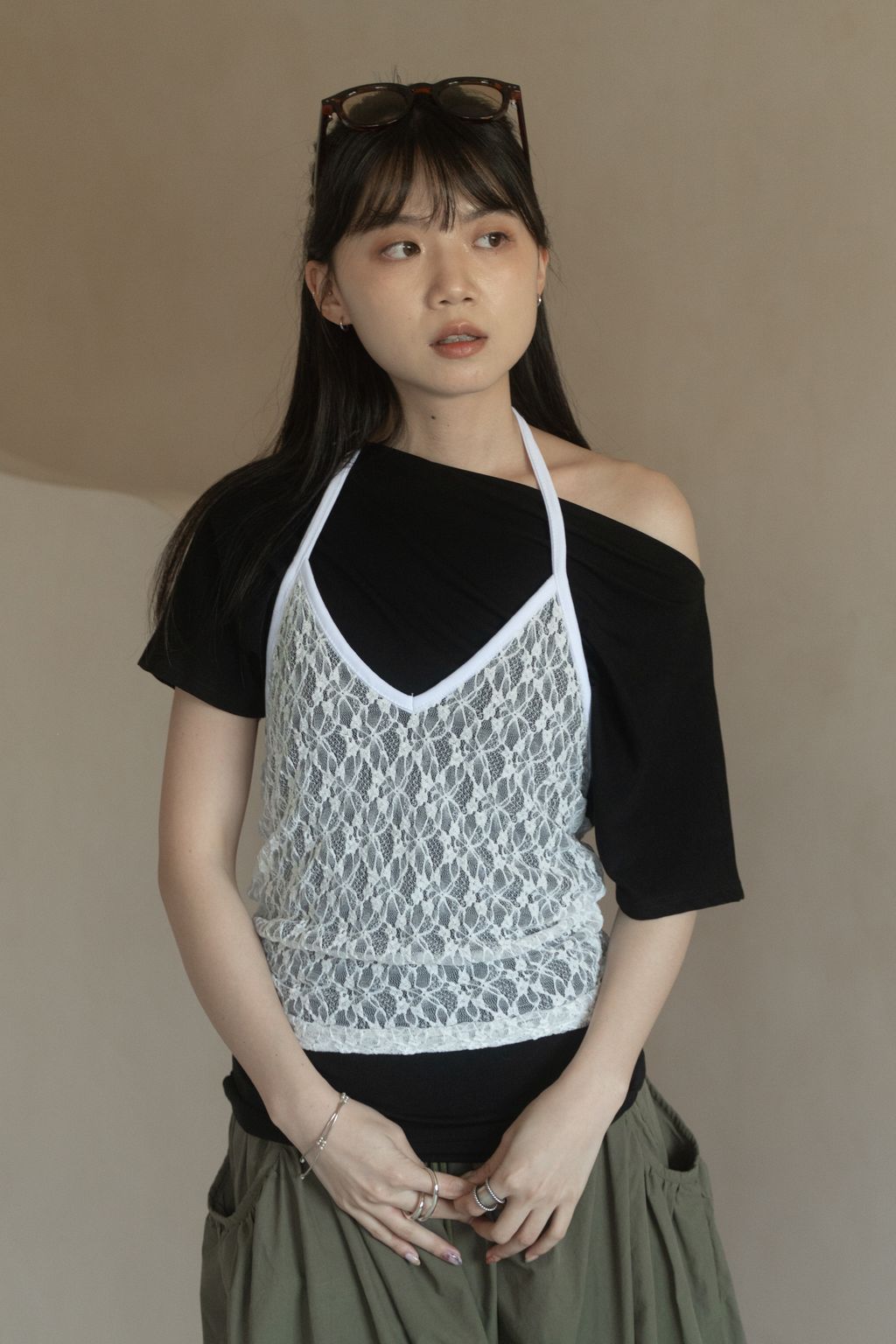 HOT!繞脖露背彈性蕾絲背心 黑/白 總分: 0 - 0 評價