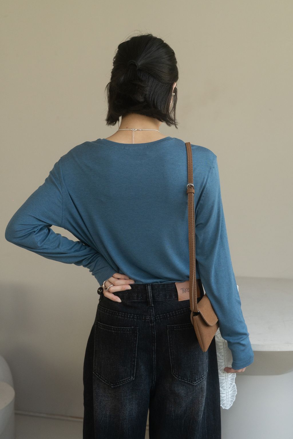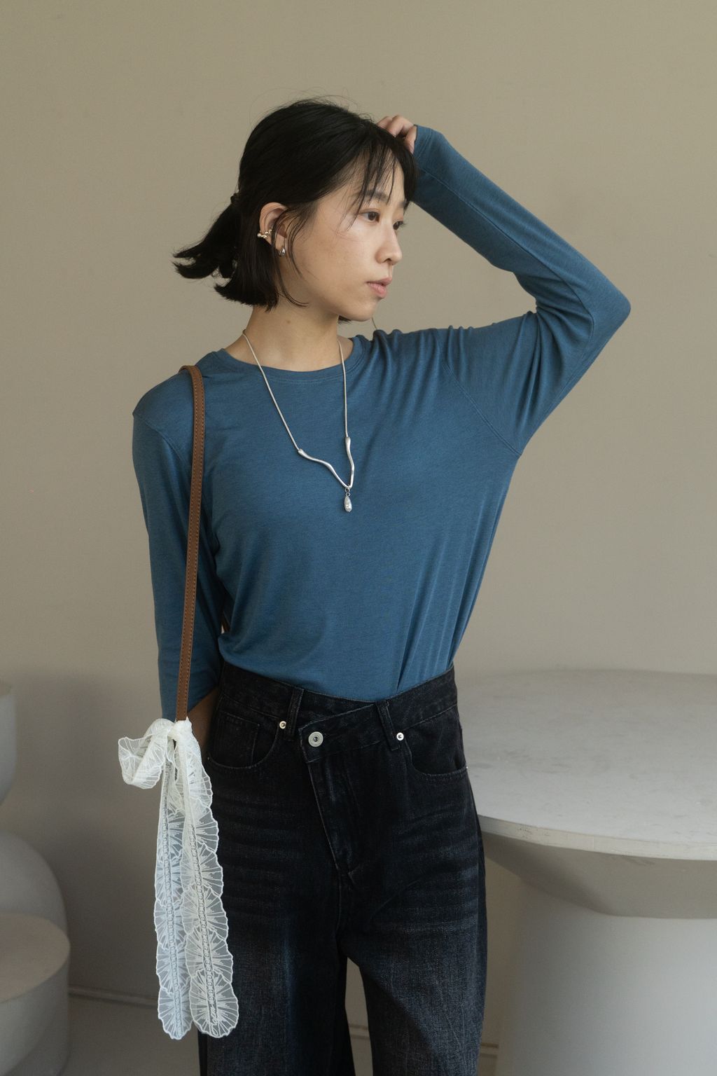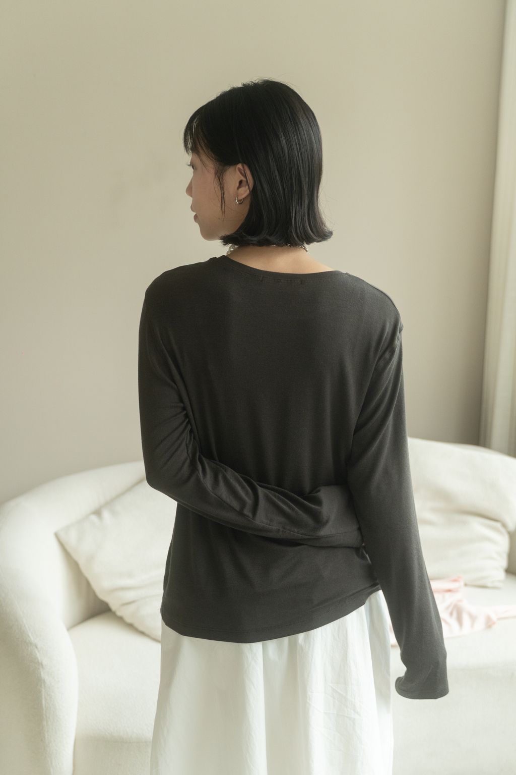 棉花糖Q彈圓領薄長袖 煙灰綠/淡黃/柔粉/謐藍
