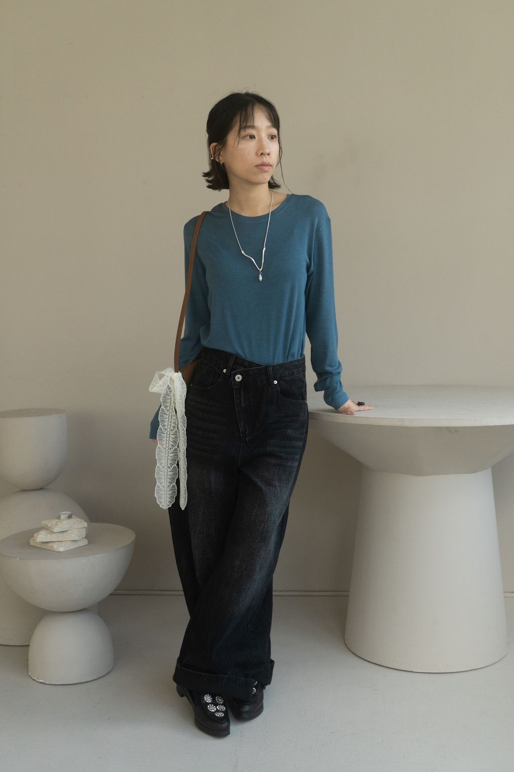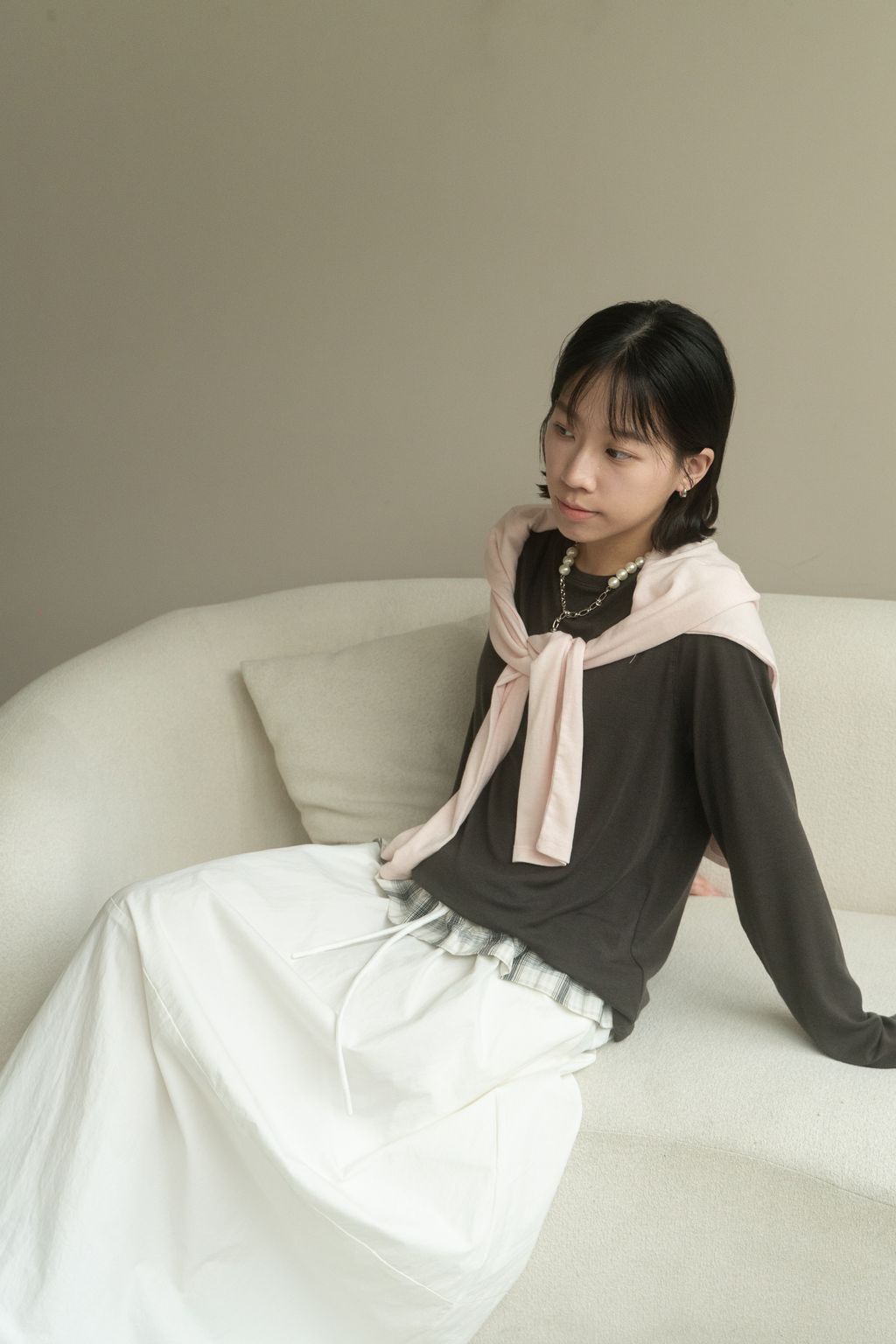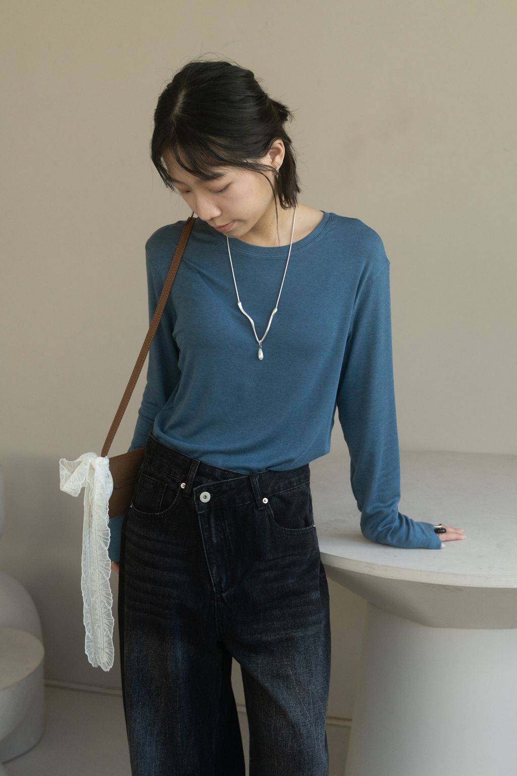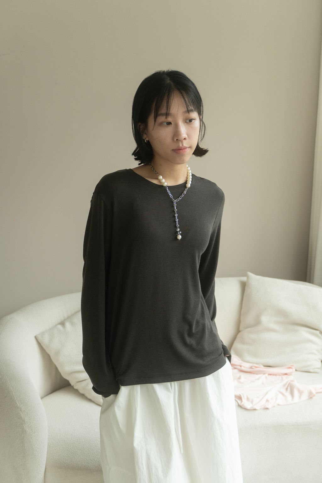 棉花糖Q彈圓領薄長袖 煙灰綠/淡黃/柔粉/謐藍