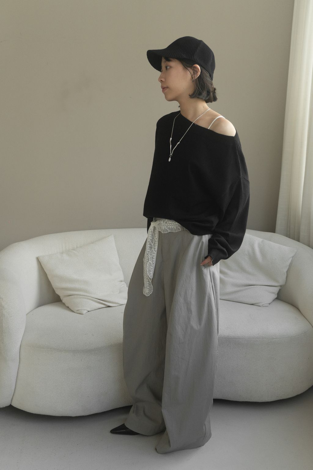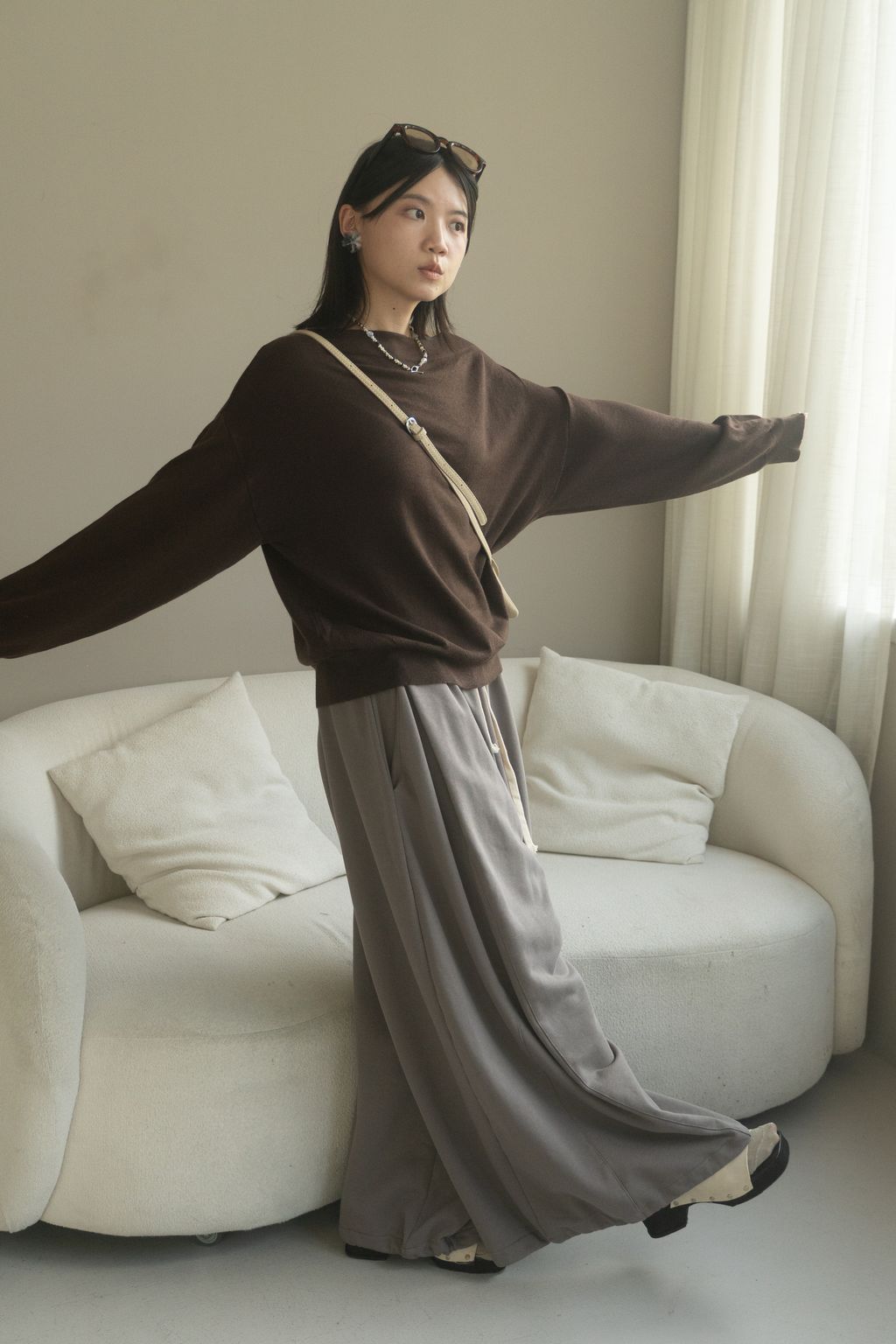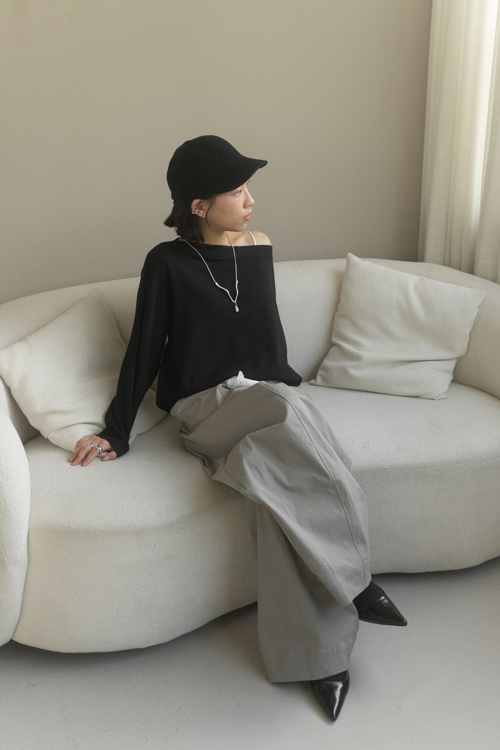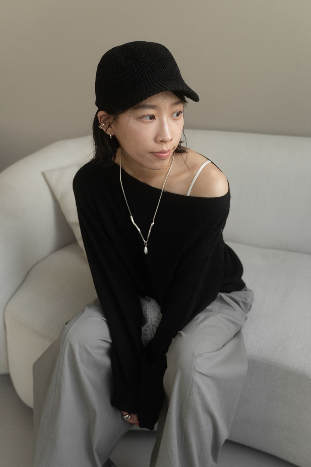 隨性斜肩寬鬆薄針織上衣 黑/咖