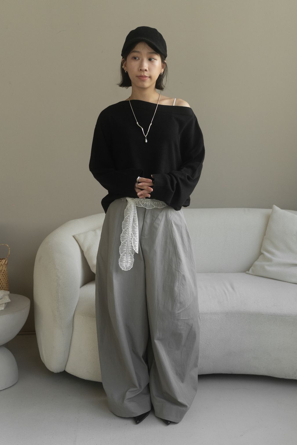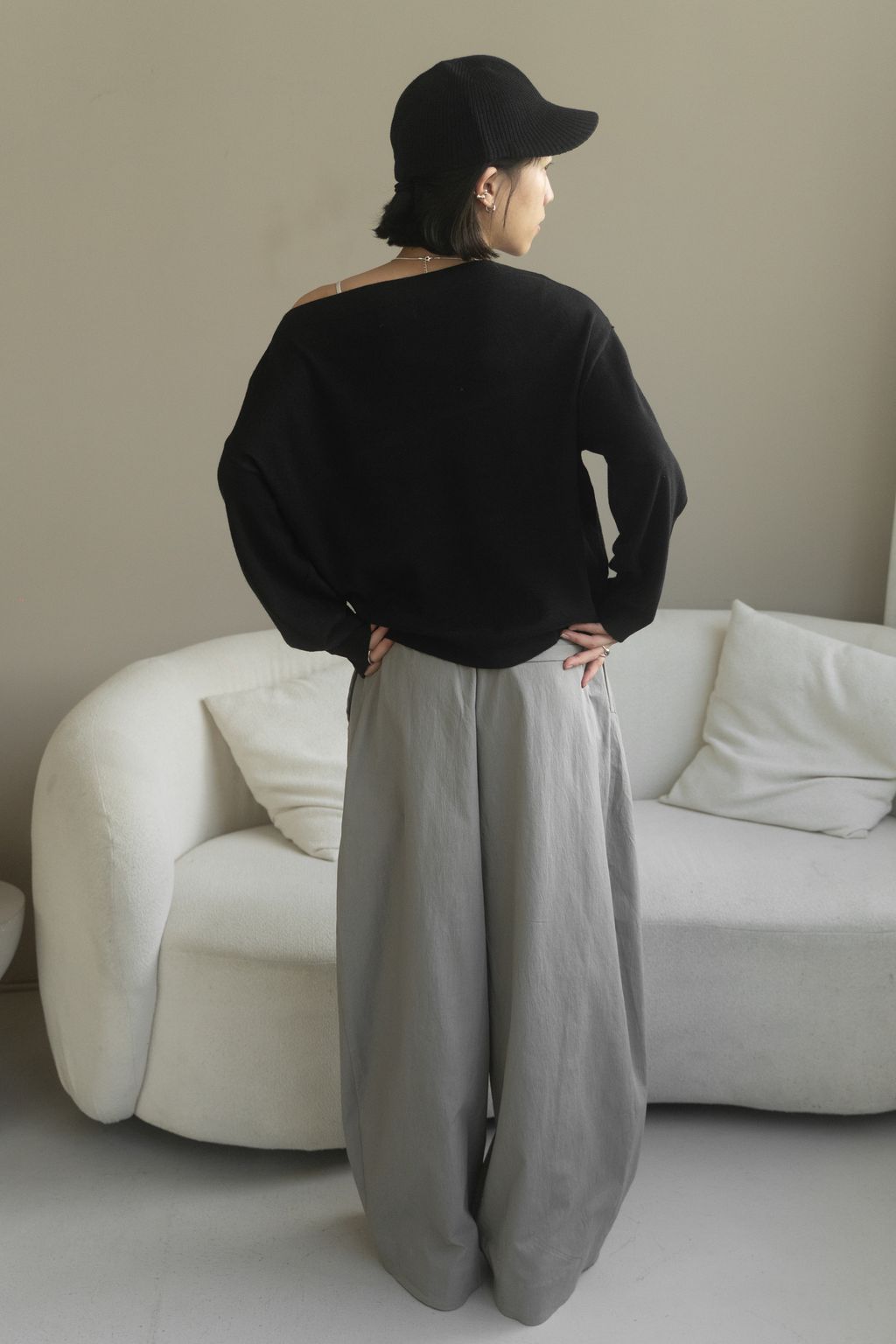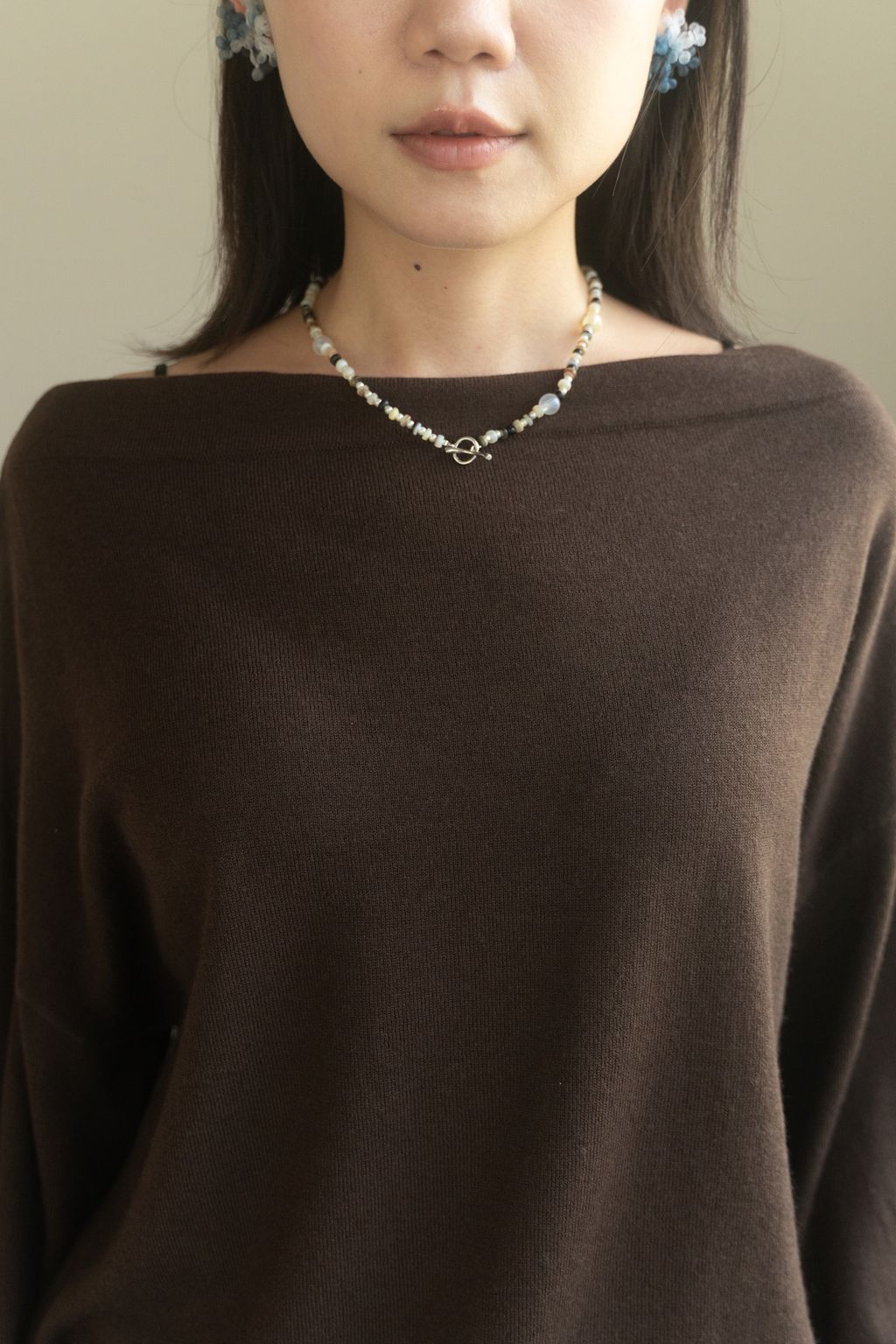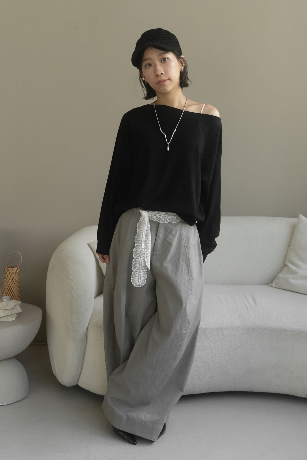 隨性斜肩寬鬆薄針織上衣 黑/咖