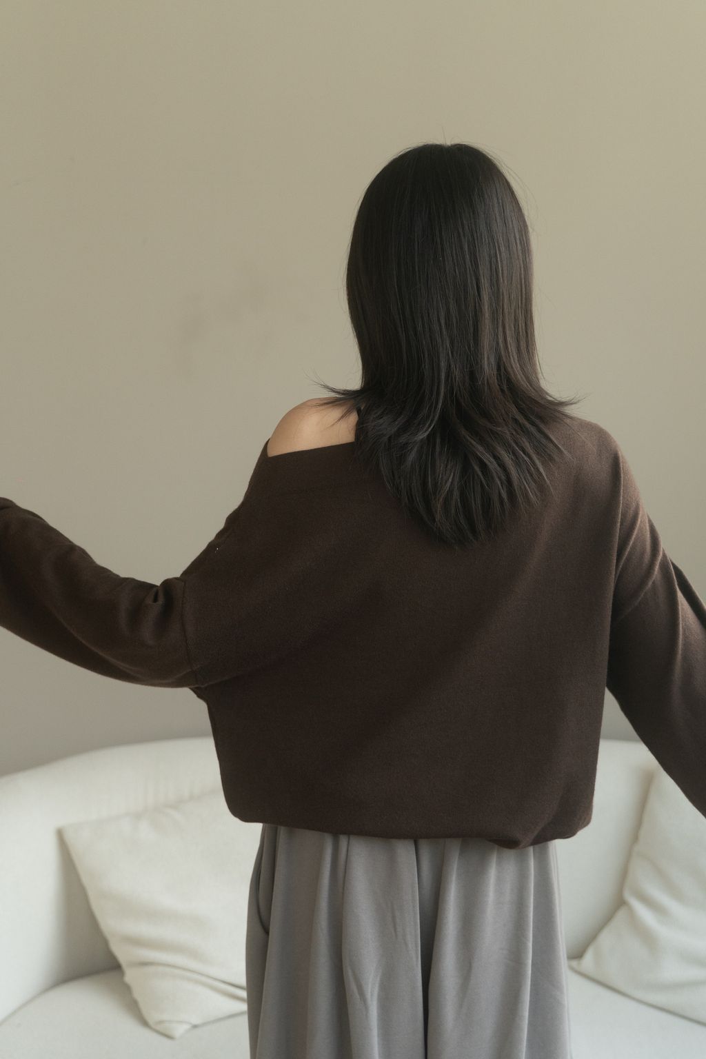 隨性斜肩寬鬆薄針織上衣 黑/咖 總分: 0 - 0 評價
