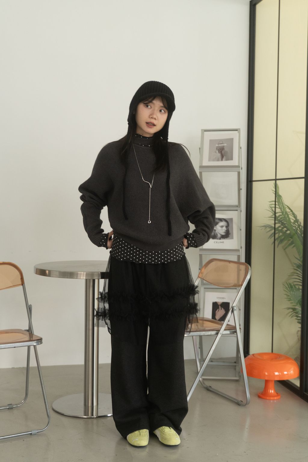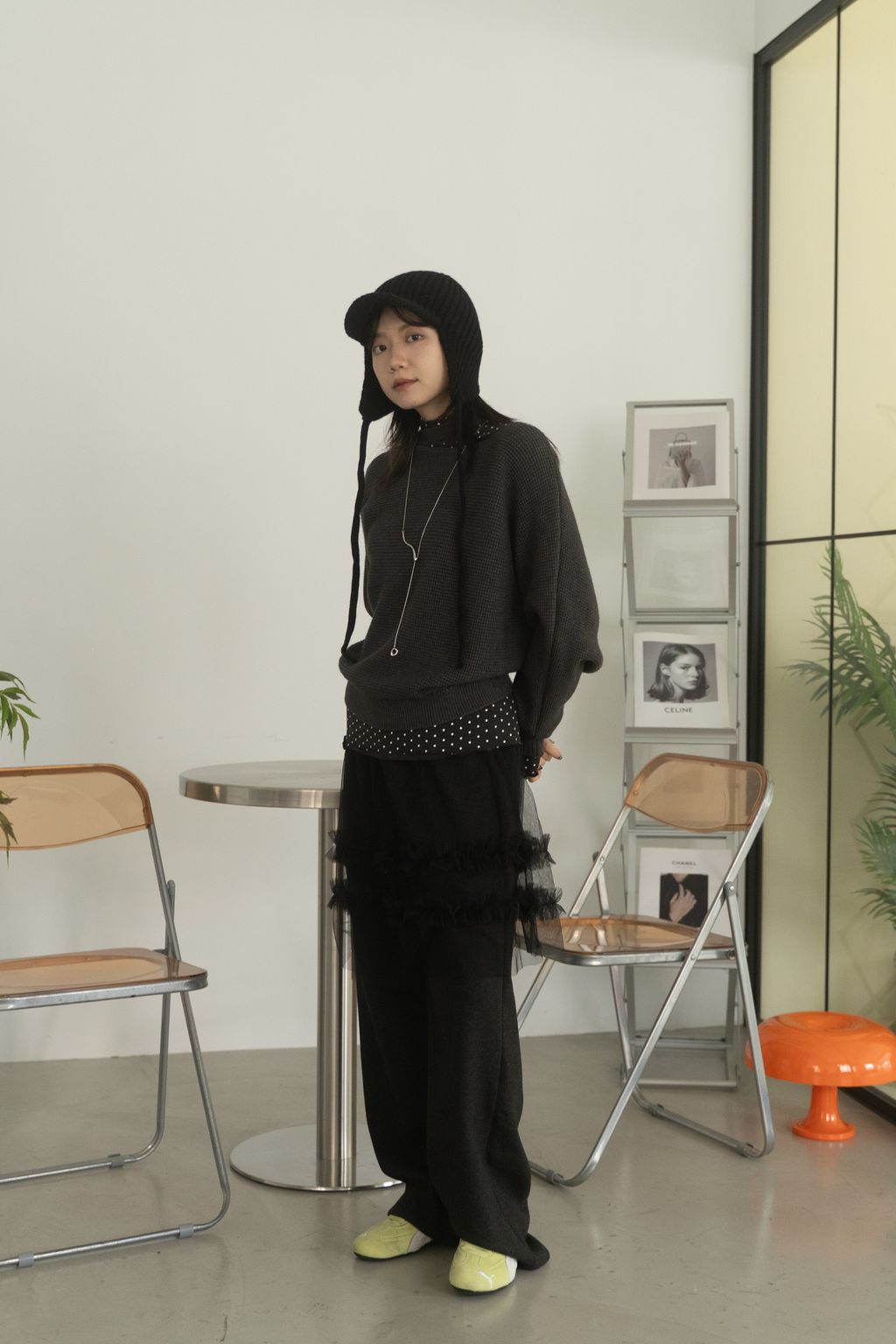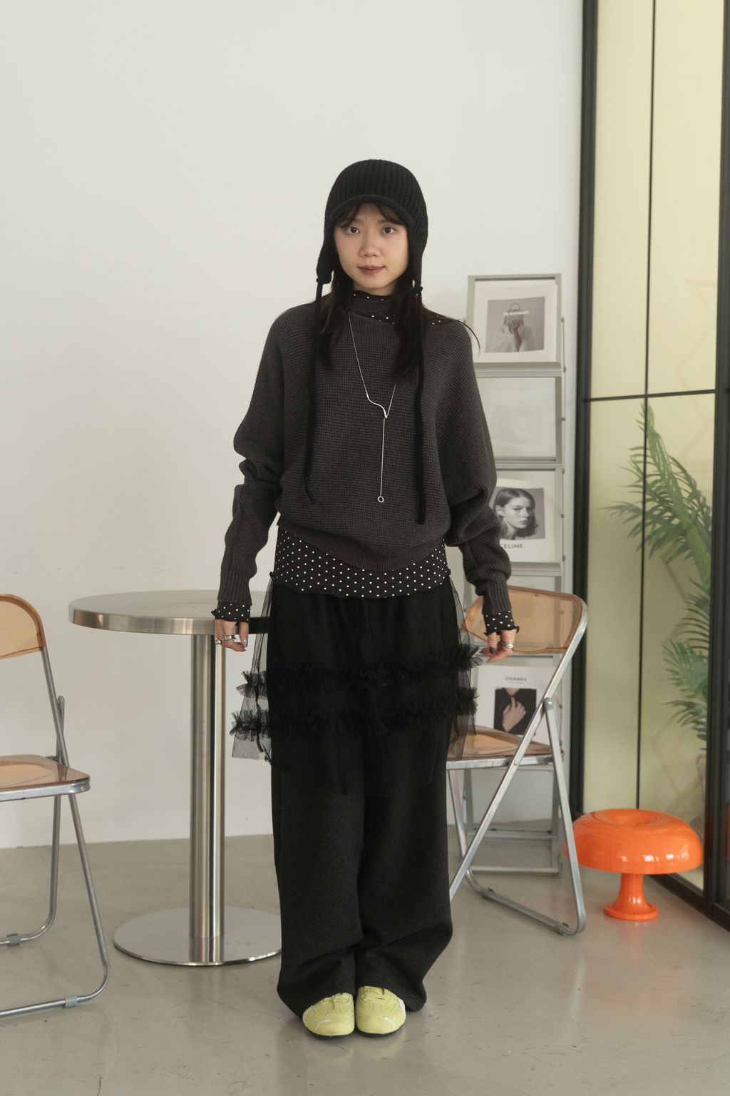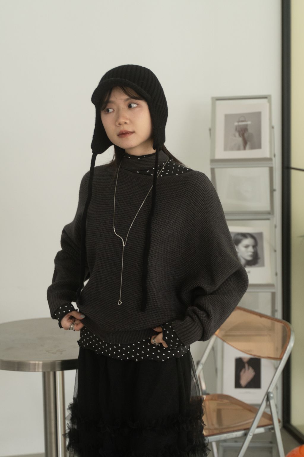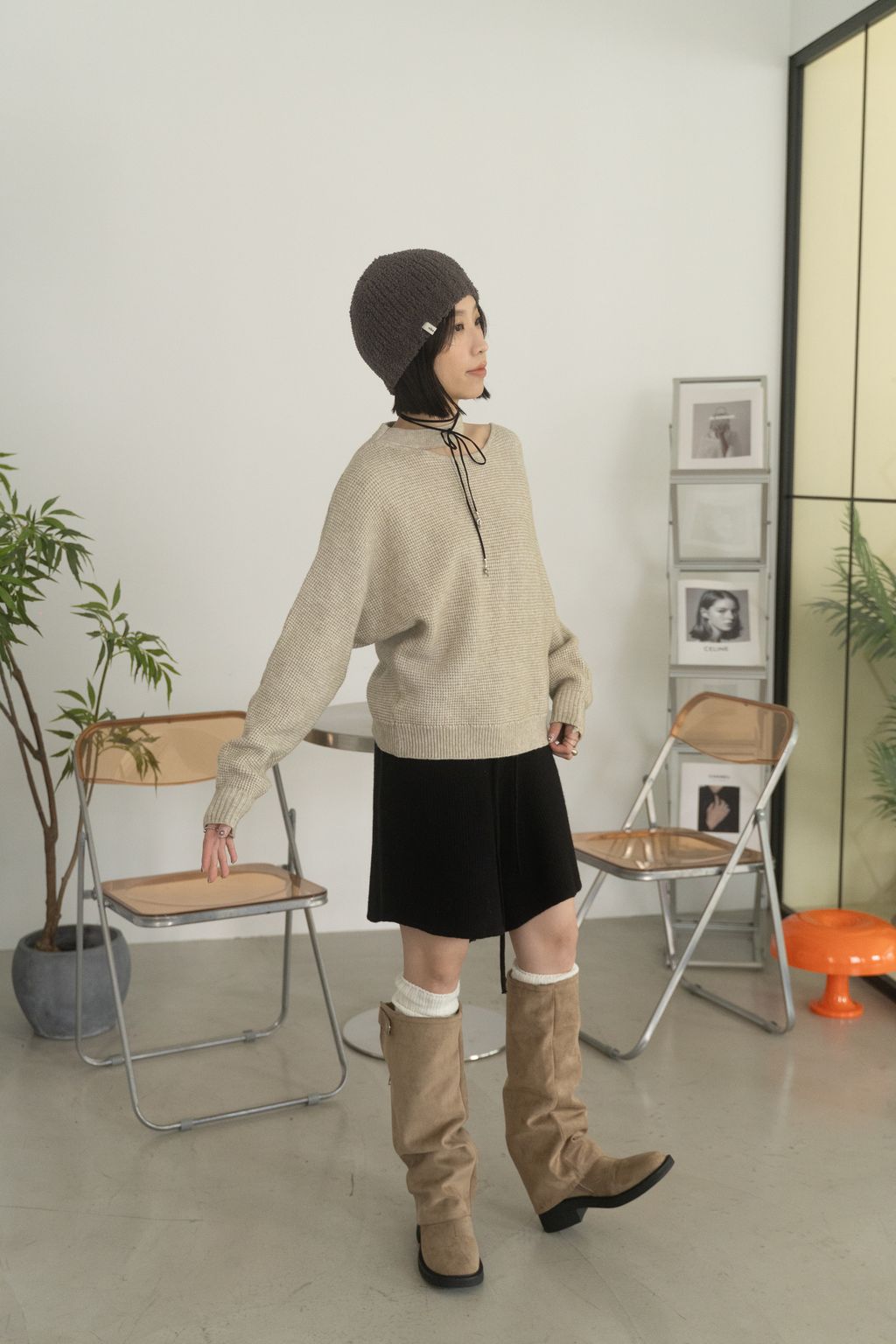 斜切領菠蘿紋針織上衣 深灰/燕麥