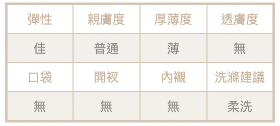 (除肩寬為平量外 其餘為圍一圈測量 / 單位:cm)