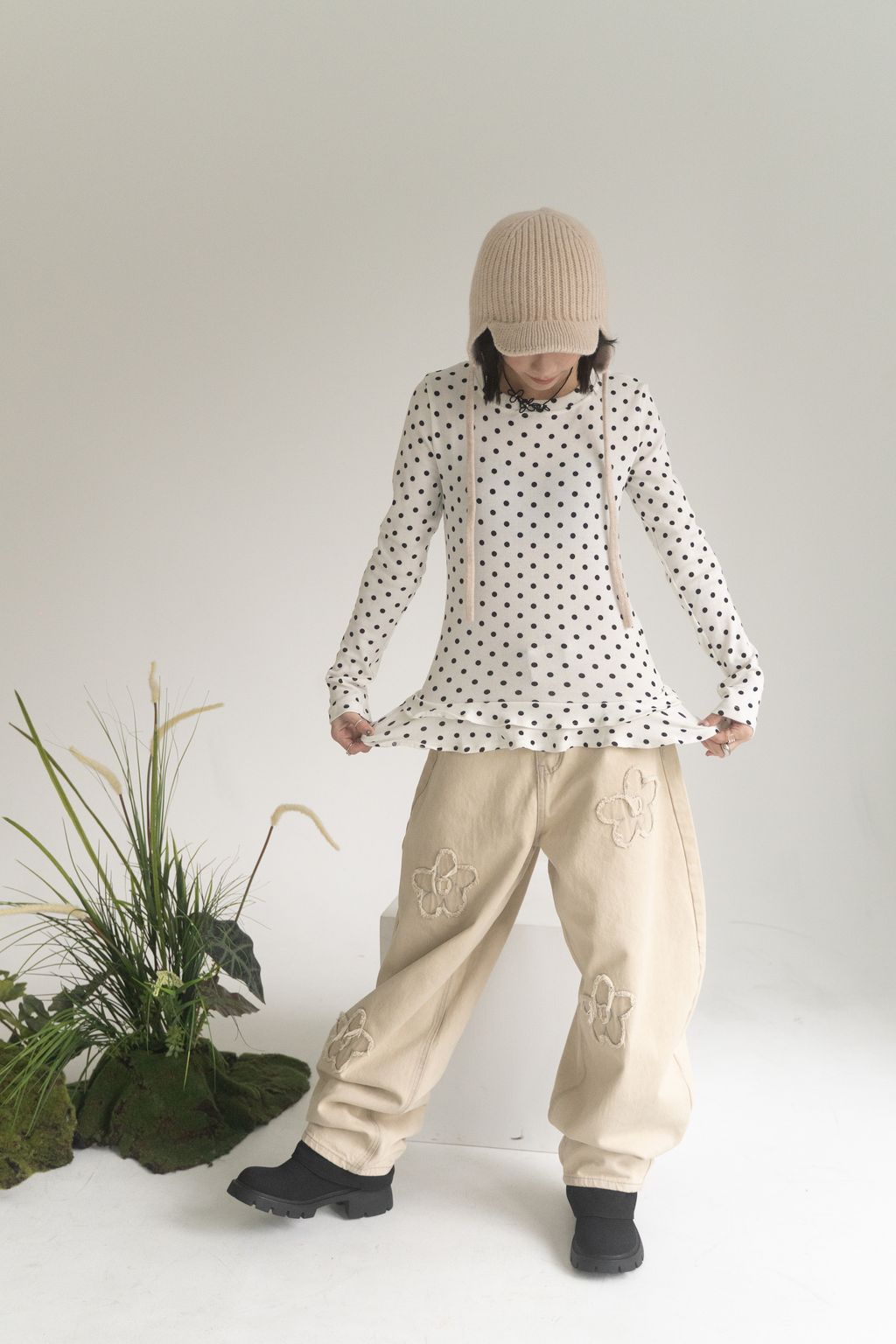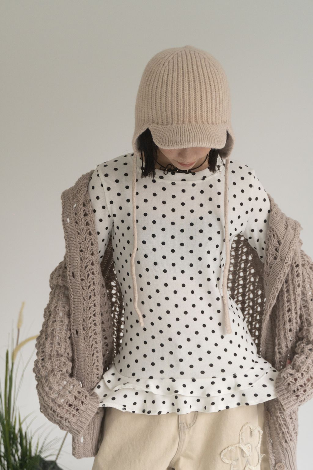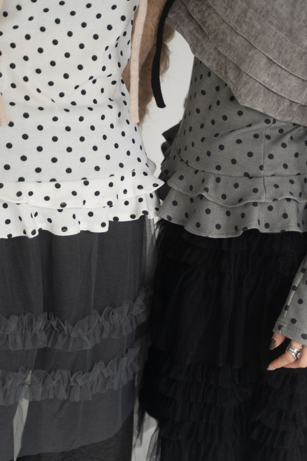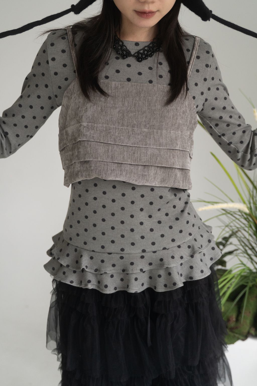 點點俏皮風花邊上衣 白/灰