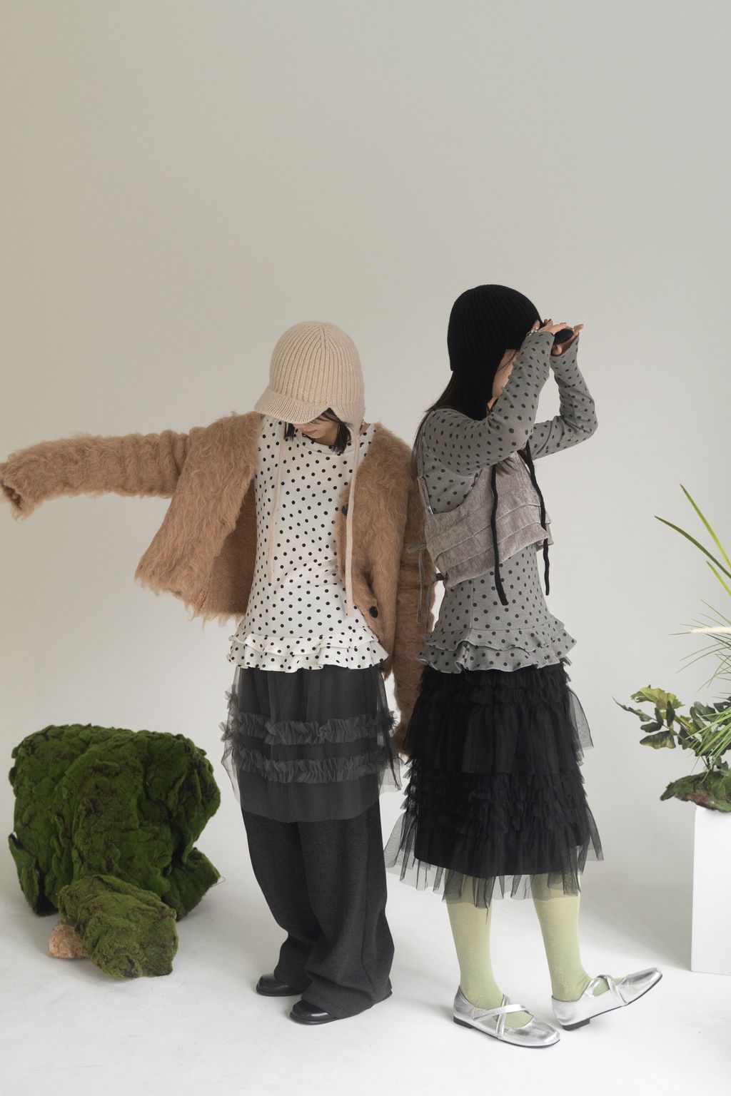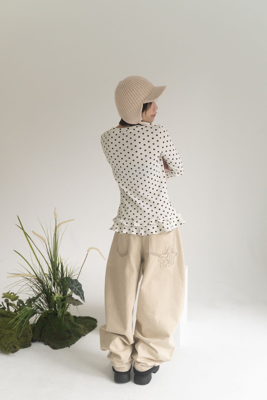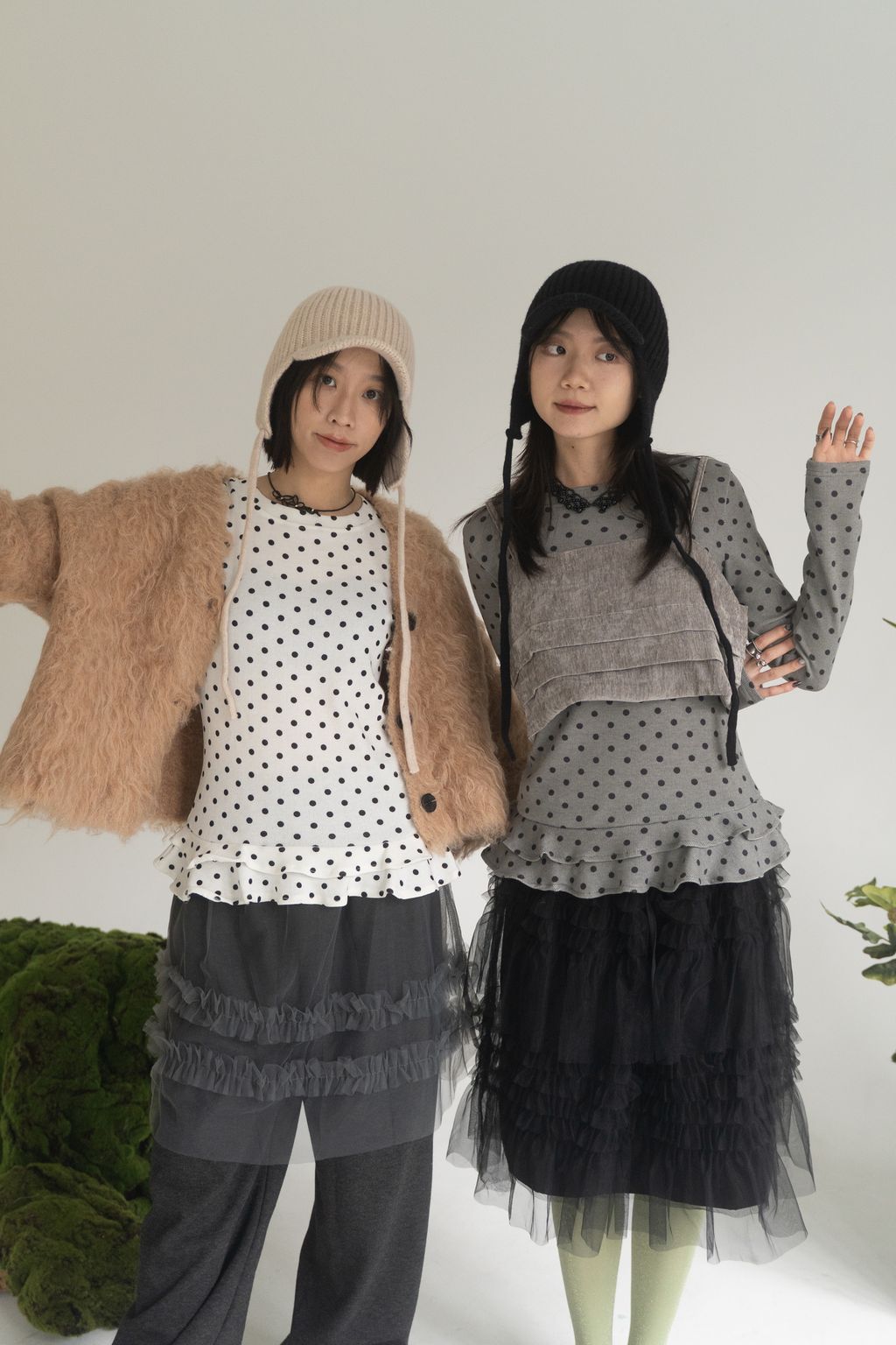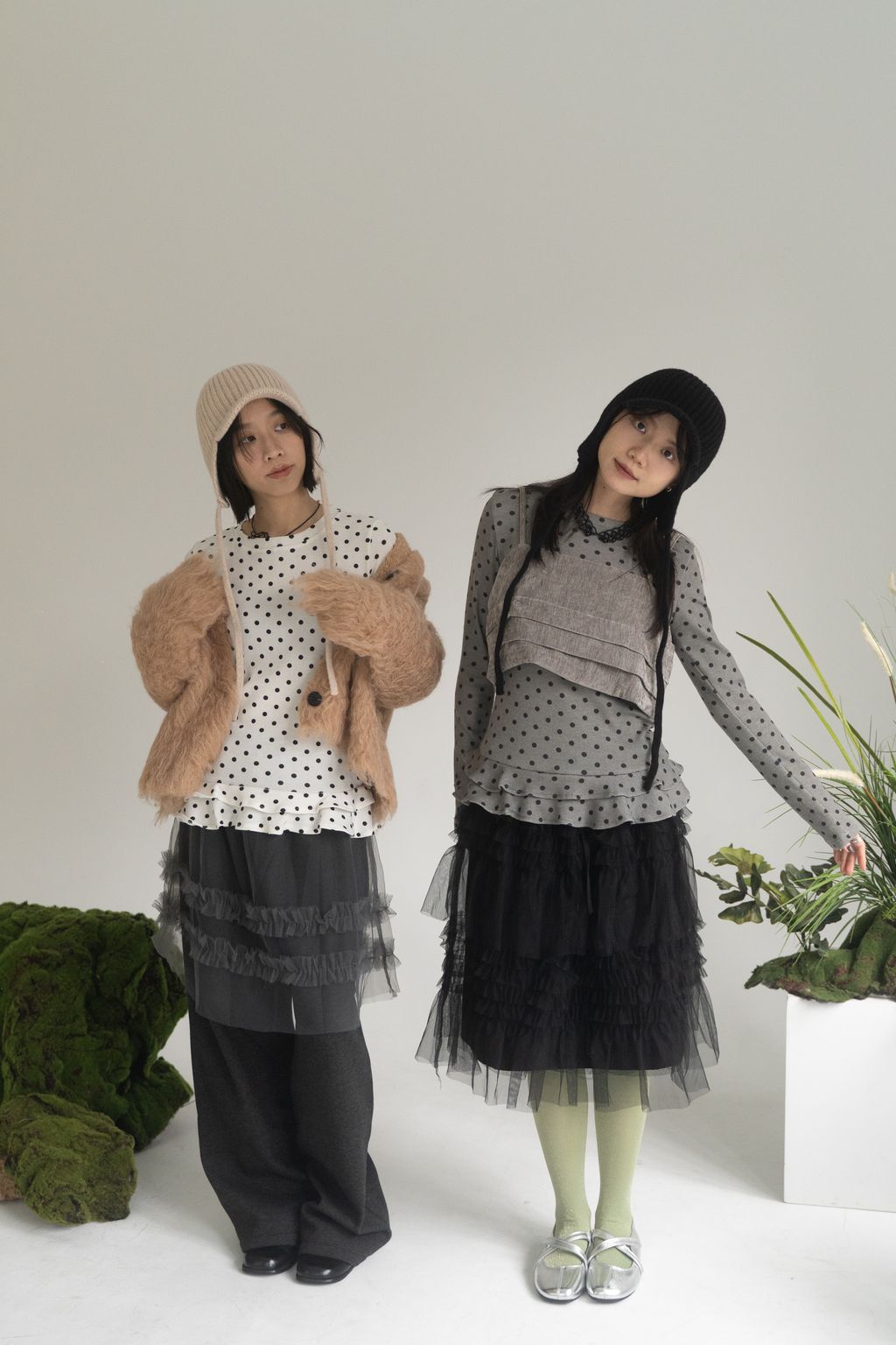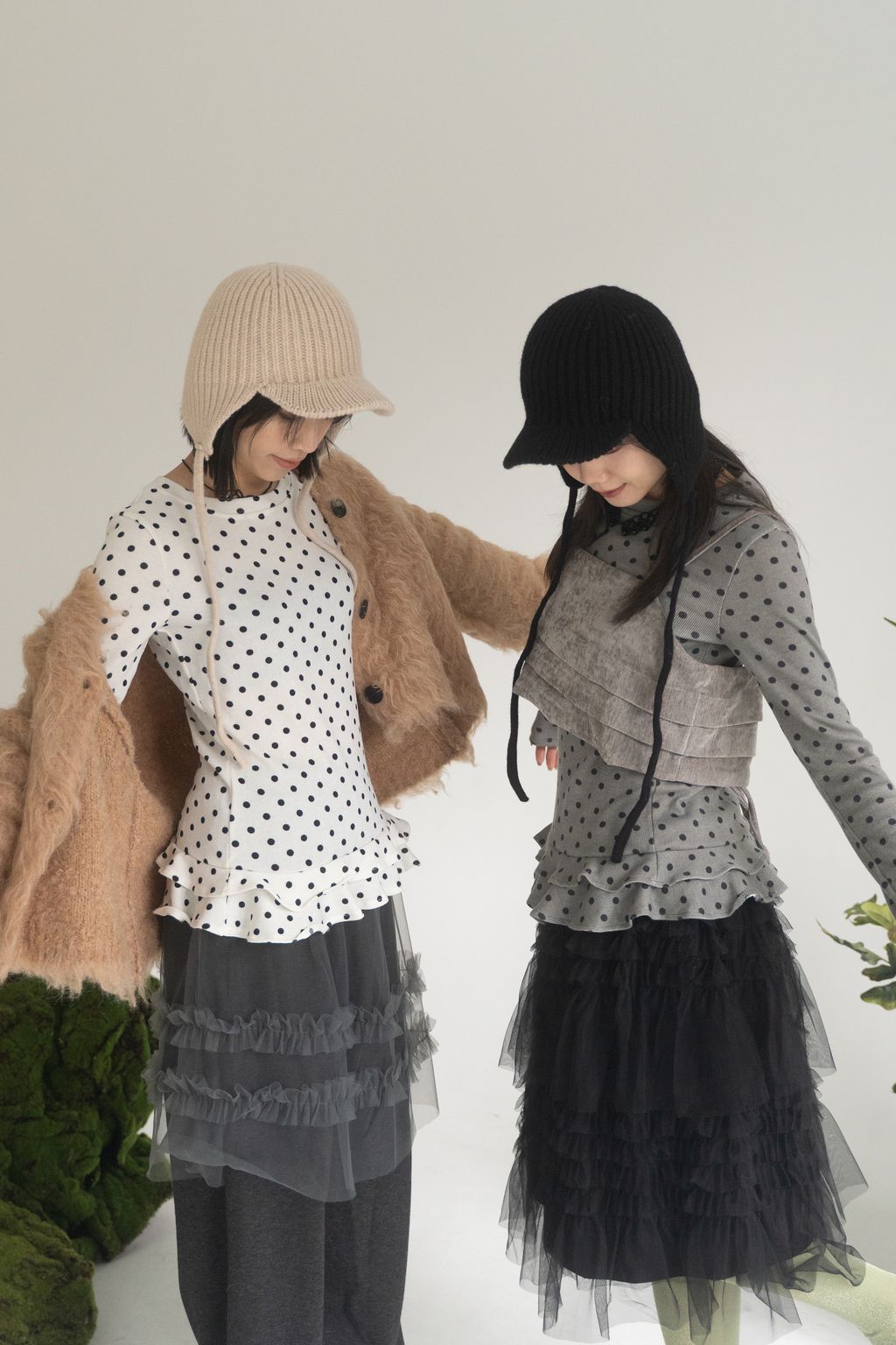 點點俏皮風花邊上衣 白/灰