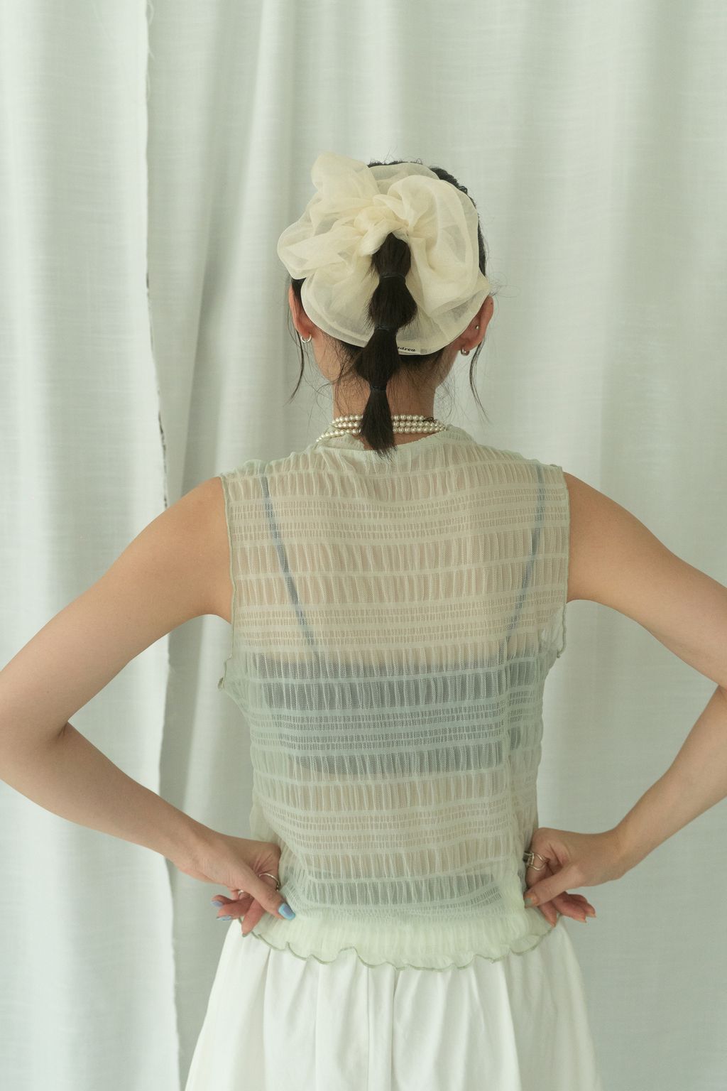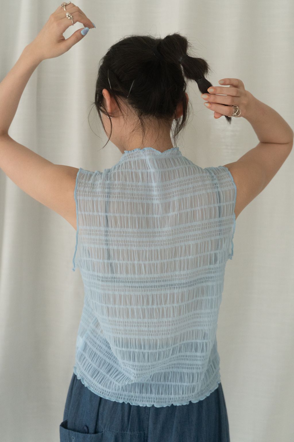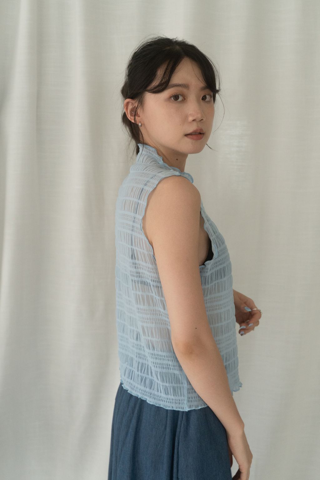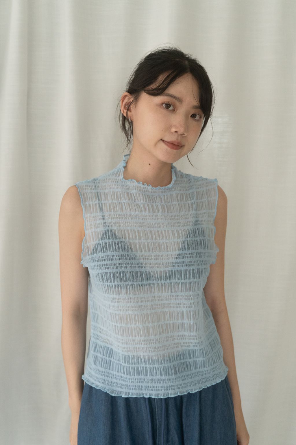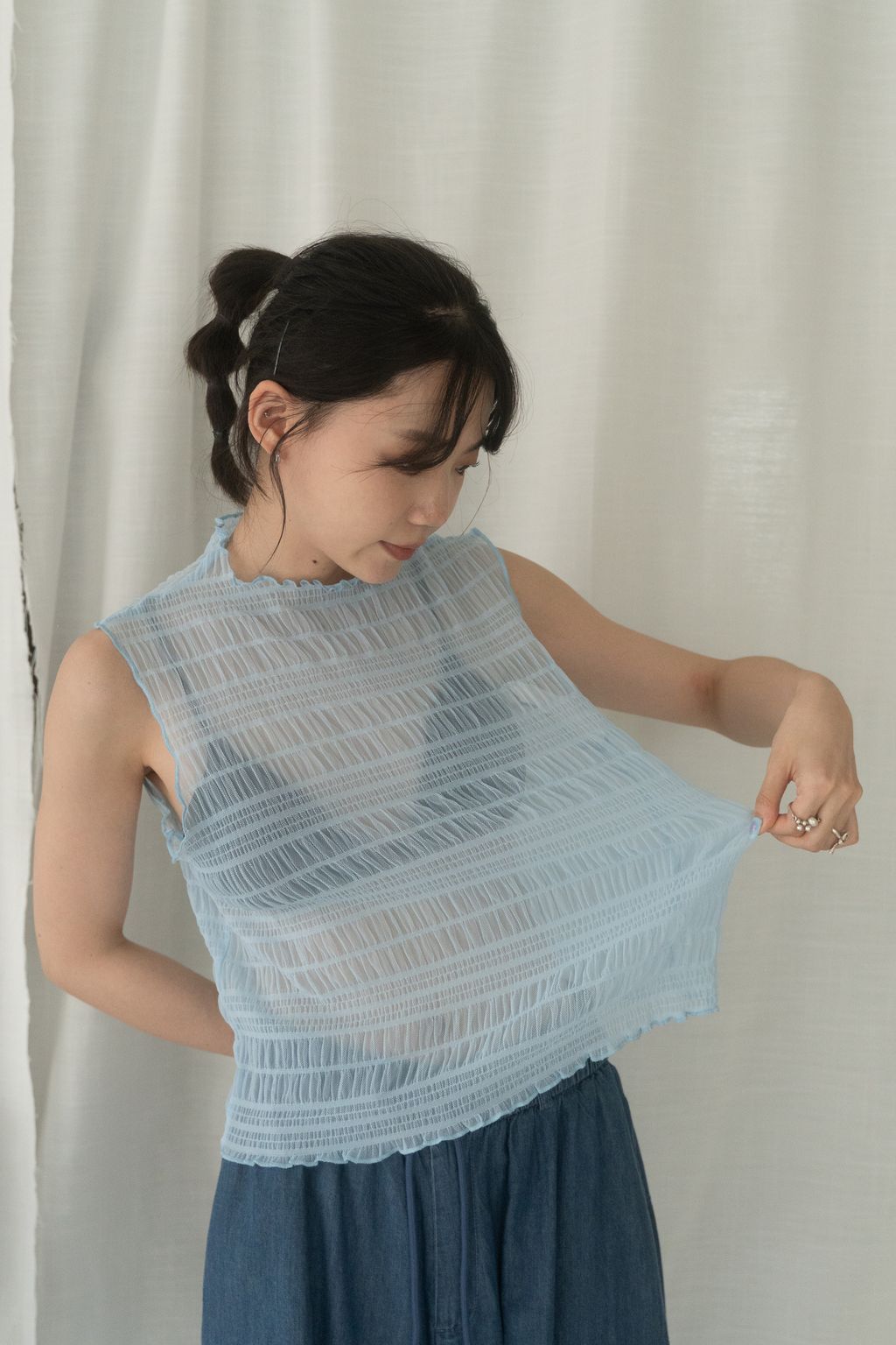 立體氣泡捲邊透膚背心 水藍/淡綠/深藍
