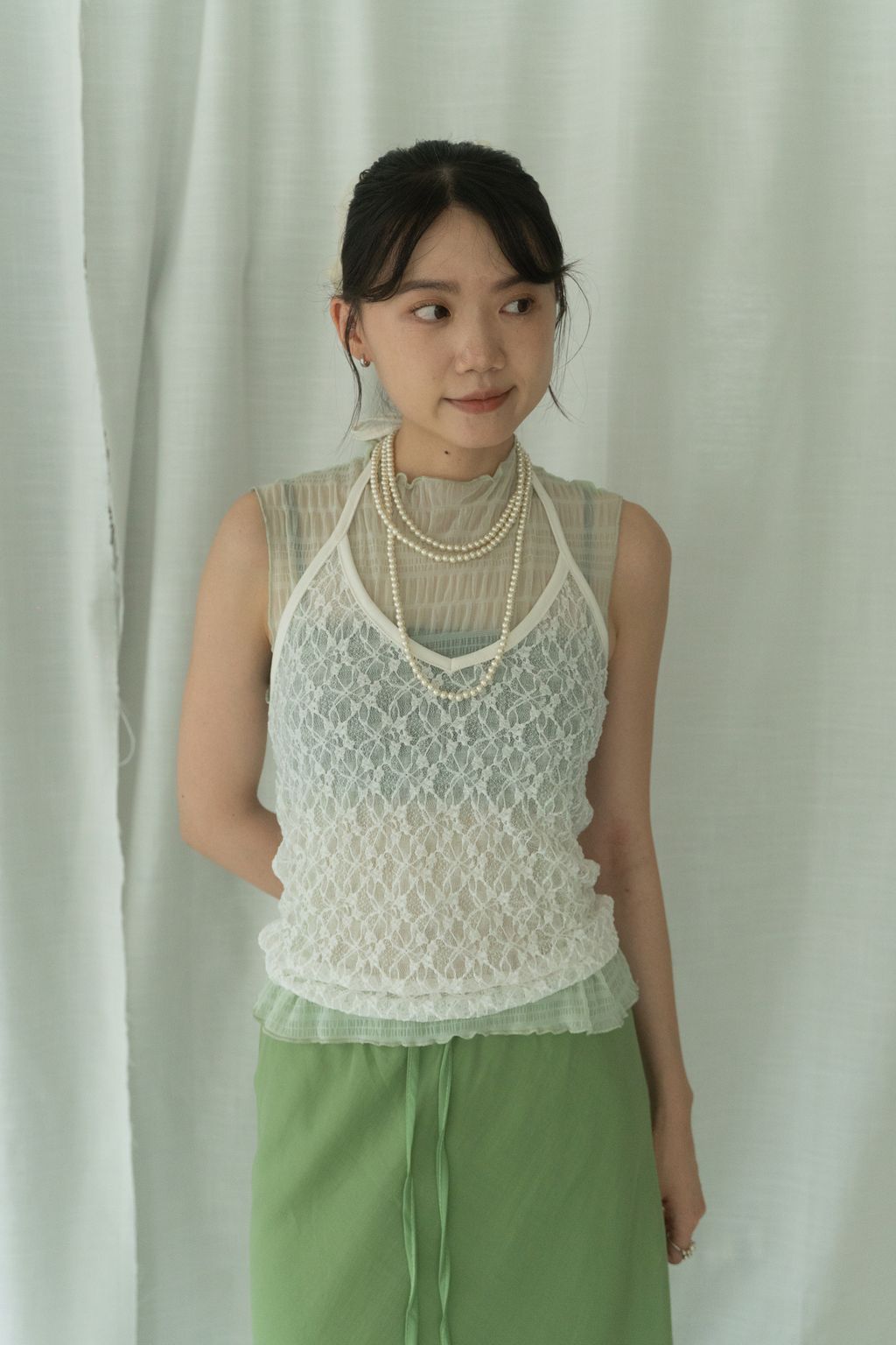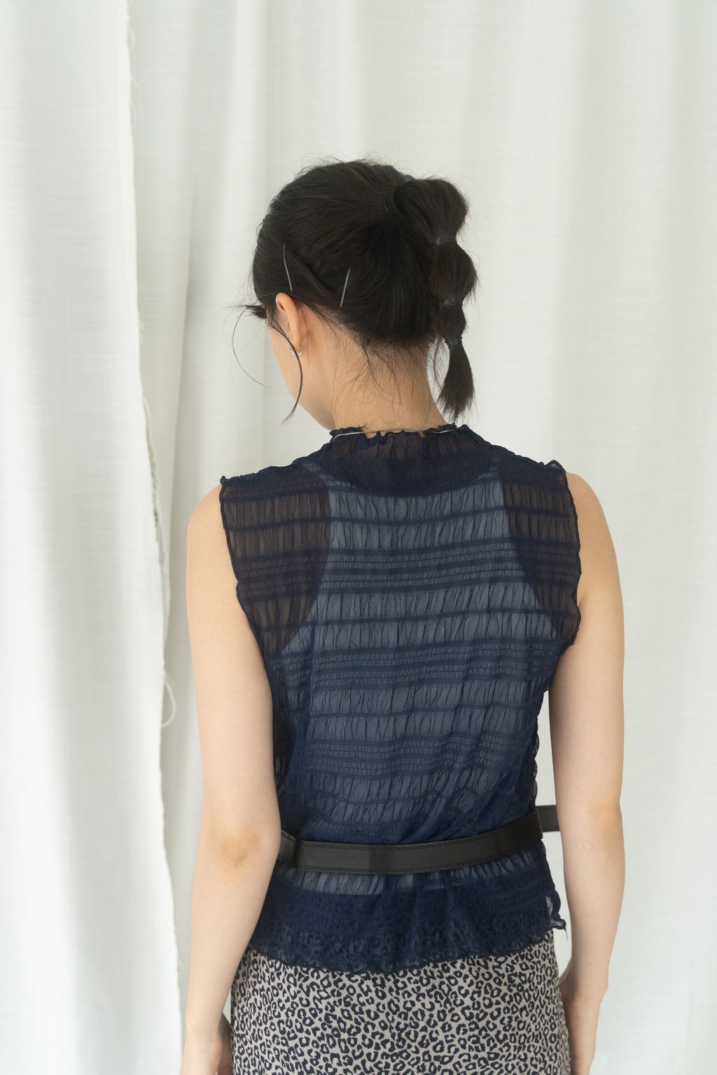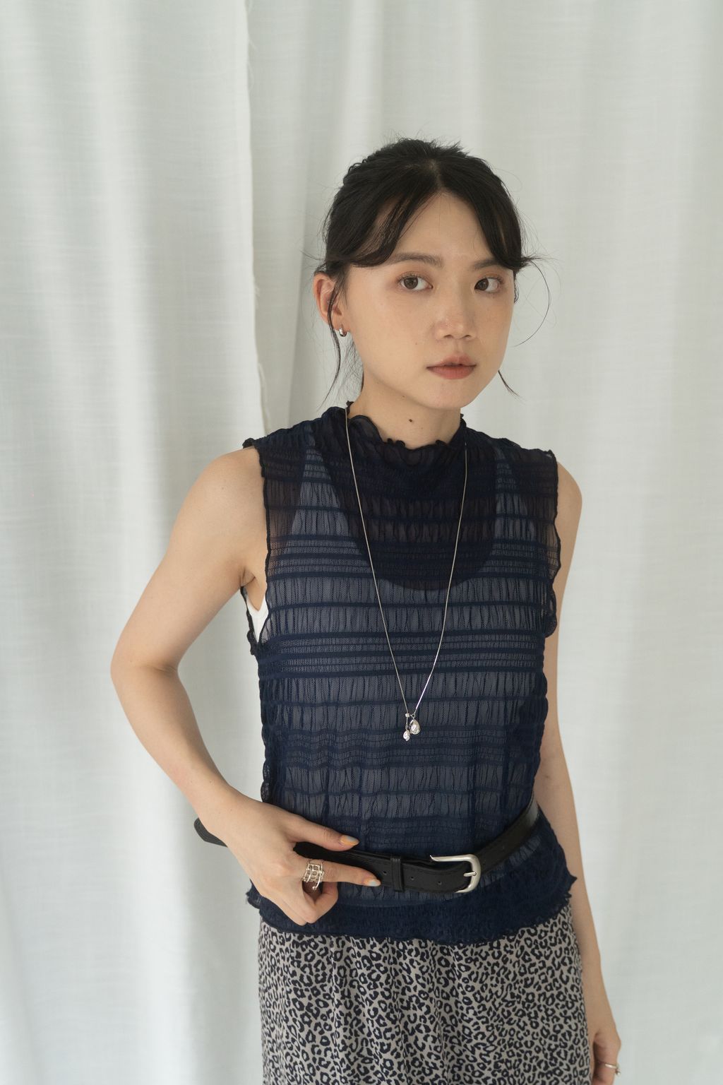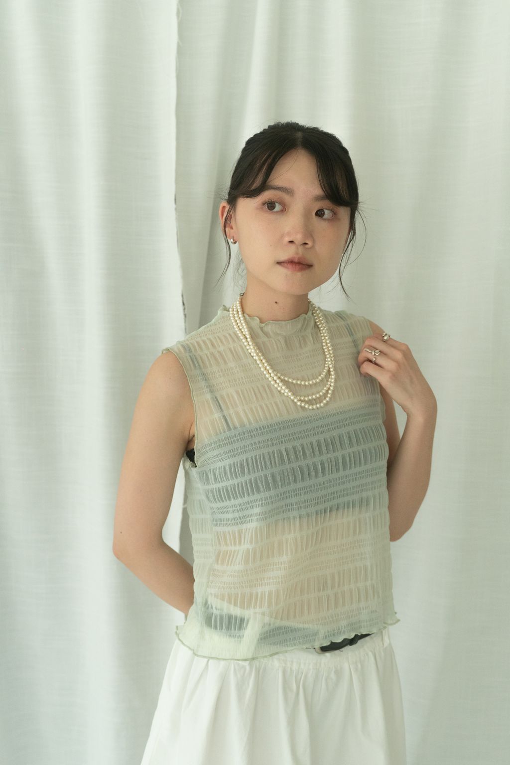 立體氣泡捲邊透膚背心 水藍/淡綠/深藍