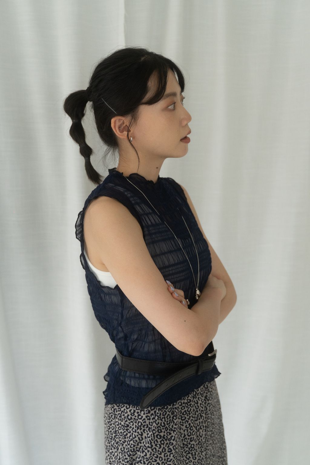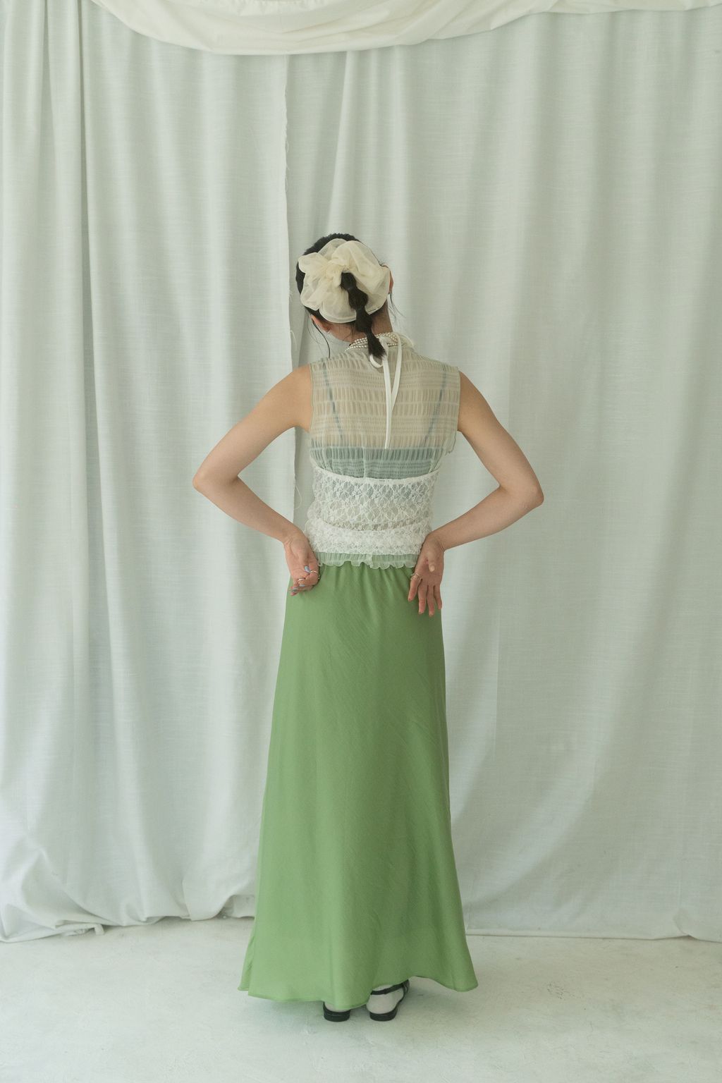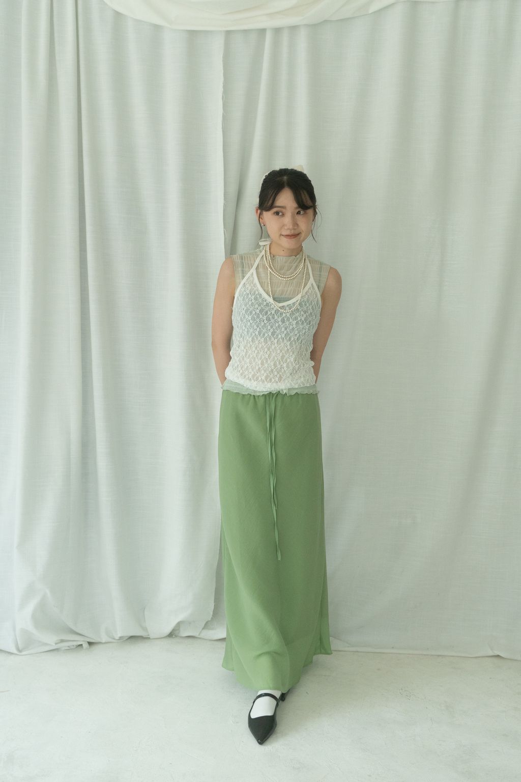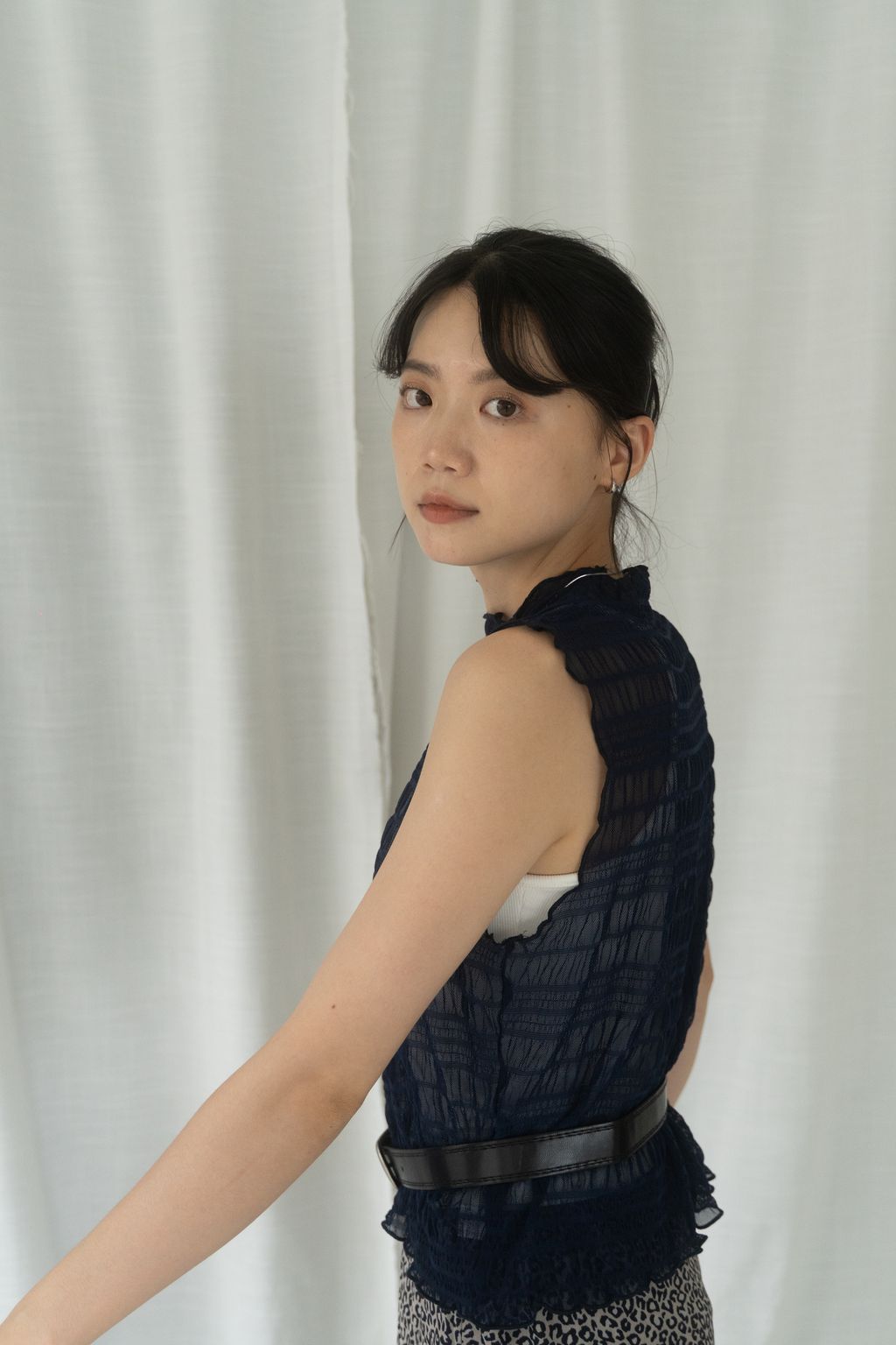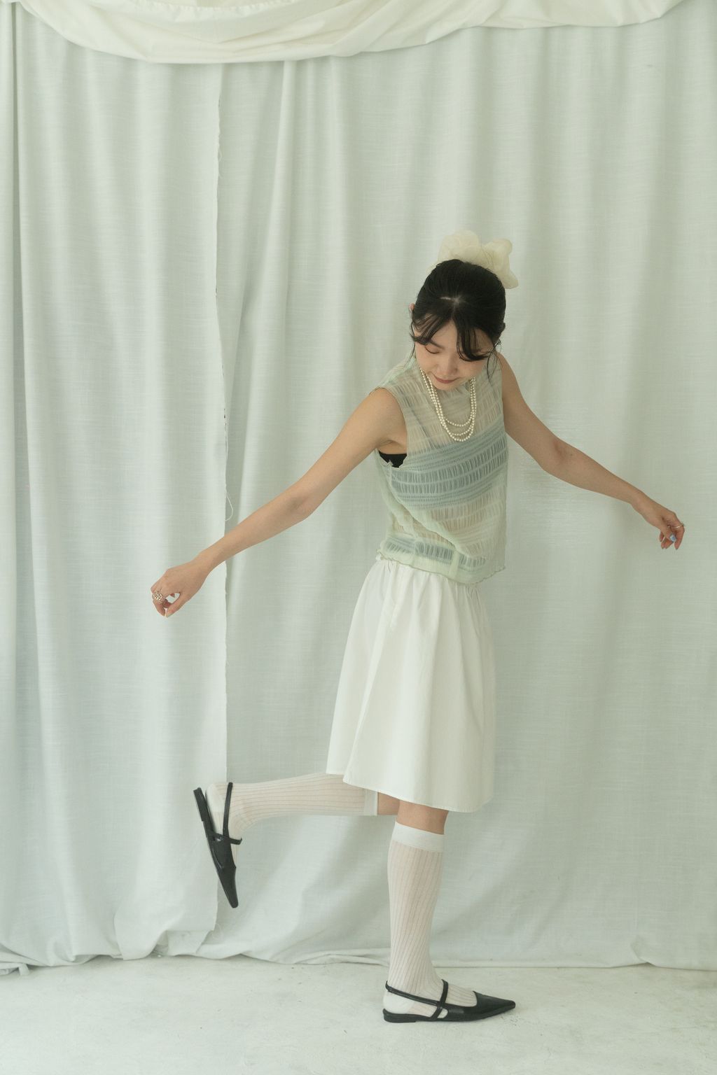 立體氣泡捲邊透膚背心 水藍/淡綠/深藍