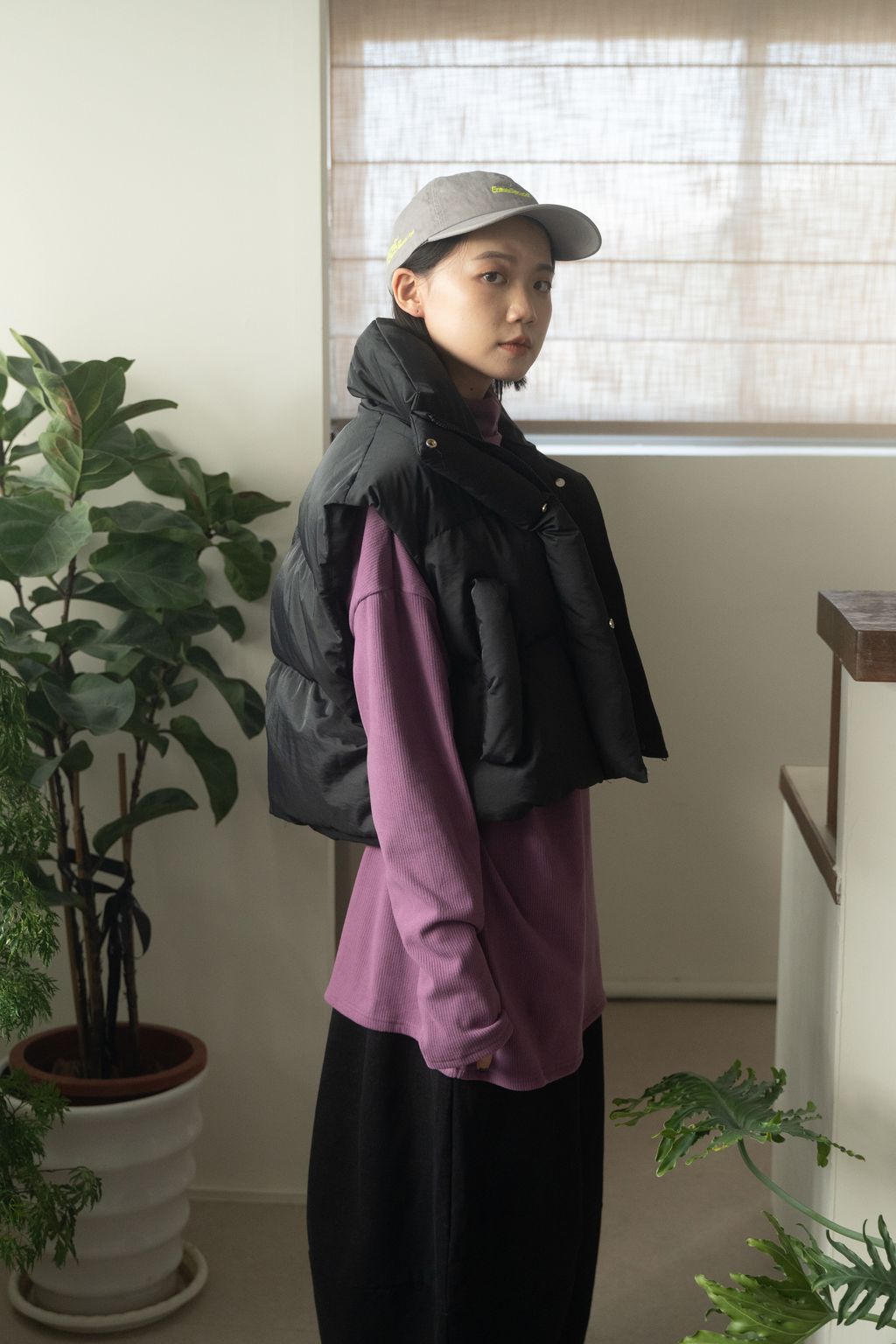 安全氣囊澎澎短版背心黑/杏/卡其