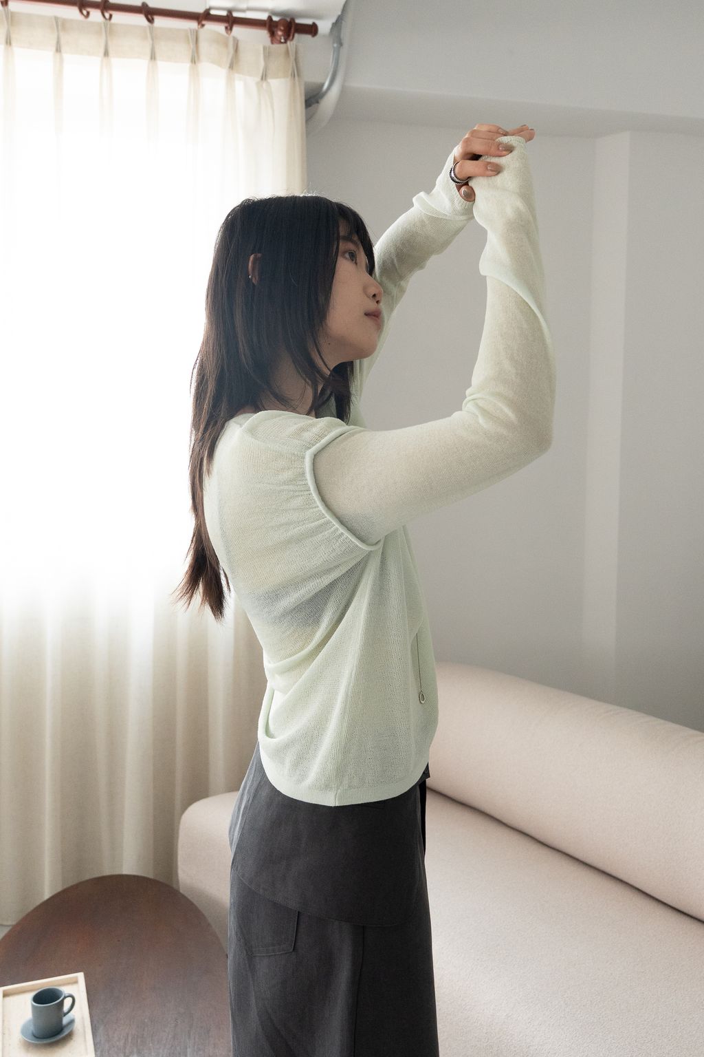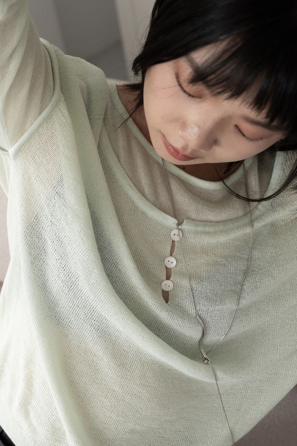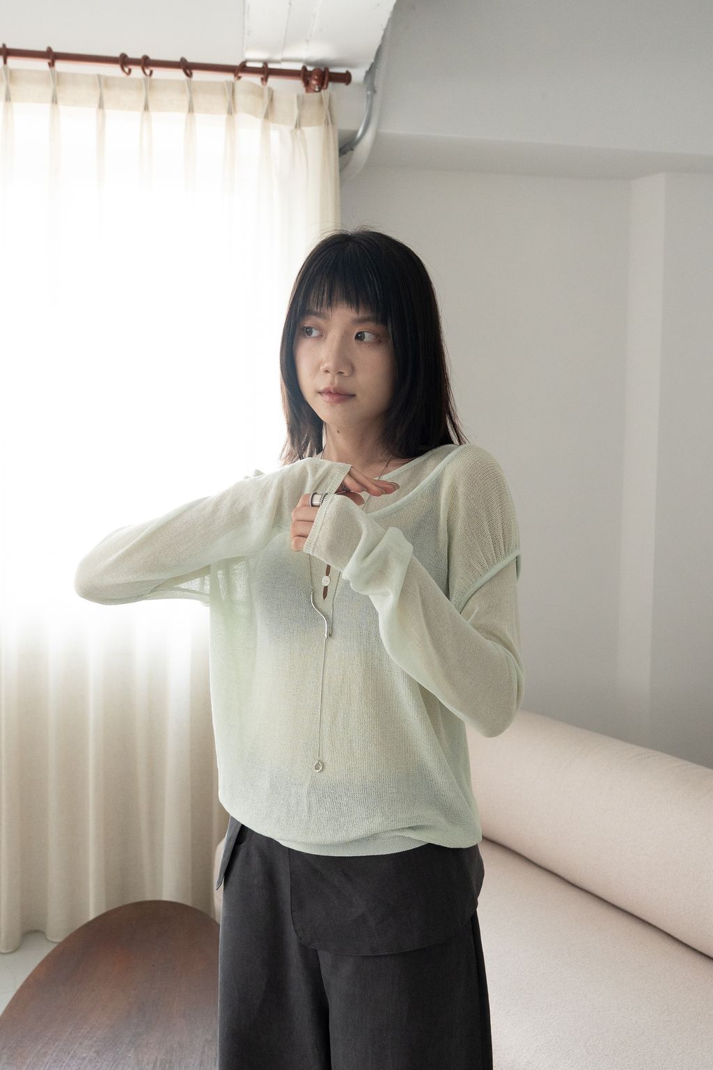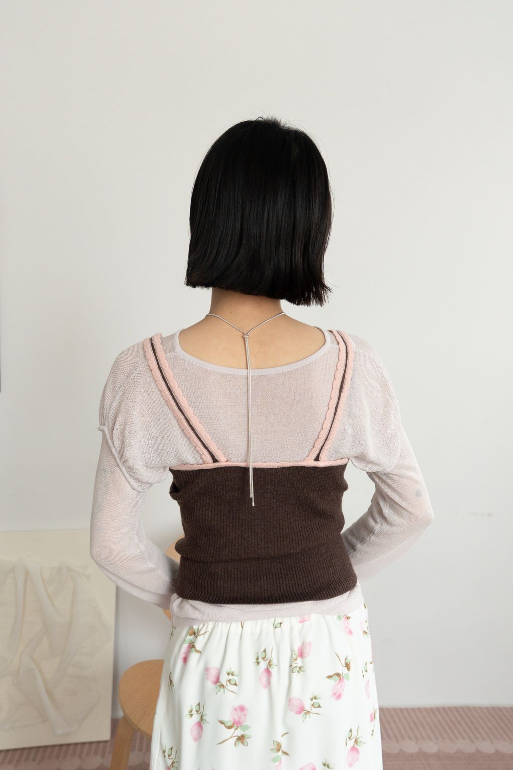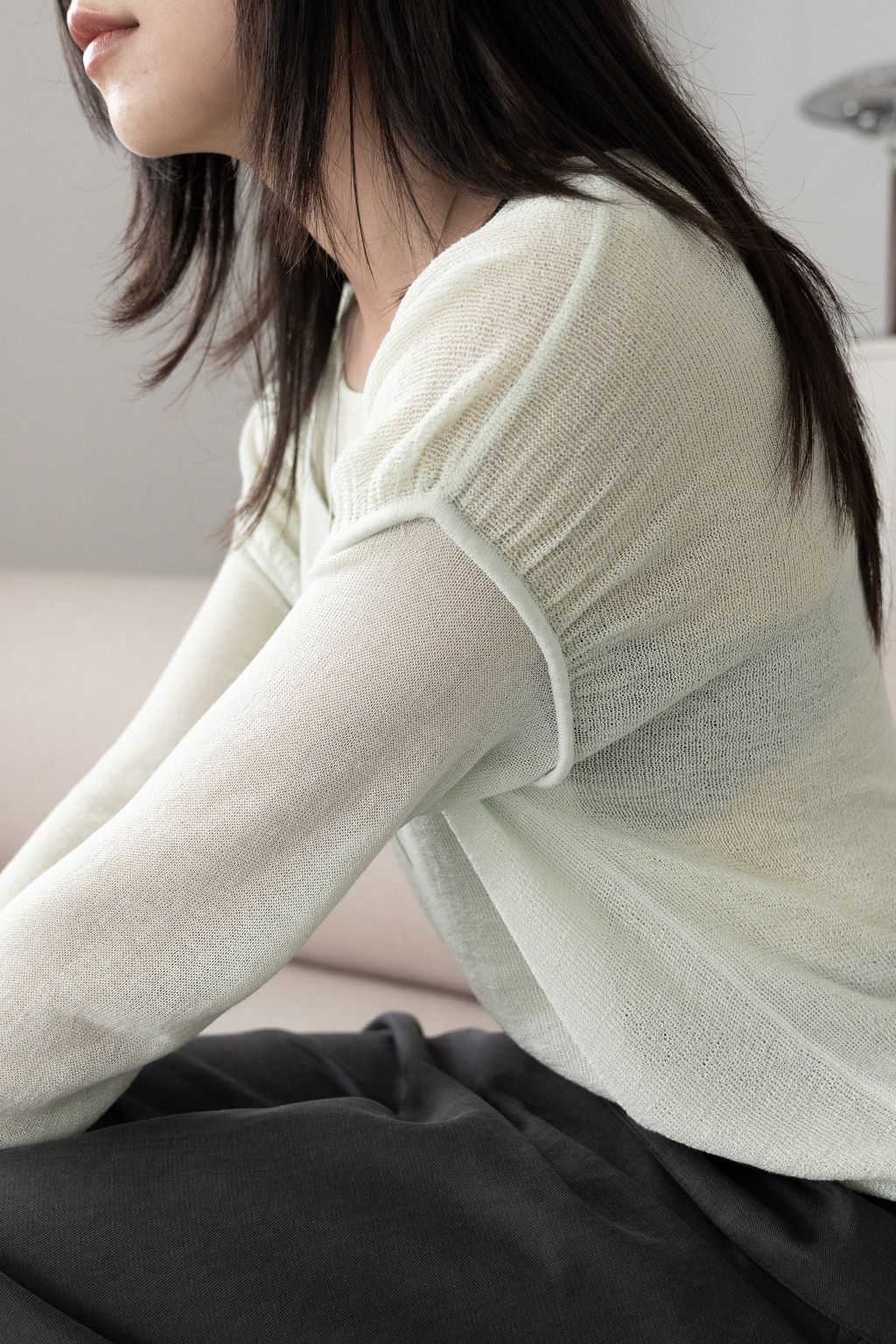 文藝假兩件薄針織長袖 綠/紫